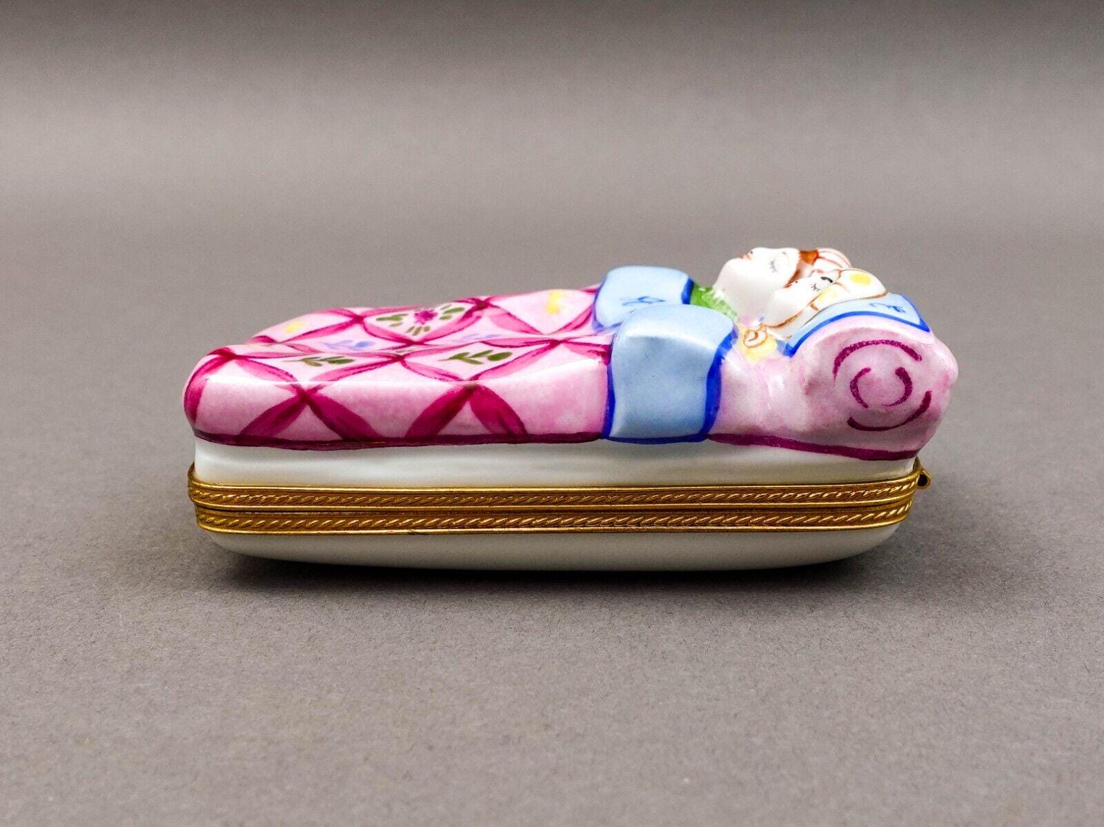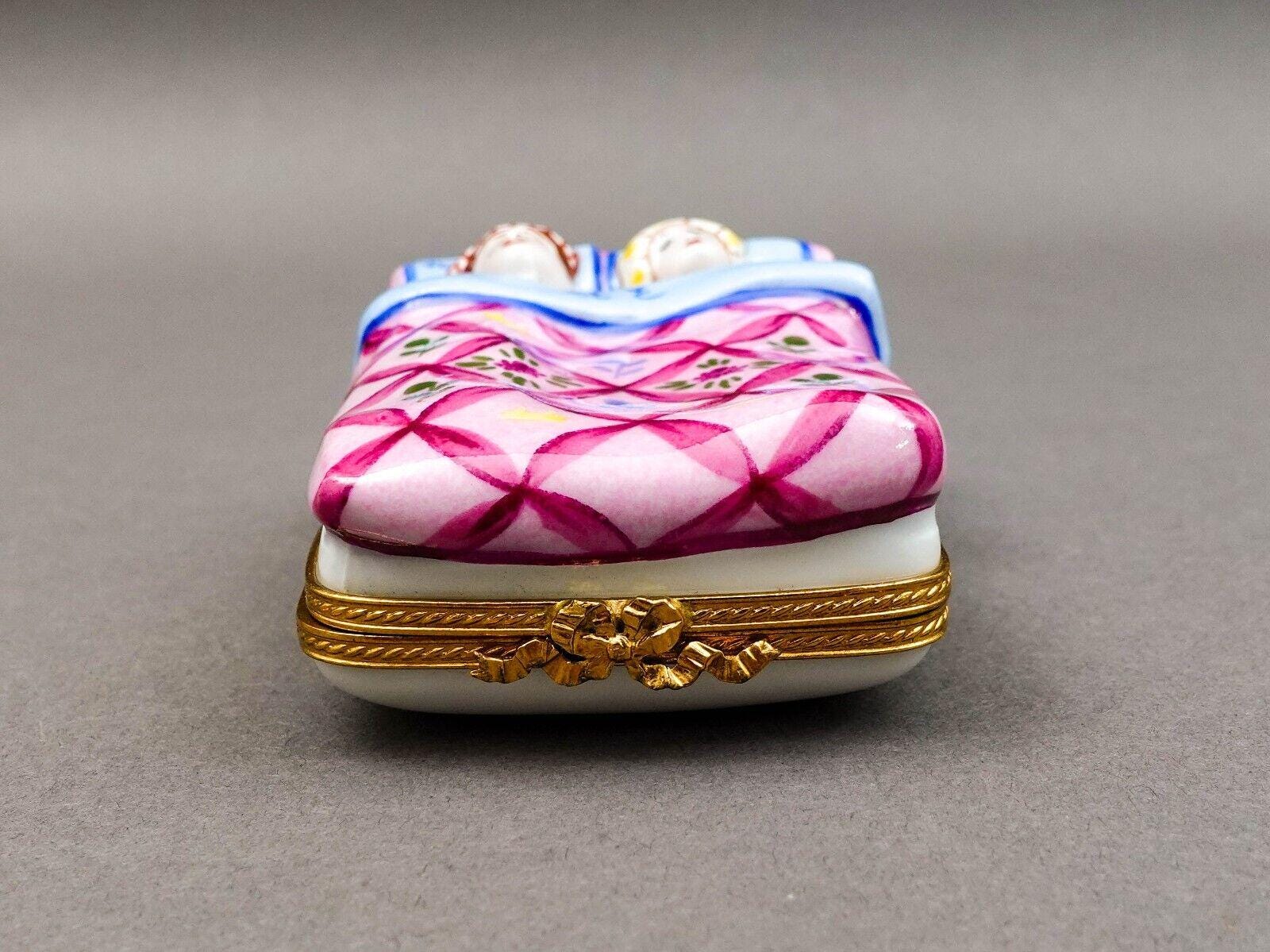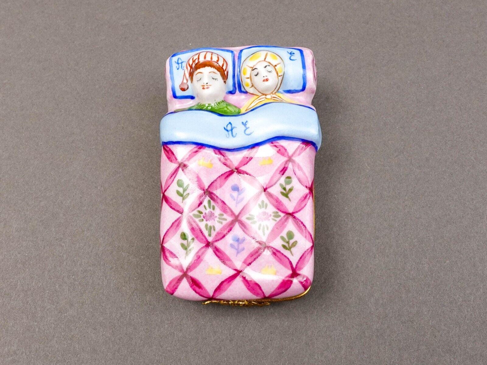 Limoges France Vintage Peint Main Sleeping Couple In Bed Porcelain Trinket Box