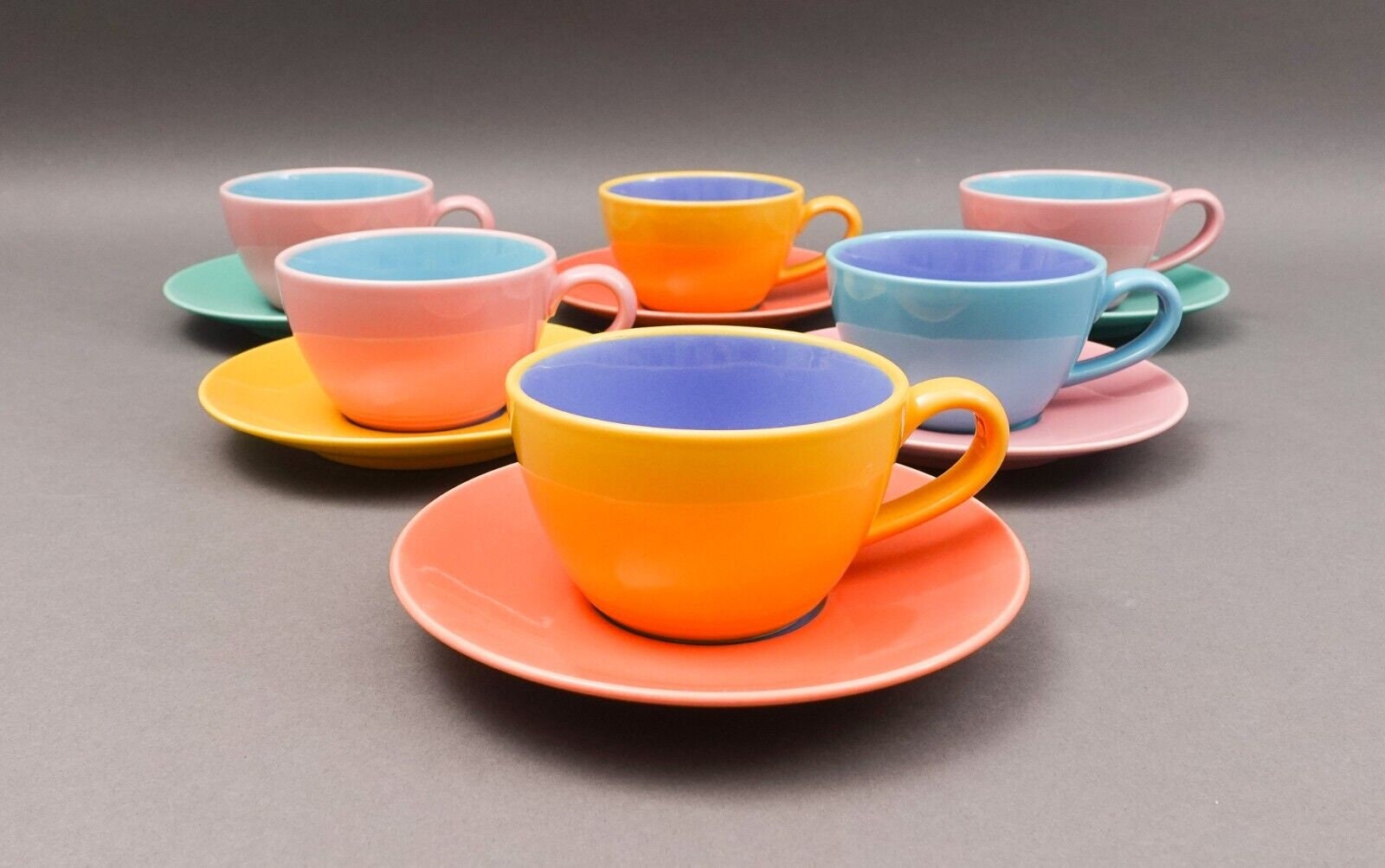 Lindt Stymeist Japan Colorways Cafe Au Lait Coffee Tea Cups & Saucers Set Of 6.