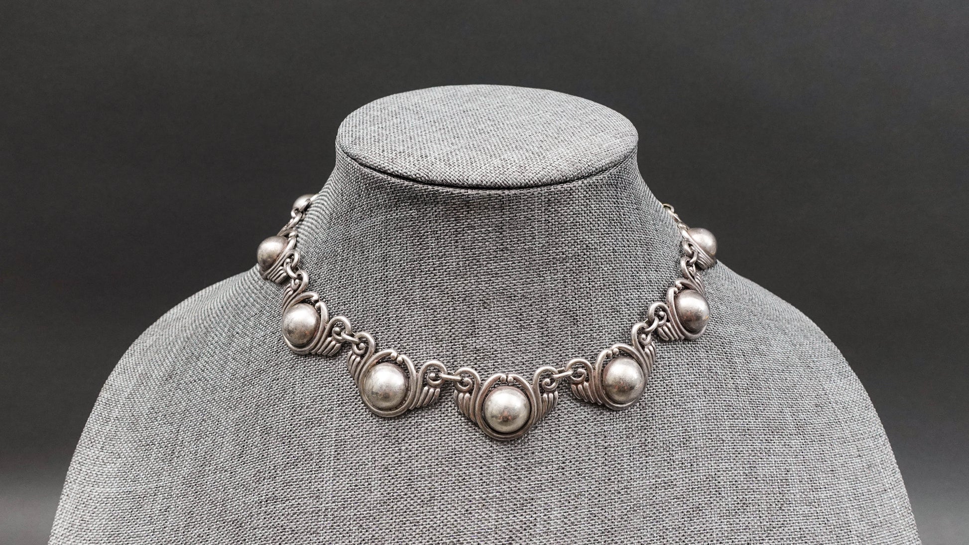 Los Castillos Taxco Mexico Vintage 925 Sterling Silver Choker Necklace 222.