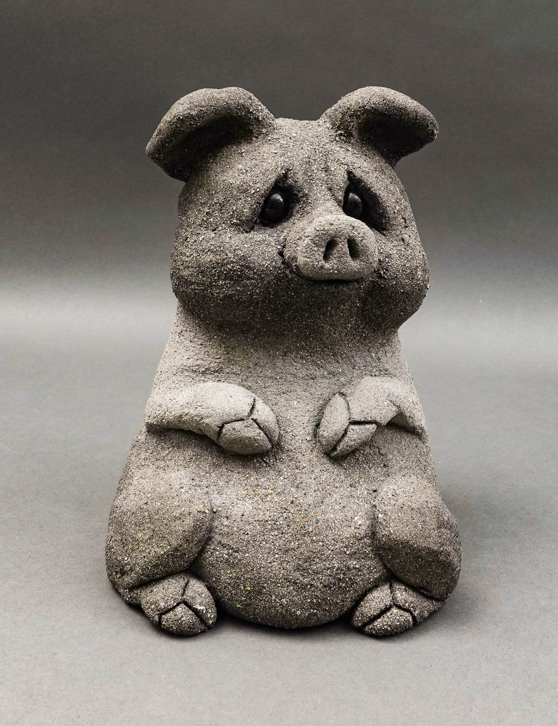 Lou Rankin (1929-2016) Signed Original 1998 Whimsical Concrete Pig Sculpture.