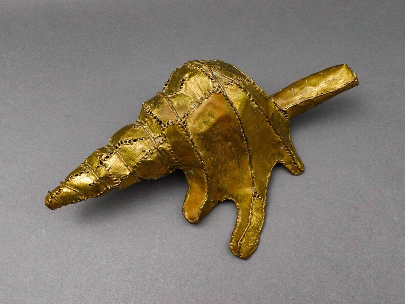 Luciano Bustamante Mexico Signed Brass Conch Nautical Sea Shell Sculpture 16.5"