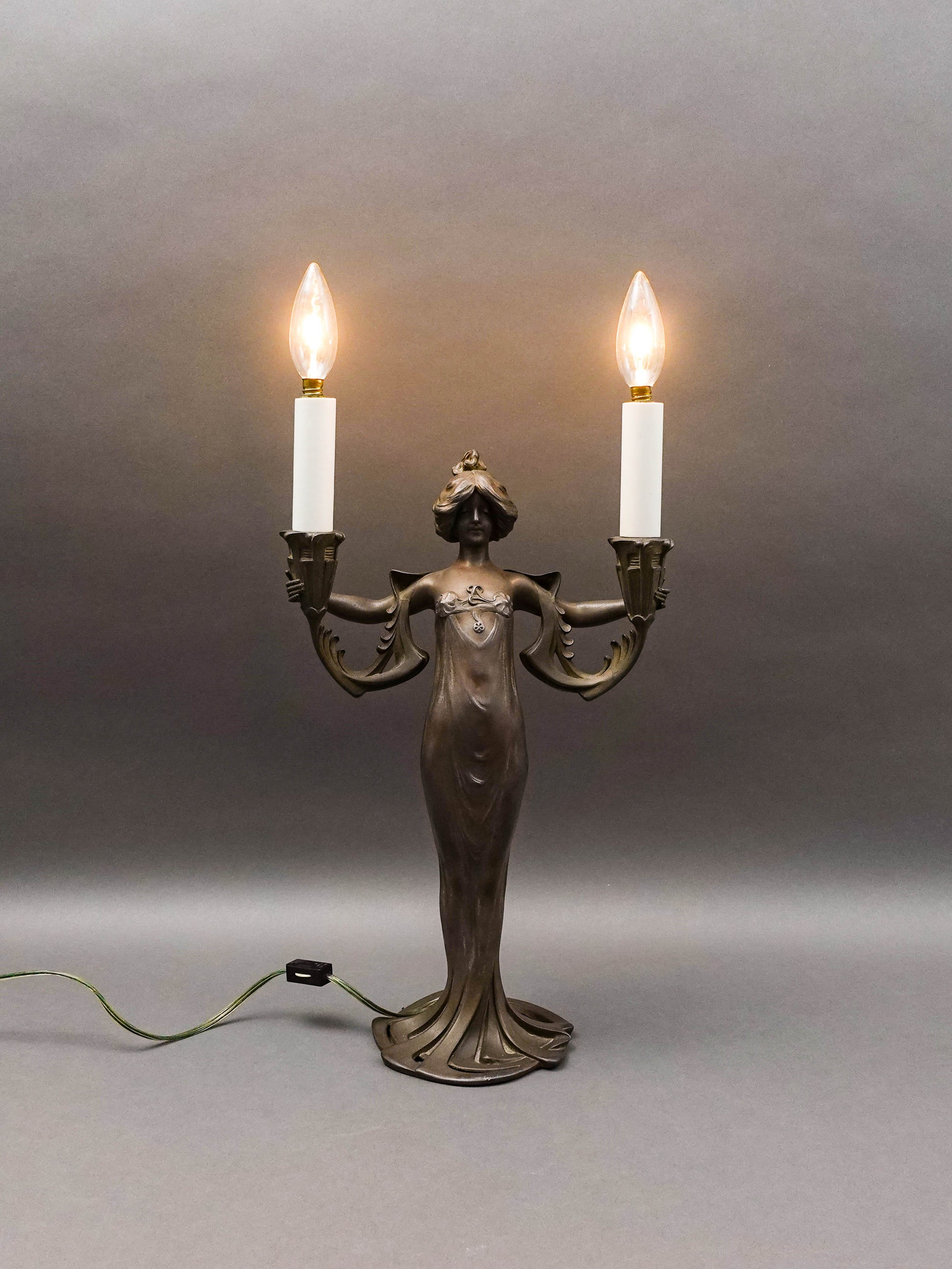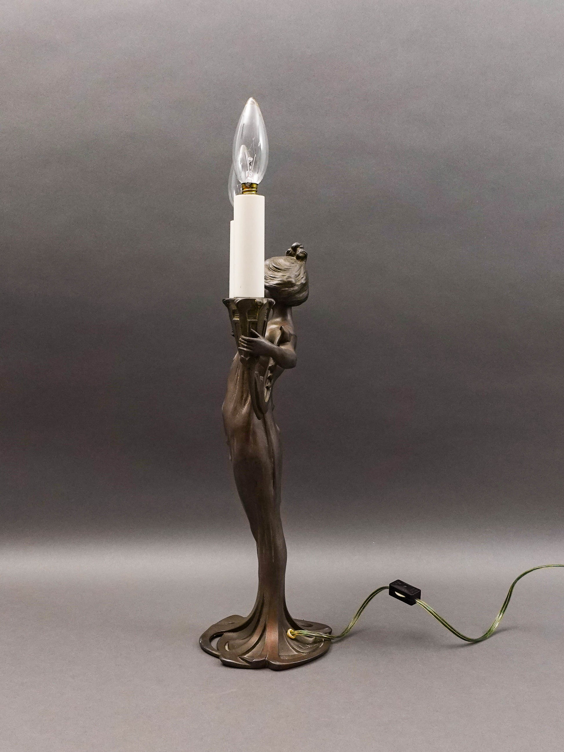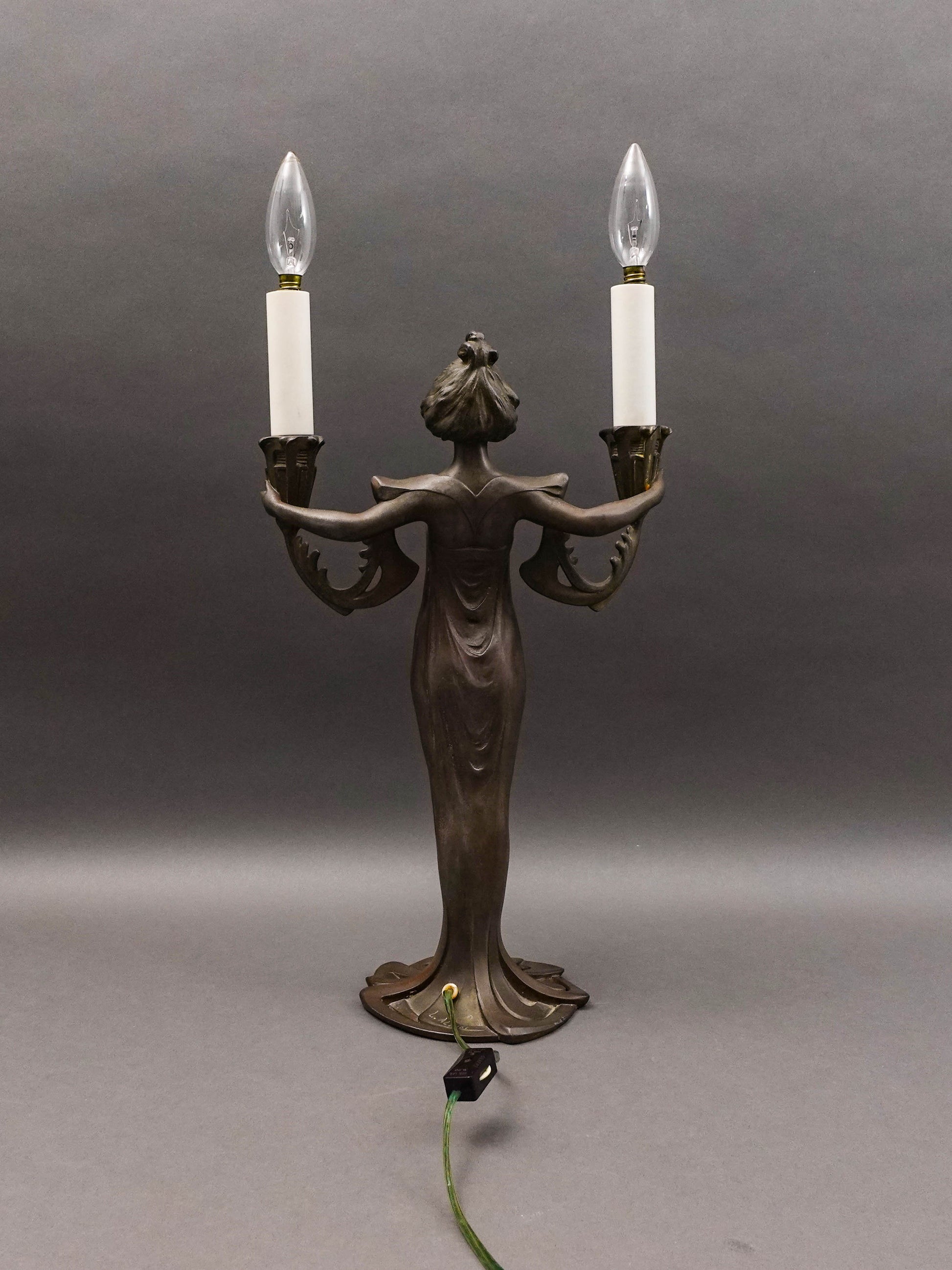 Lucien Alliot (French 1877-1967) Art Nouveau Painted Bronze Spelter Figural Lamp