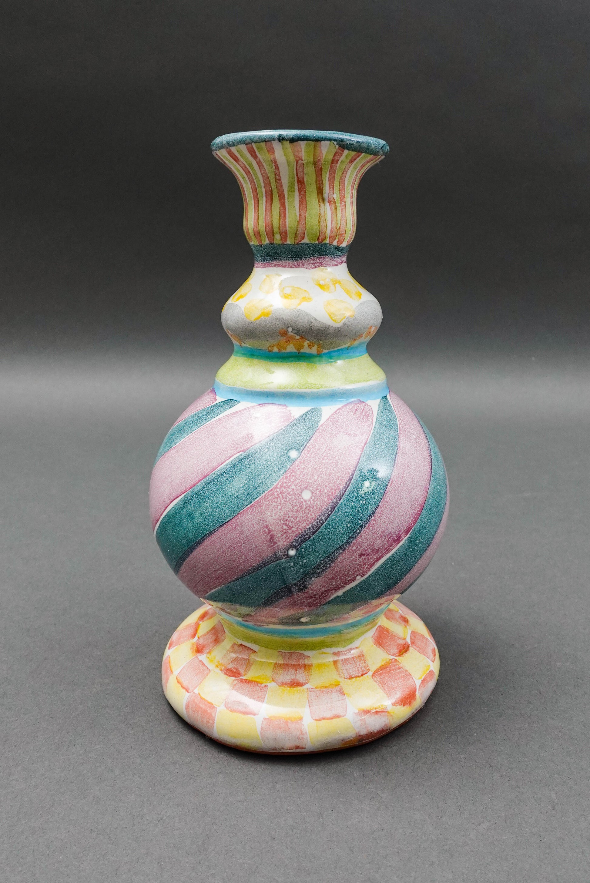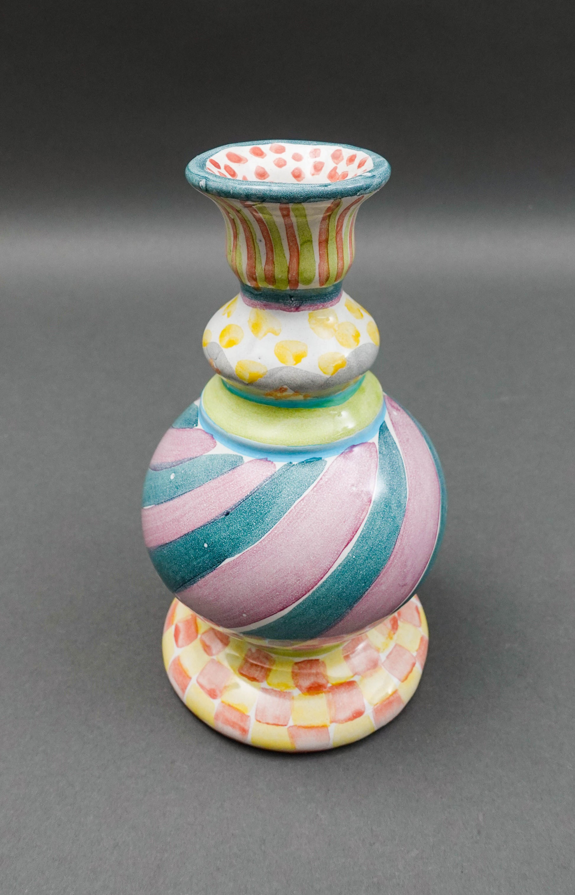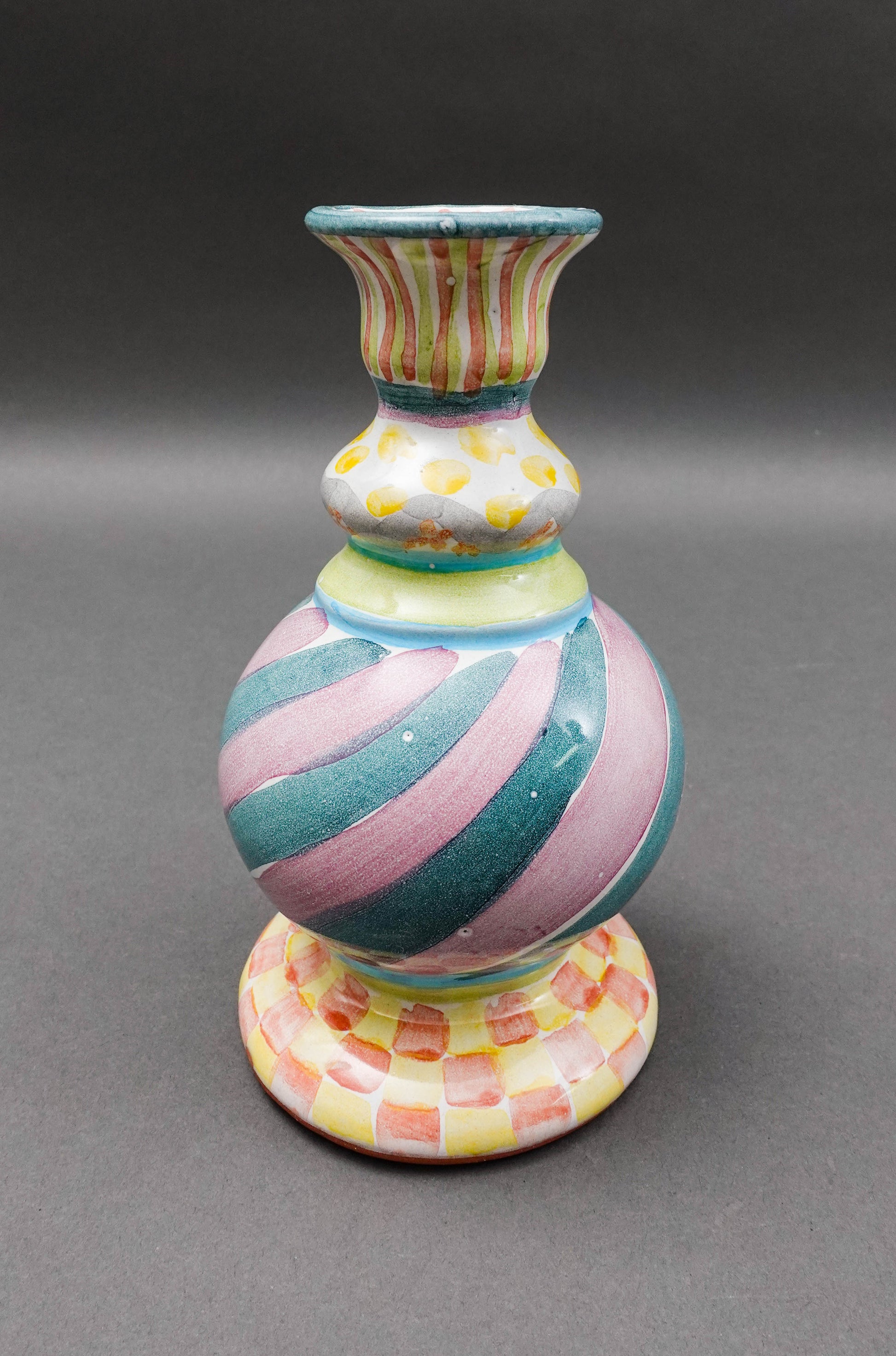 MacKenzie Childs Cayuga Hand Painted Bud Vase Candle Stick Candle Holder.