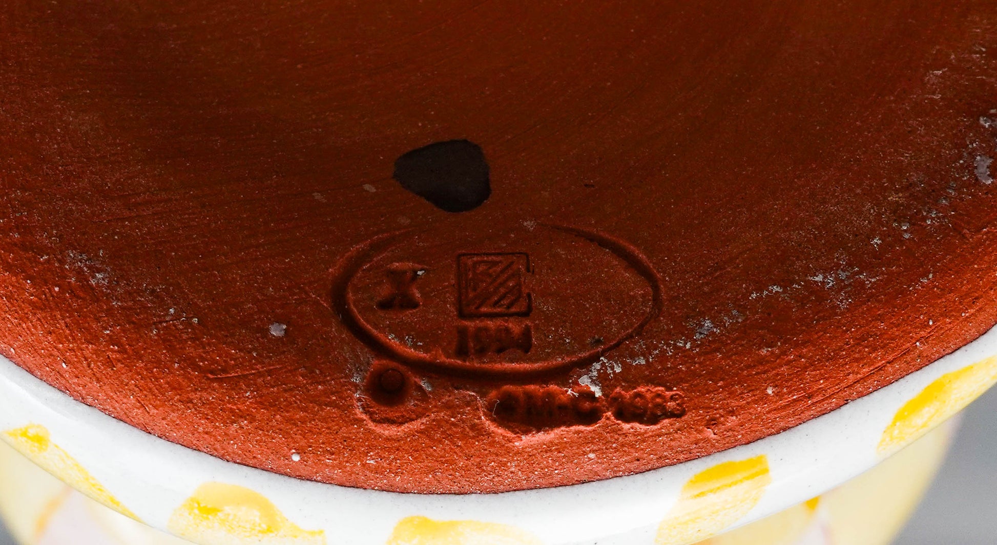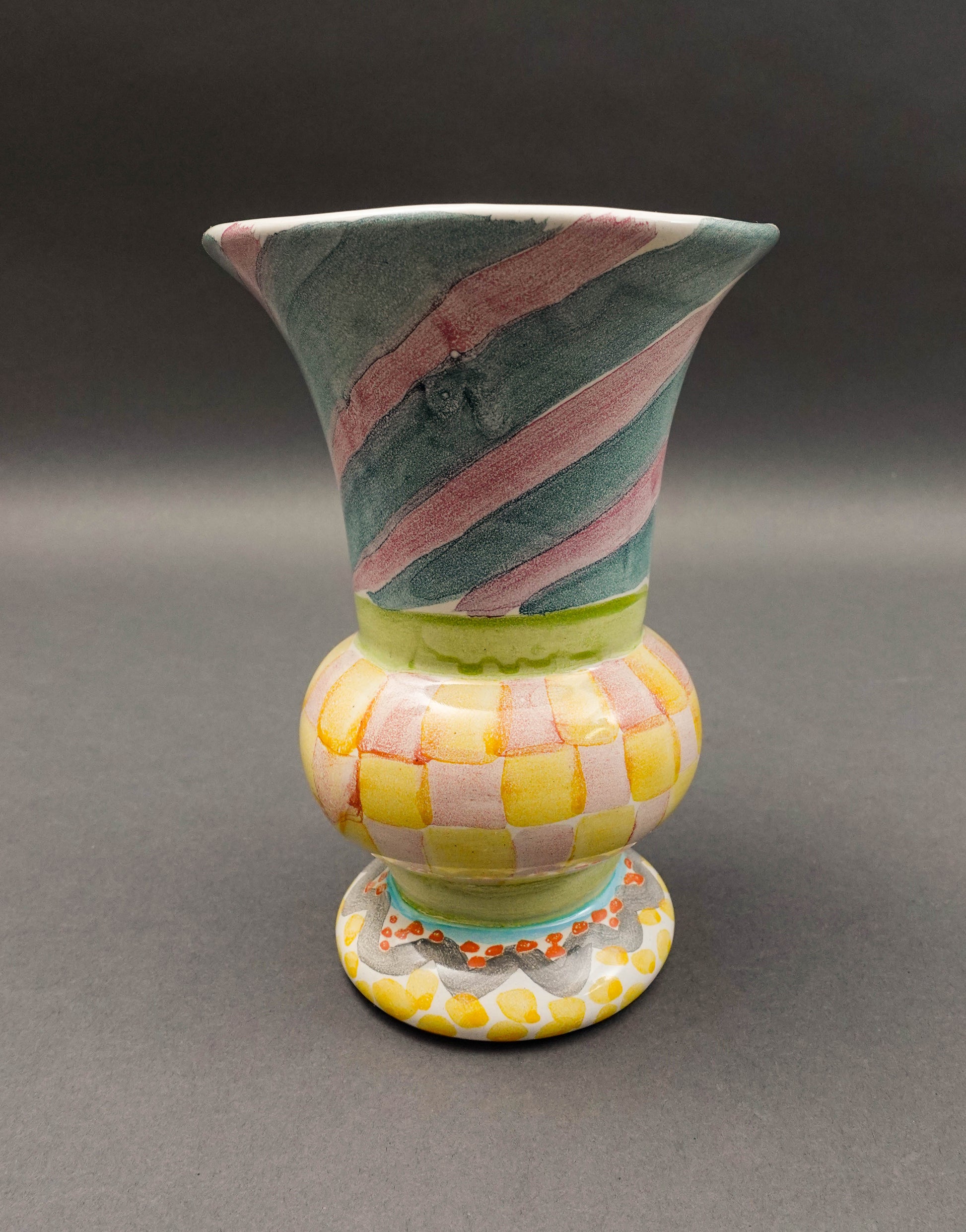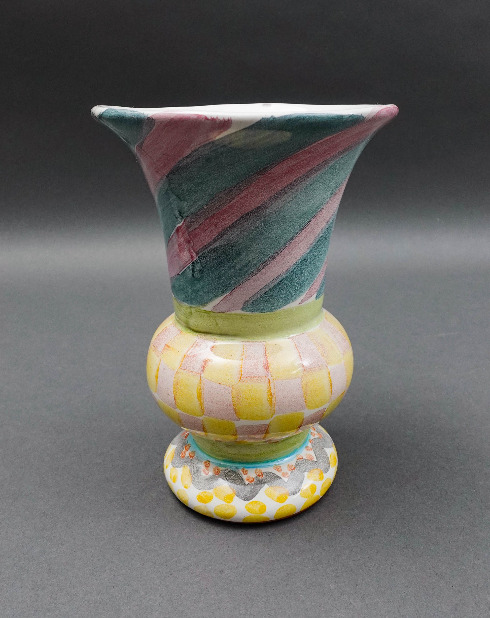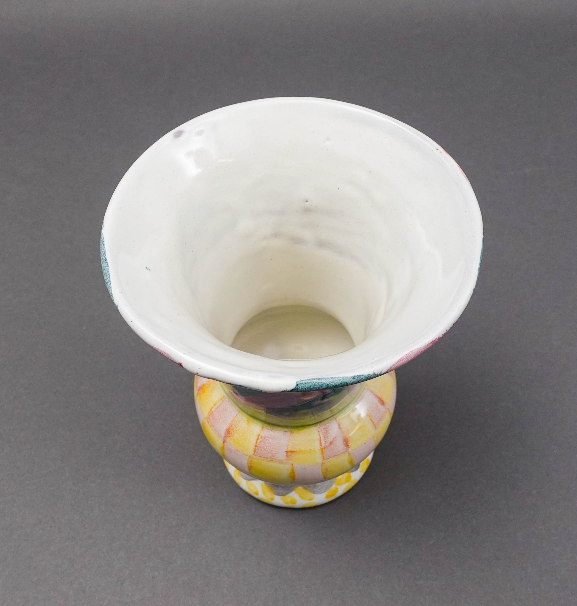 MacKenzie Childs Vintage Cayuga Hand Painted Art Pottery Footed Trumpet Vase.
