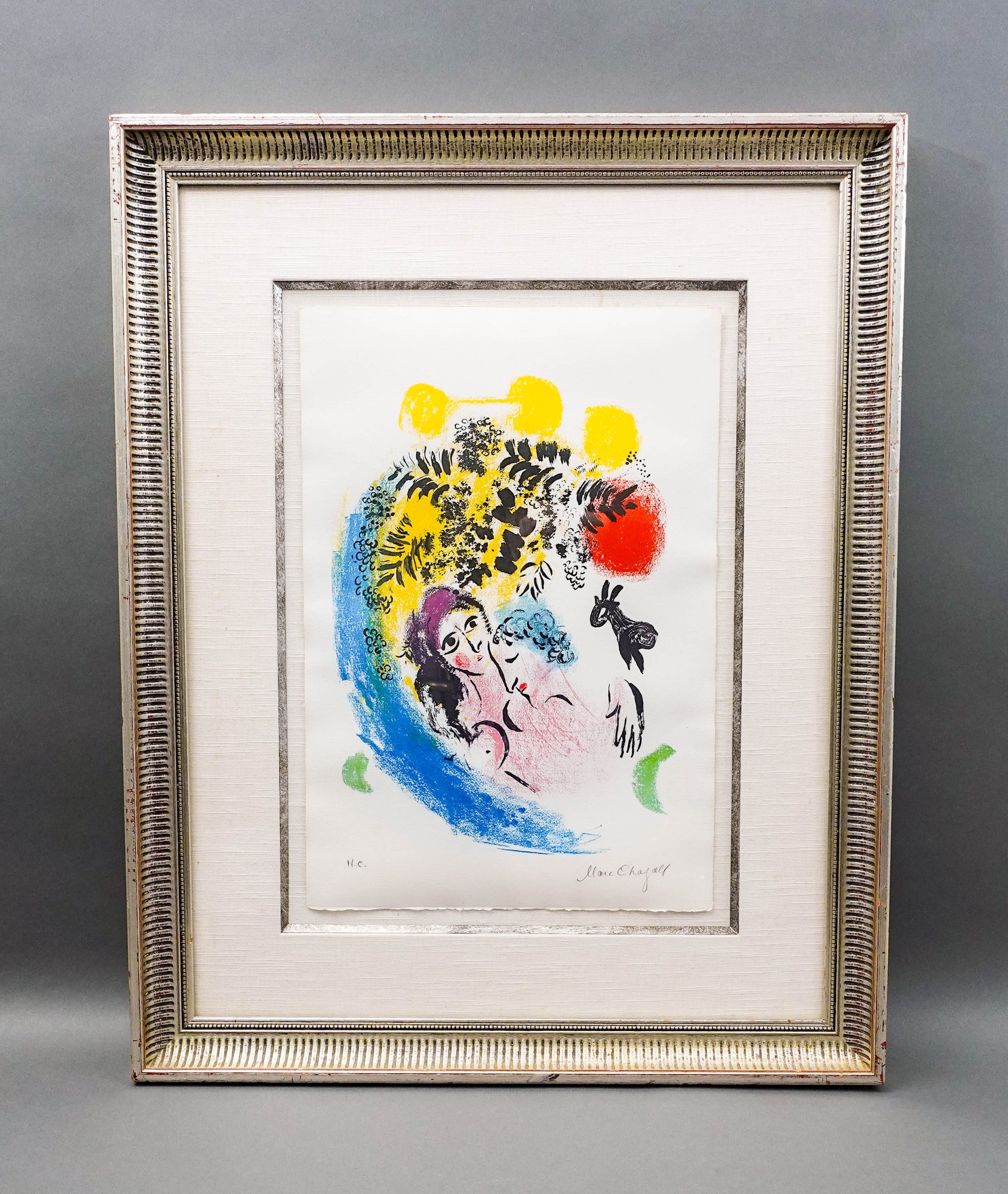 Marc Chagall (1887-1985) Signed Les Amoureux Au Soleil Rouge Lithograph H.C.