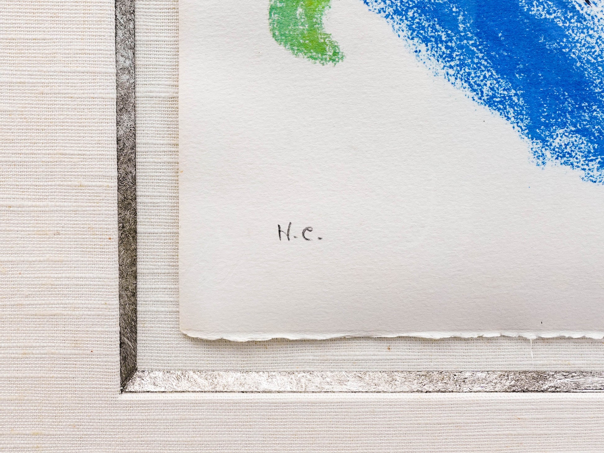 Marc Chagall (Russian, French 1887-1985) Pencil Signed Les Amoureux Au Soleil Rouge (The Lovers In The Red Sun) 1960 Colour Lithograph Rare H.C. Hors Commerce.