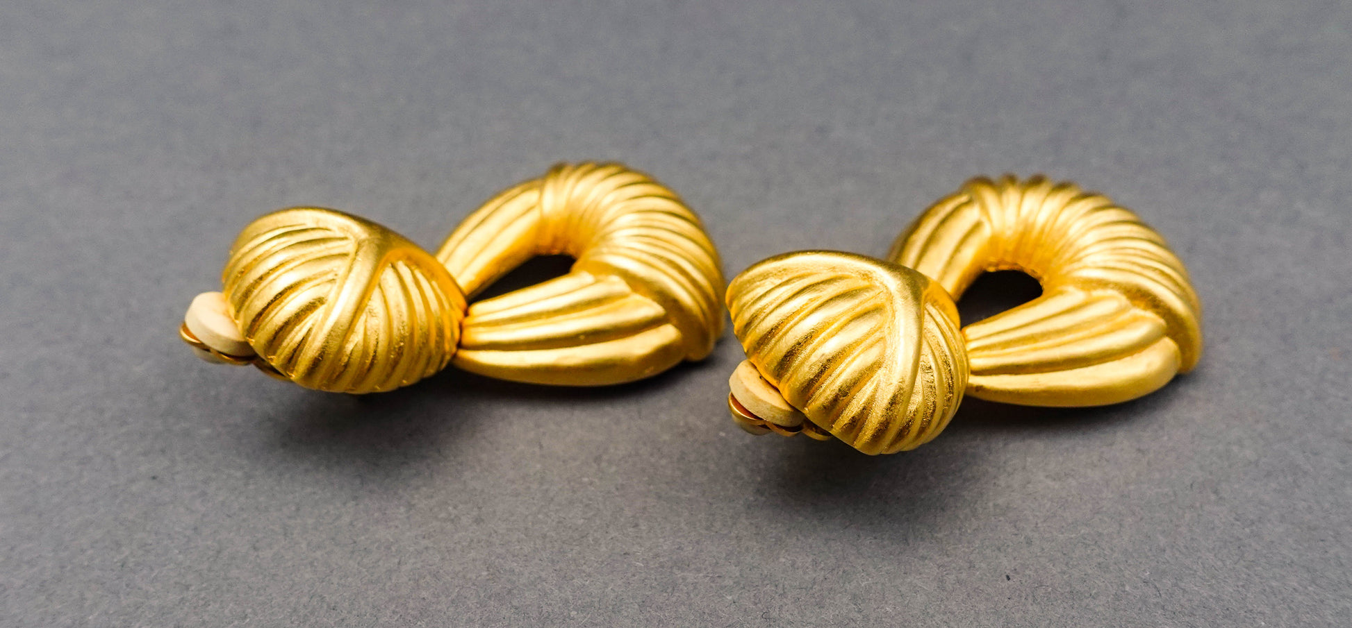 Givenchy Vintage Large Gold Tone Dangle Drop Door Knocker Runway Clip Earrings