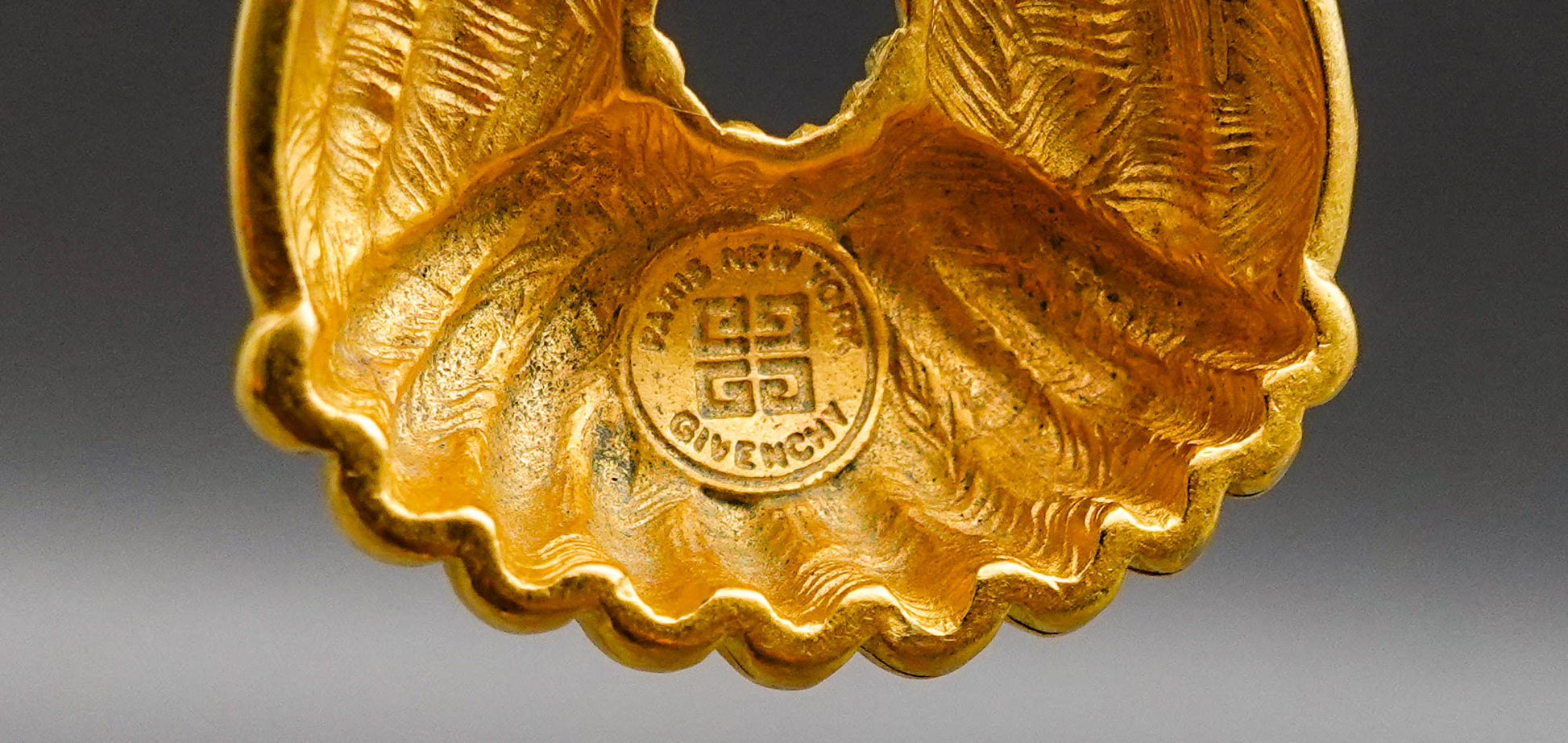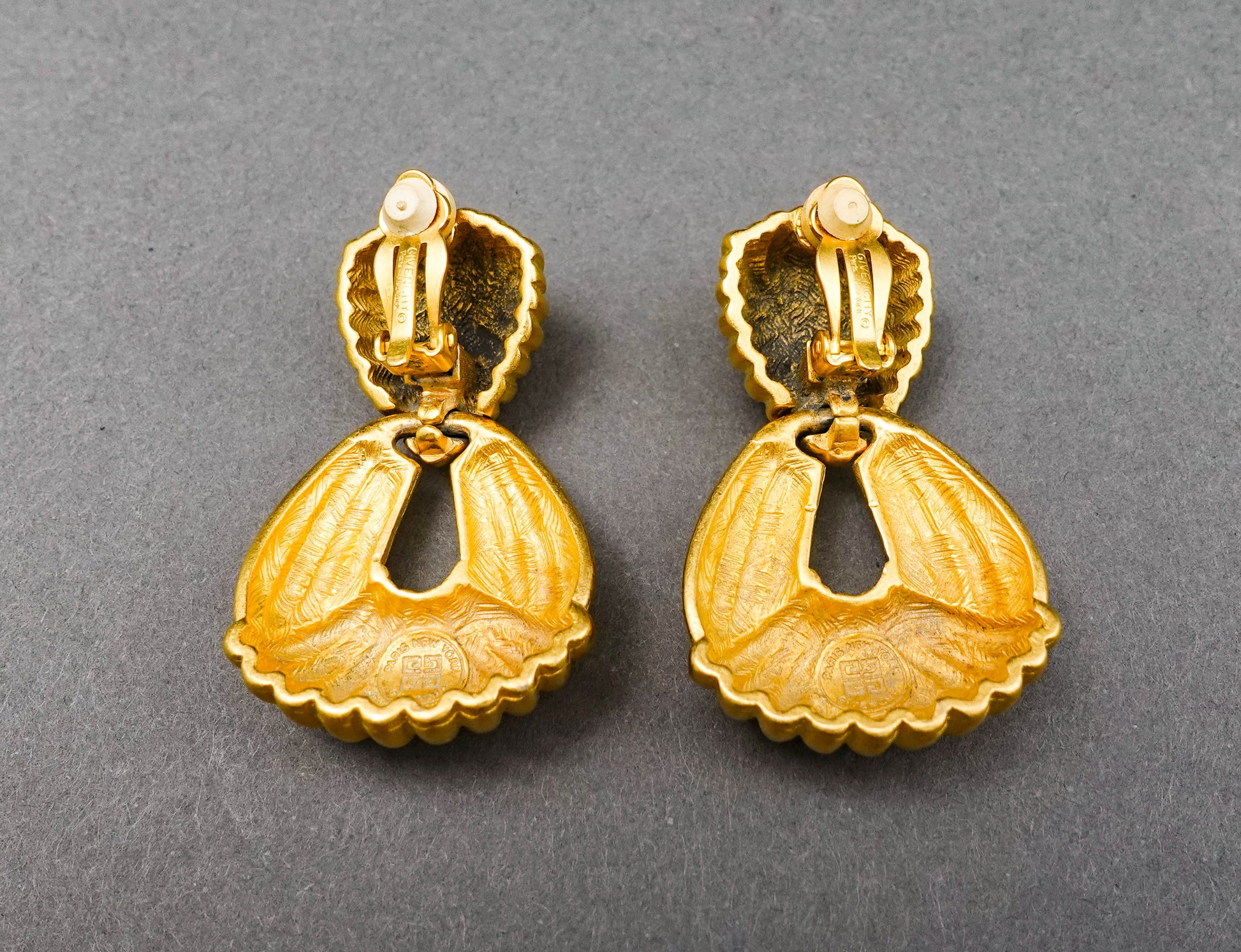 Givenchy Vintage Large Gold Tone Dangle Drop Door Knocker Runway Couture Clip Earrings.