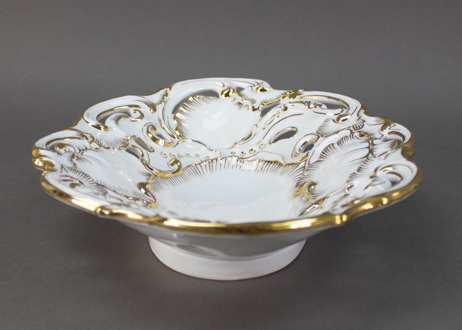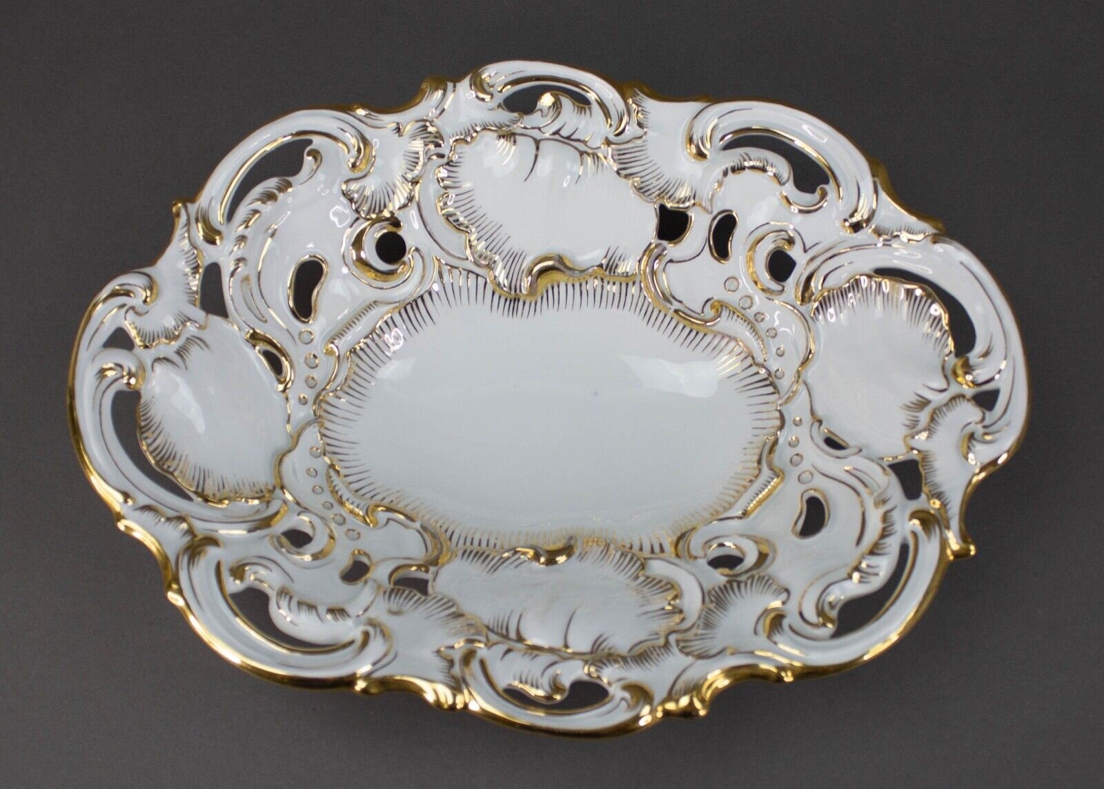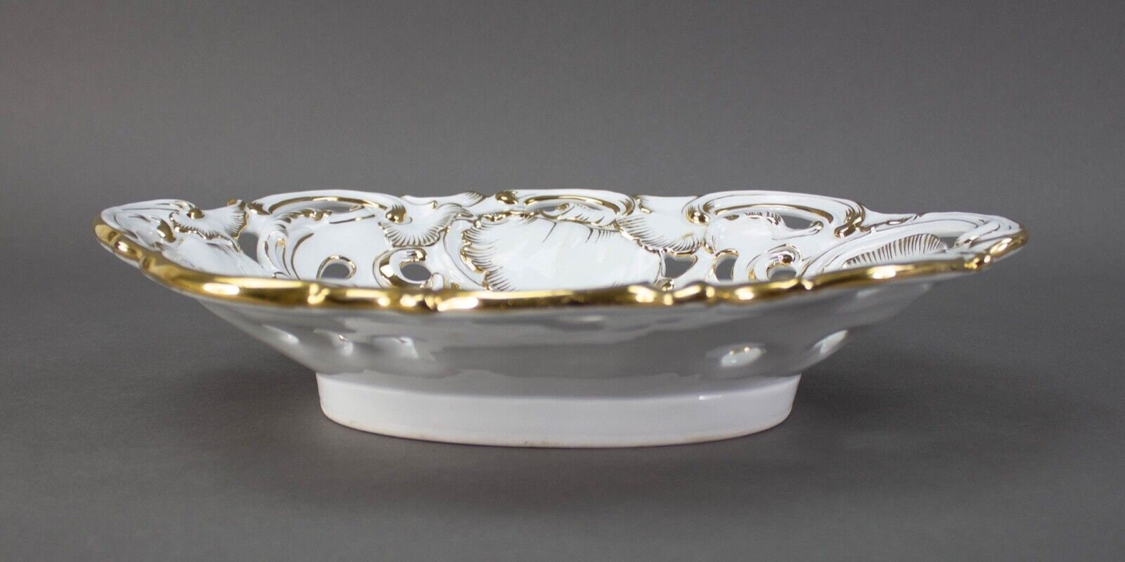 Meissen Rococo Shell High Relief Gold Oval Porcelain Center Serving Fruit Bowl