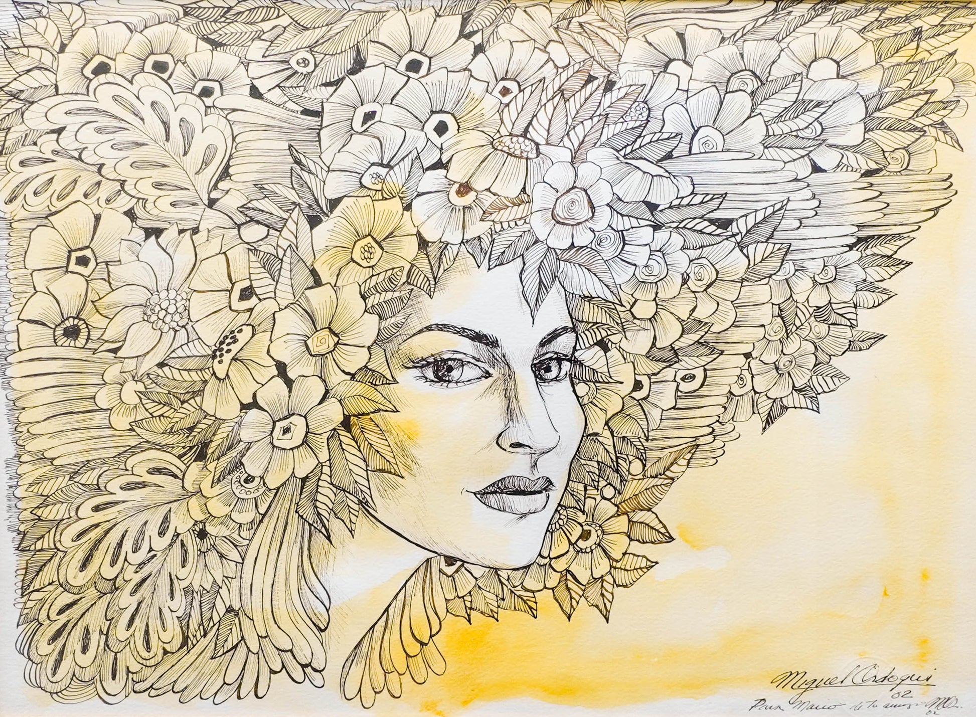 Miguel Ordoqui (Cuban 1939-2023) Signed Ink And Watercolor On Paper 2002.