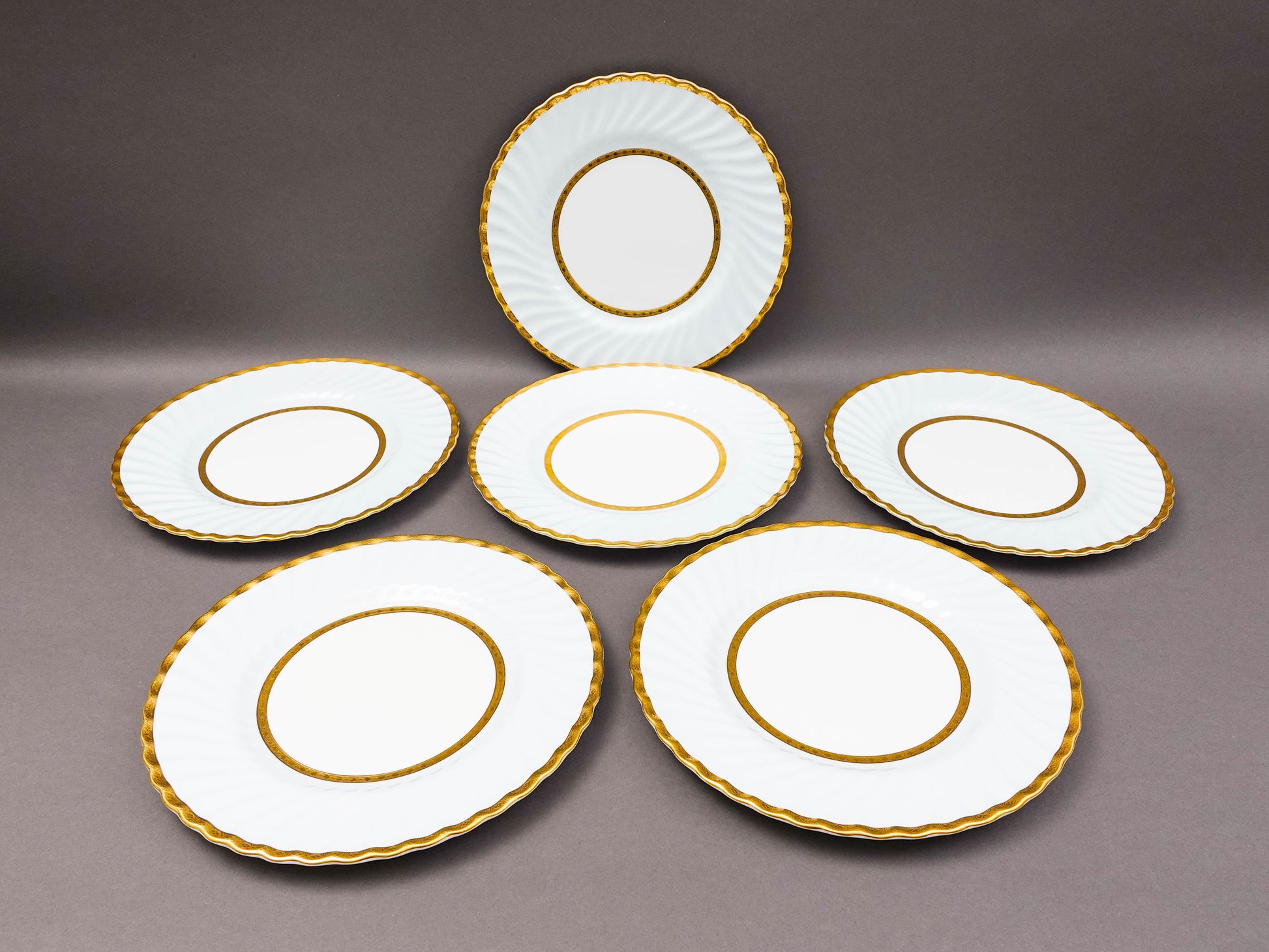 Minton England H5200 Gold Encrusted Light Blue Swirl Embassy Dinner Plate Set Of 6