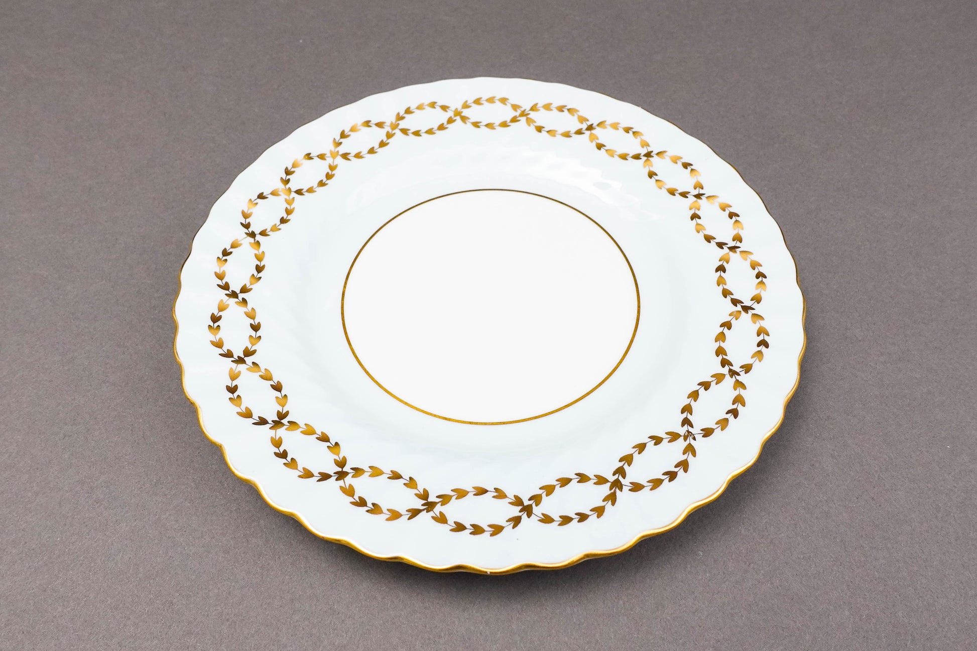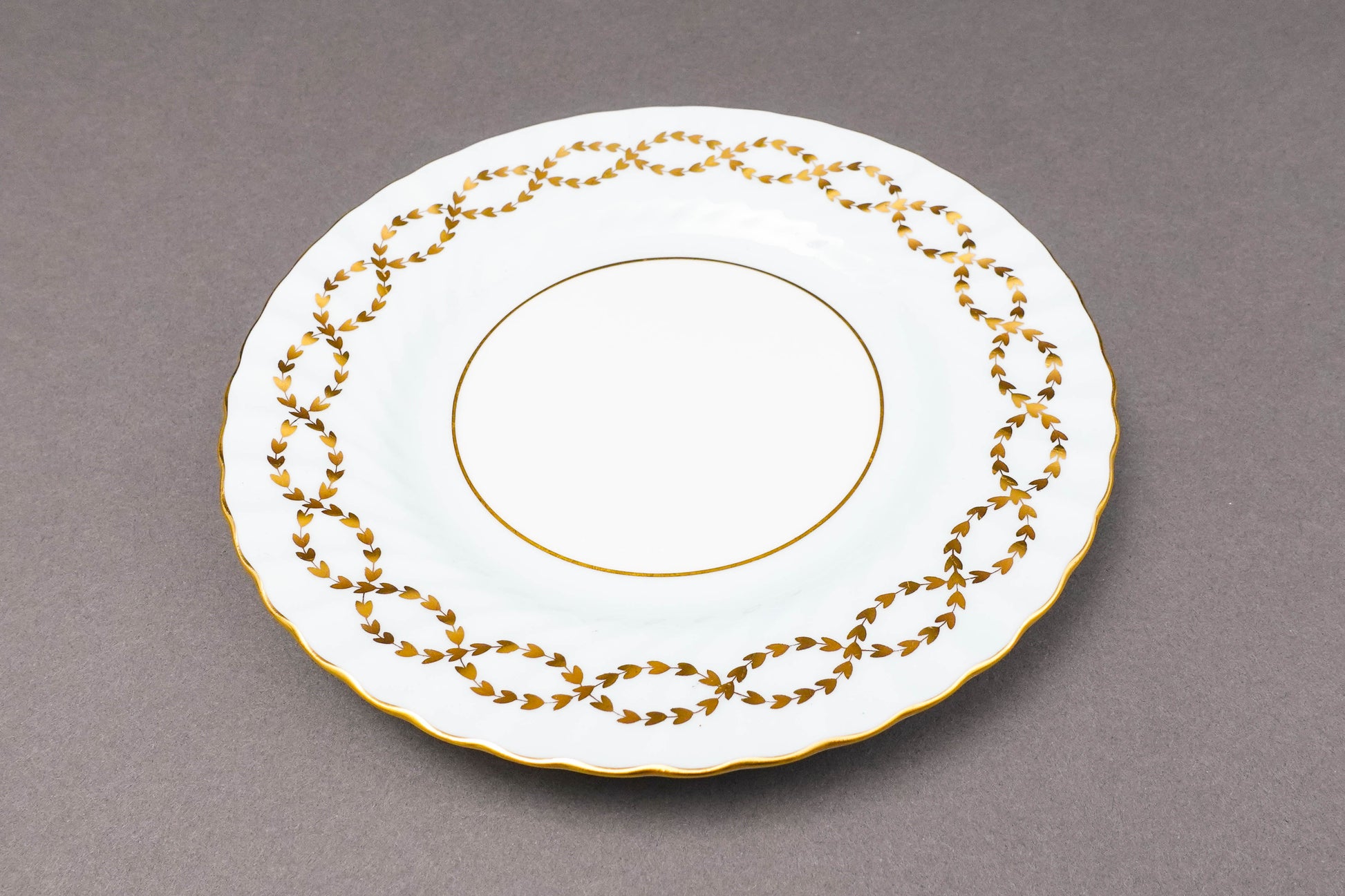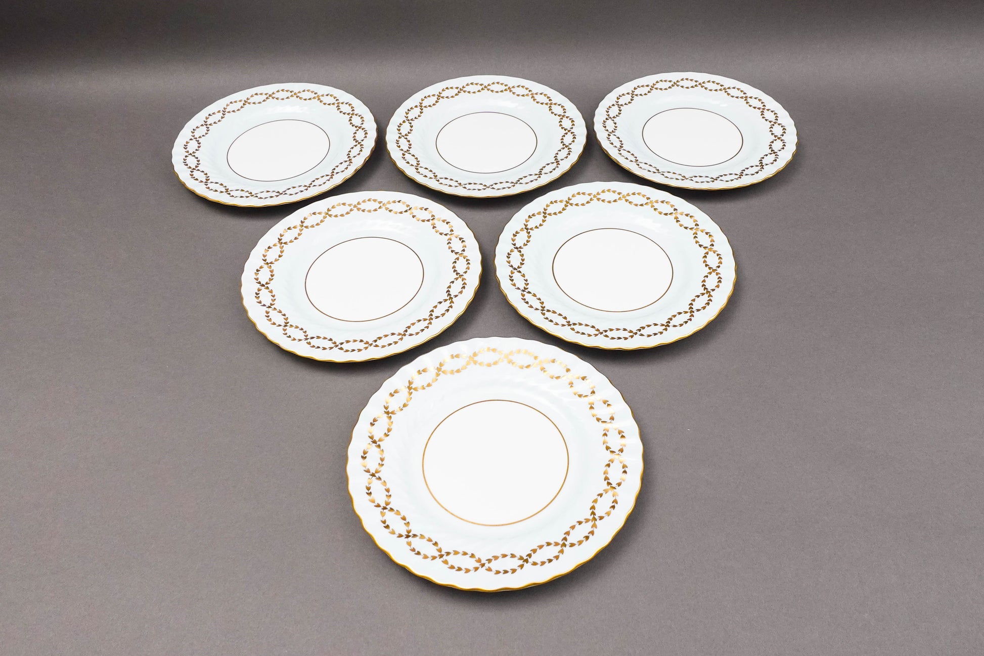 Minton England S600 Gold Intertwined Laurel Leaves Light Blue Swirl Border Salad Dessert Plate Set Of 6