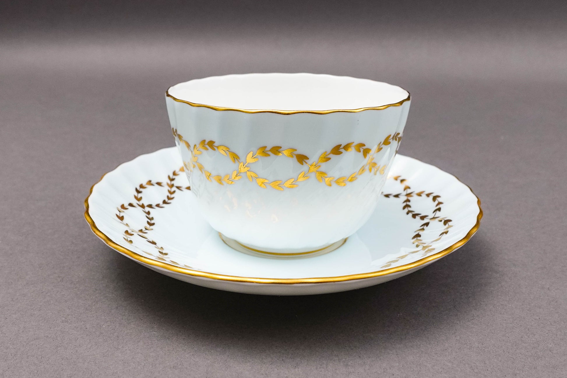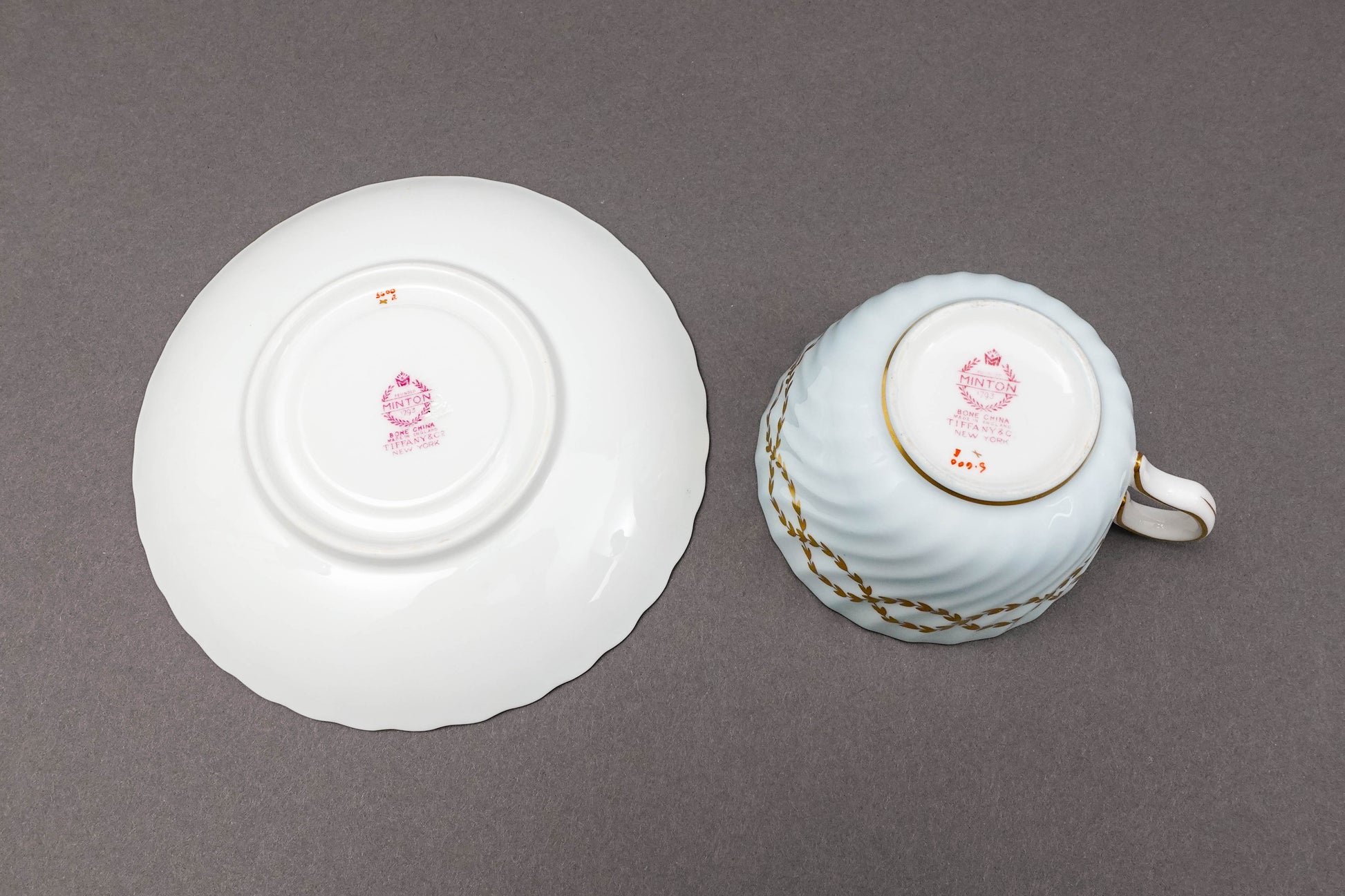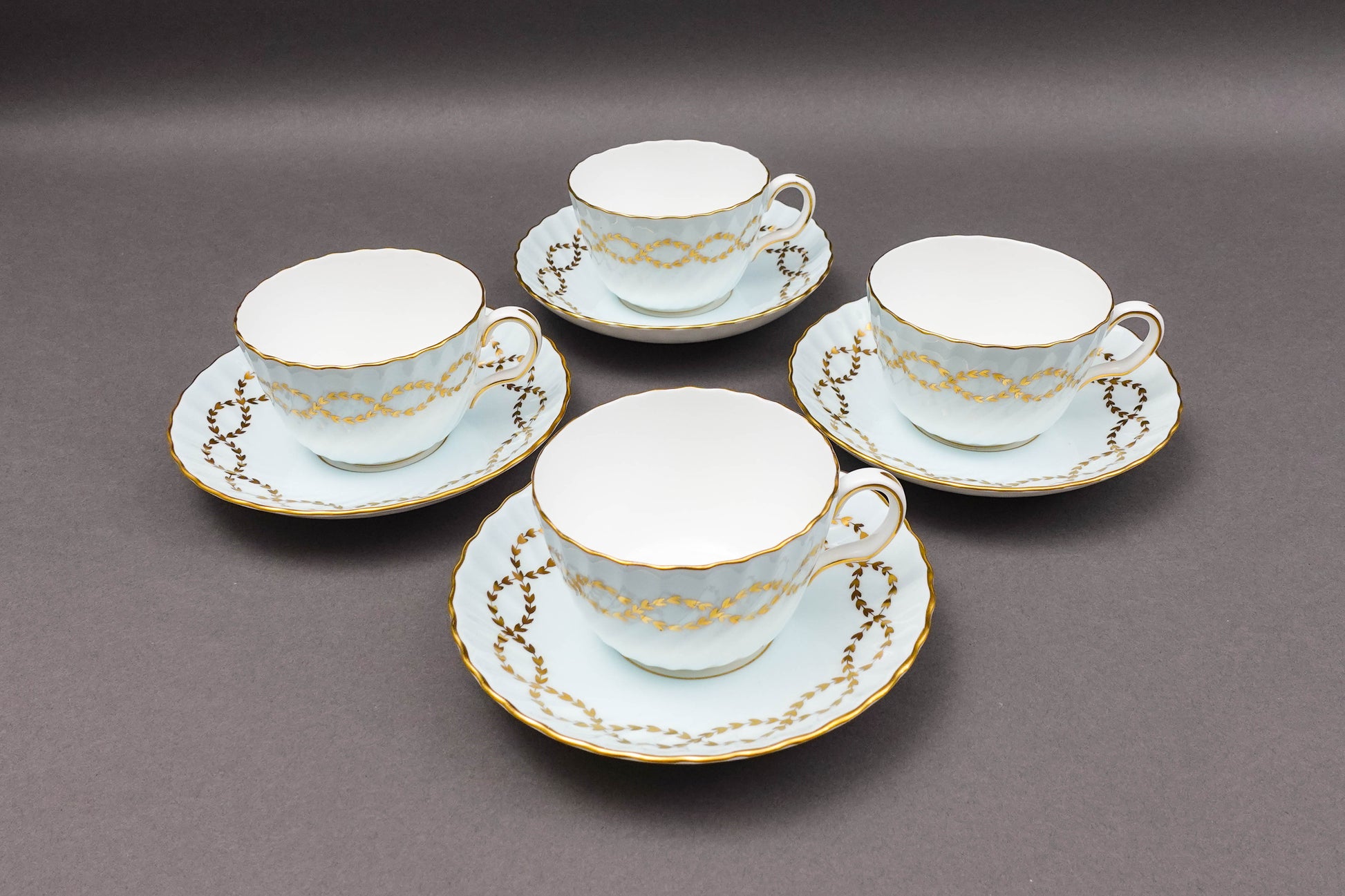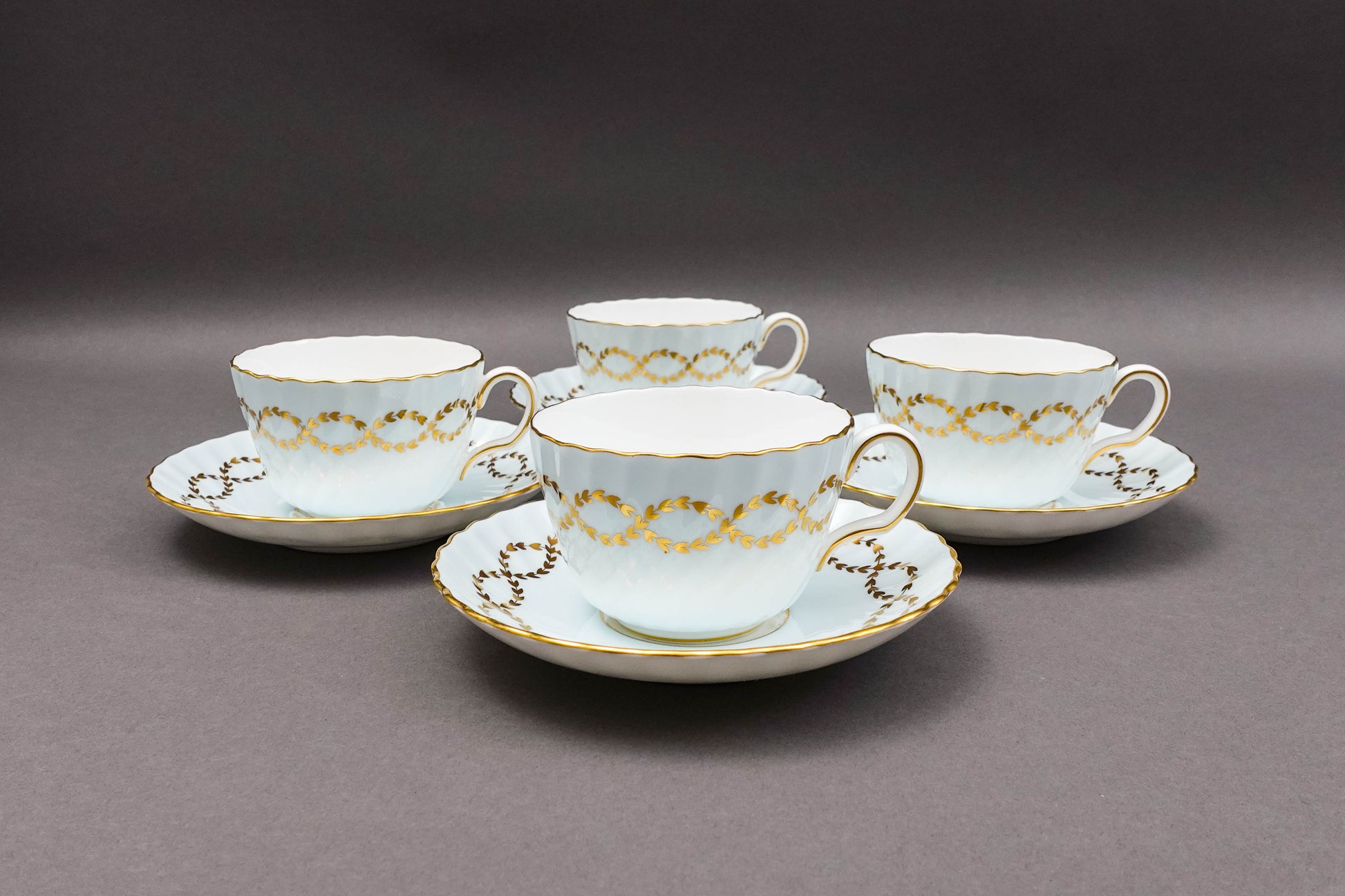 Minton England S600 Gold Laurel Leaves Light Blue Swirl Tea Cup & Saucer Set Of 4.