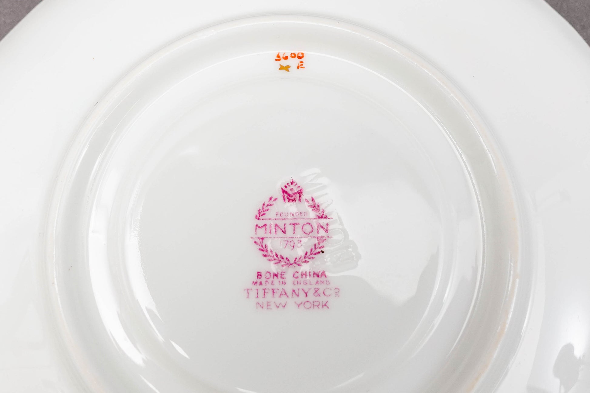 Minton England S600 Gold Laurel Leaves Light Blue Tea Cup & Saucer Set Of 4