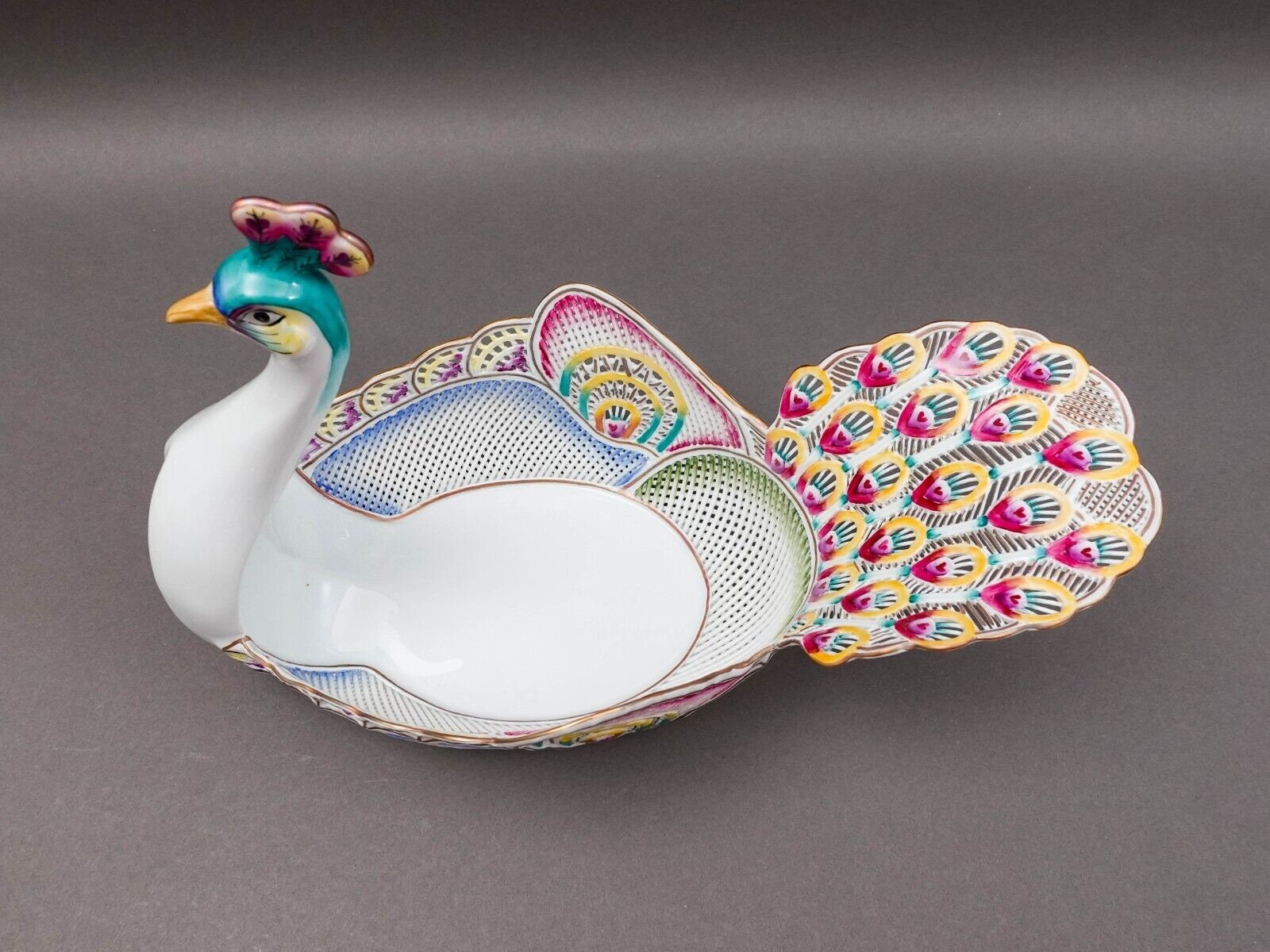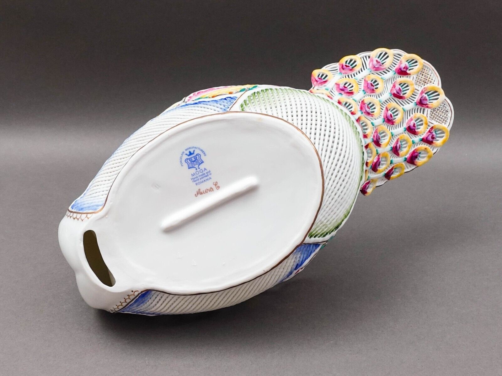 Moga Romania Hand Painted Porcelain Large Peacock Centerpiece Bowl Rare