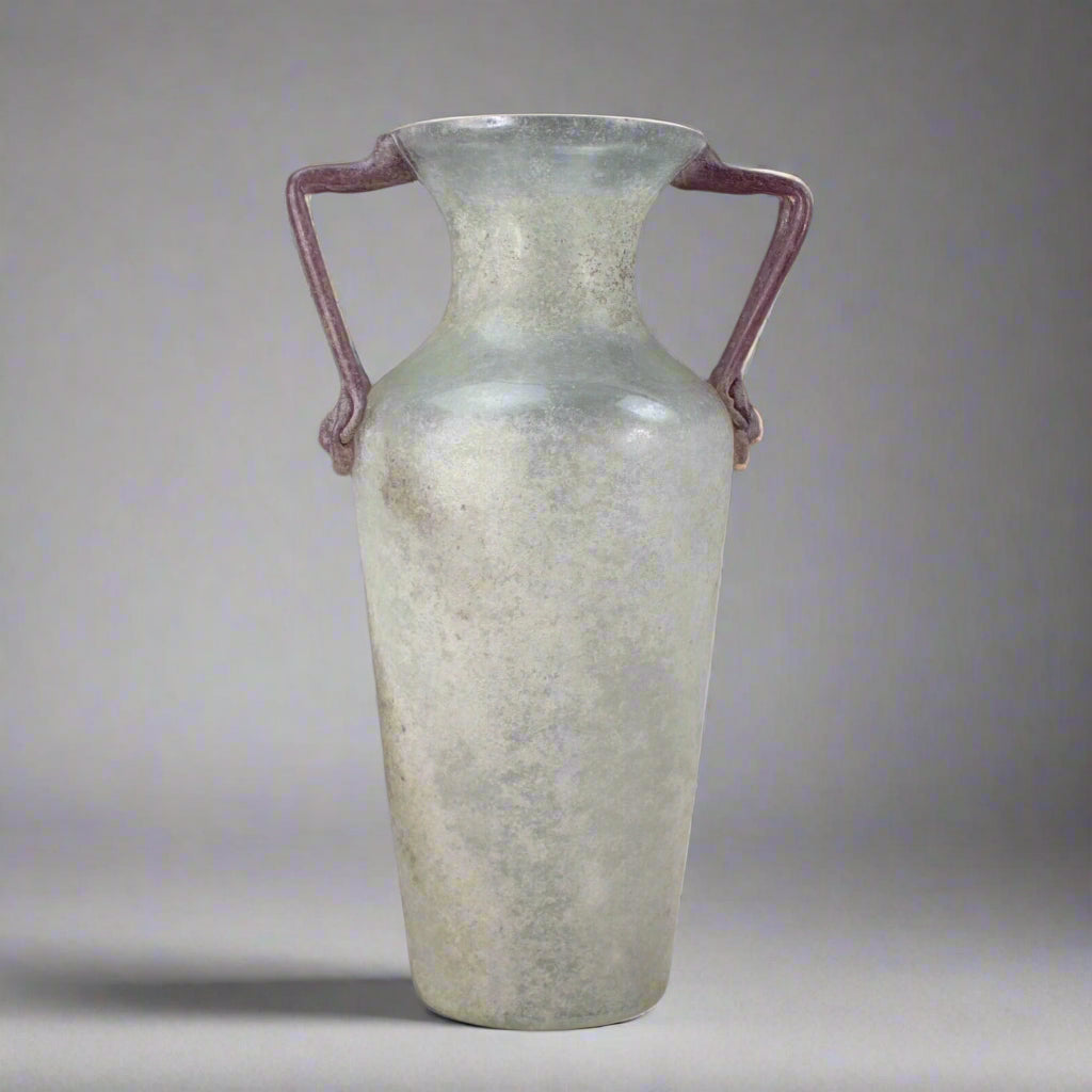 Monumental Signed Murano Scavo Amphora Art Glass Vase Lion Head Handles 18 5/8"