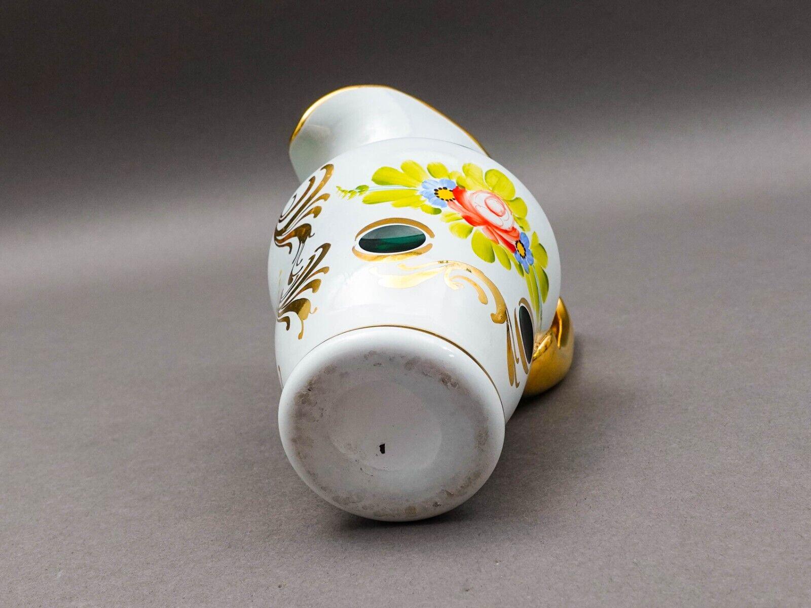 Moser Bohemian Green Cased To White & Gold Hand Painted Carafe Jug Pitcher
