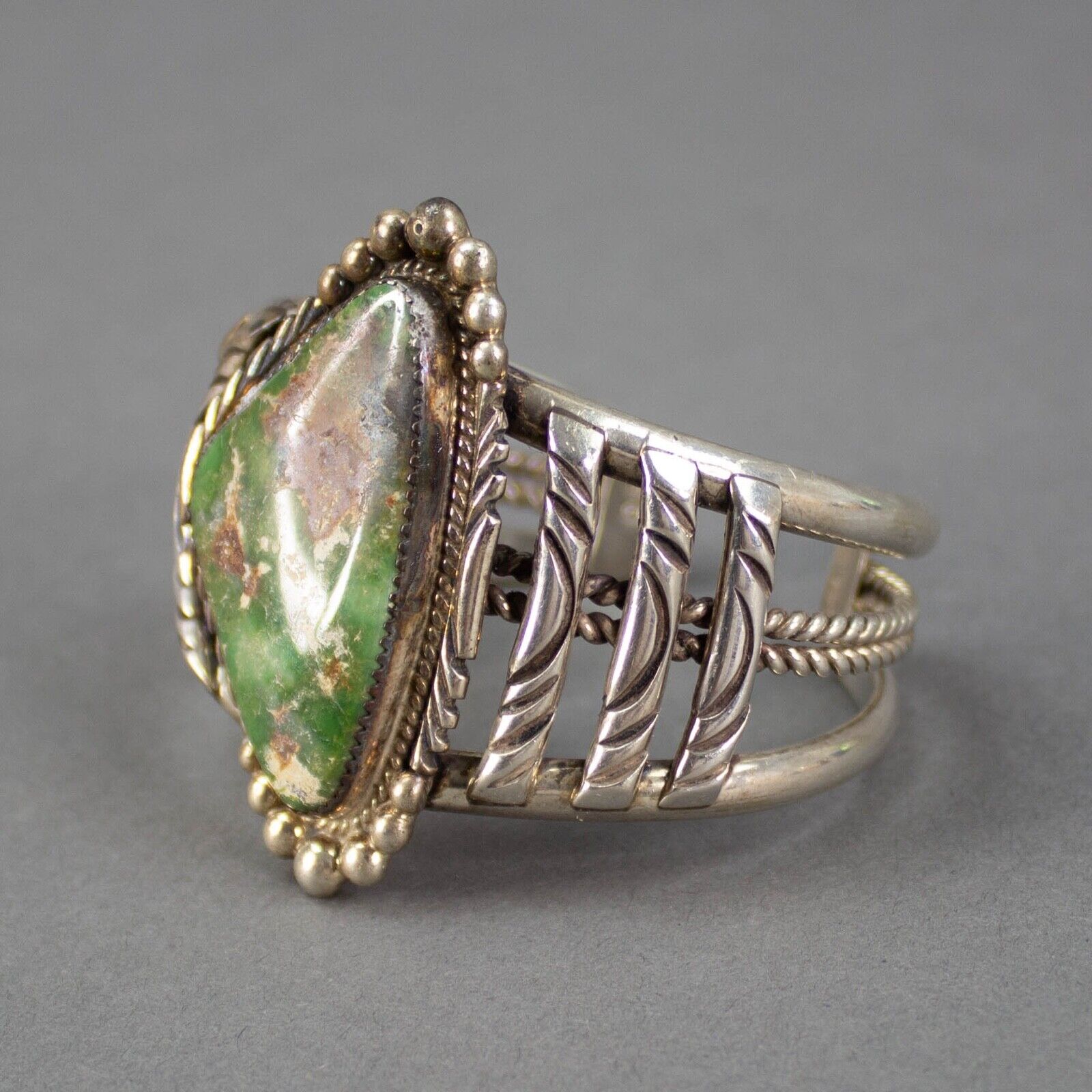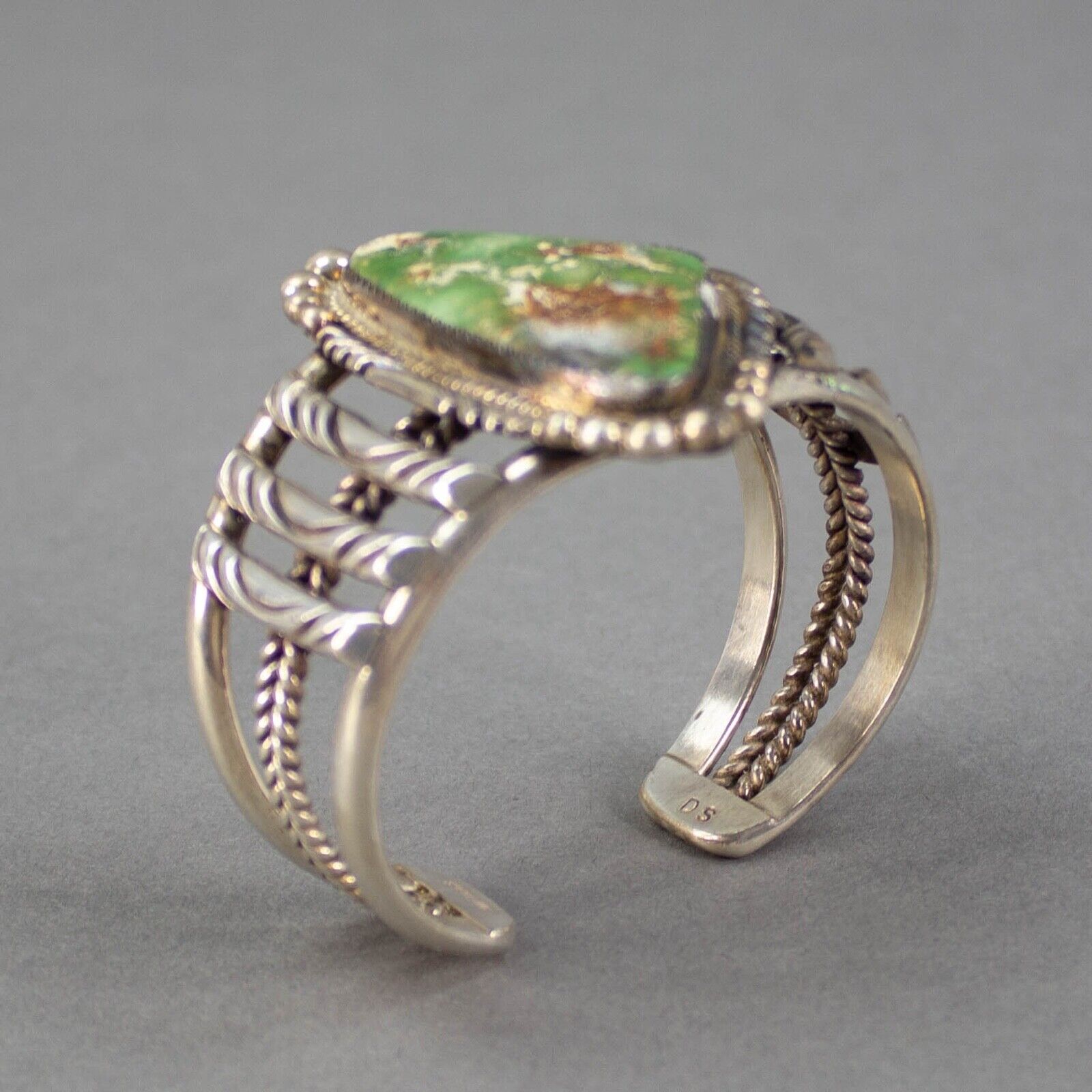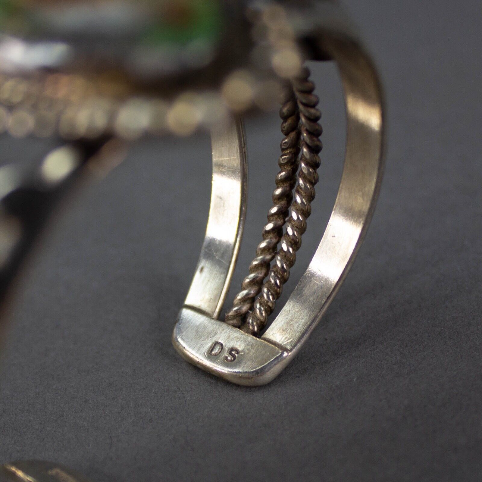 Native American Signed DS Sterling Navajo Green Royston Turquoise Cuff