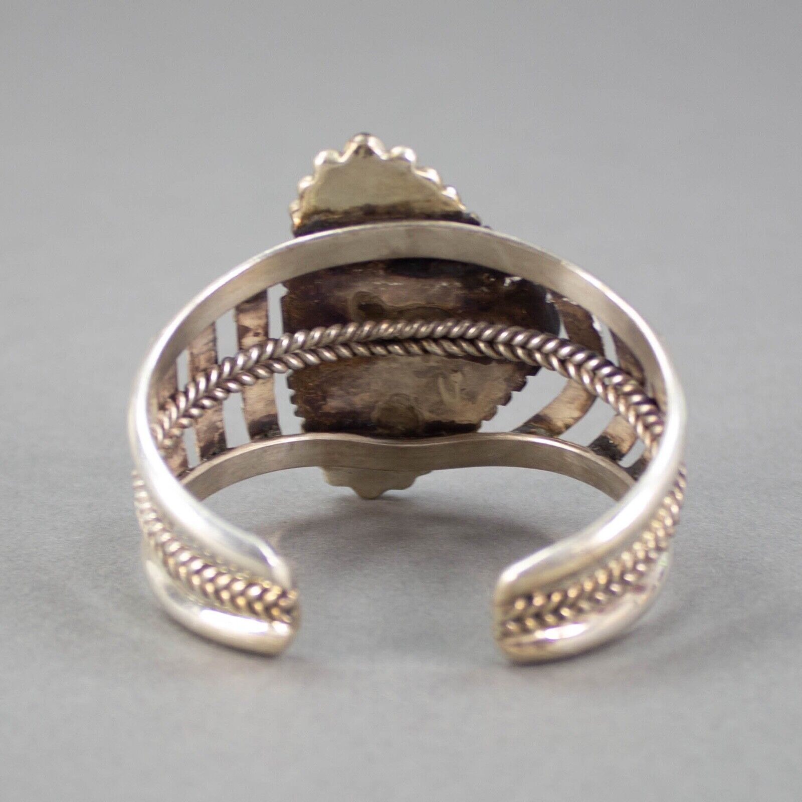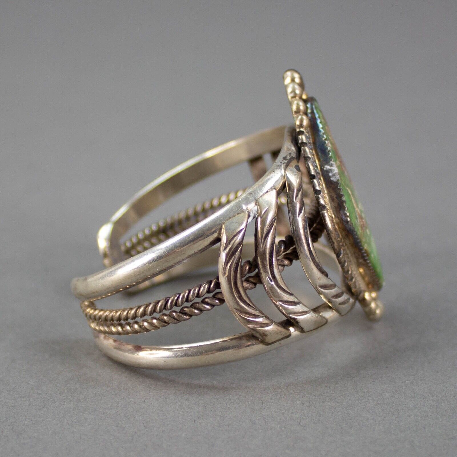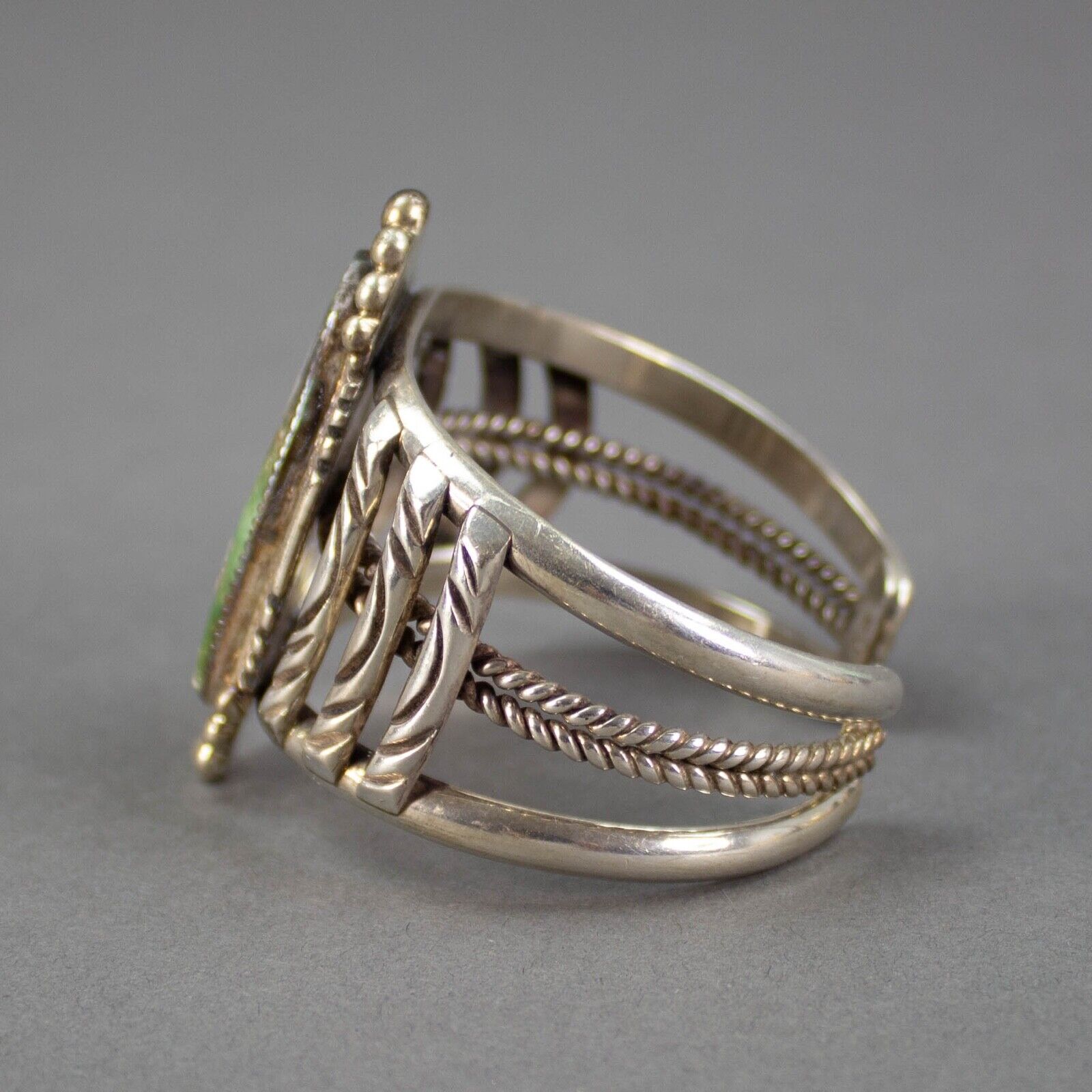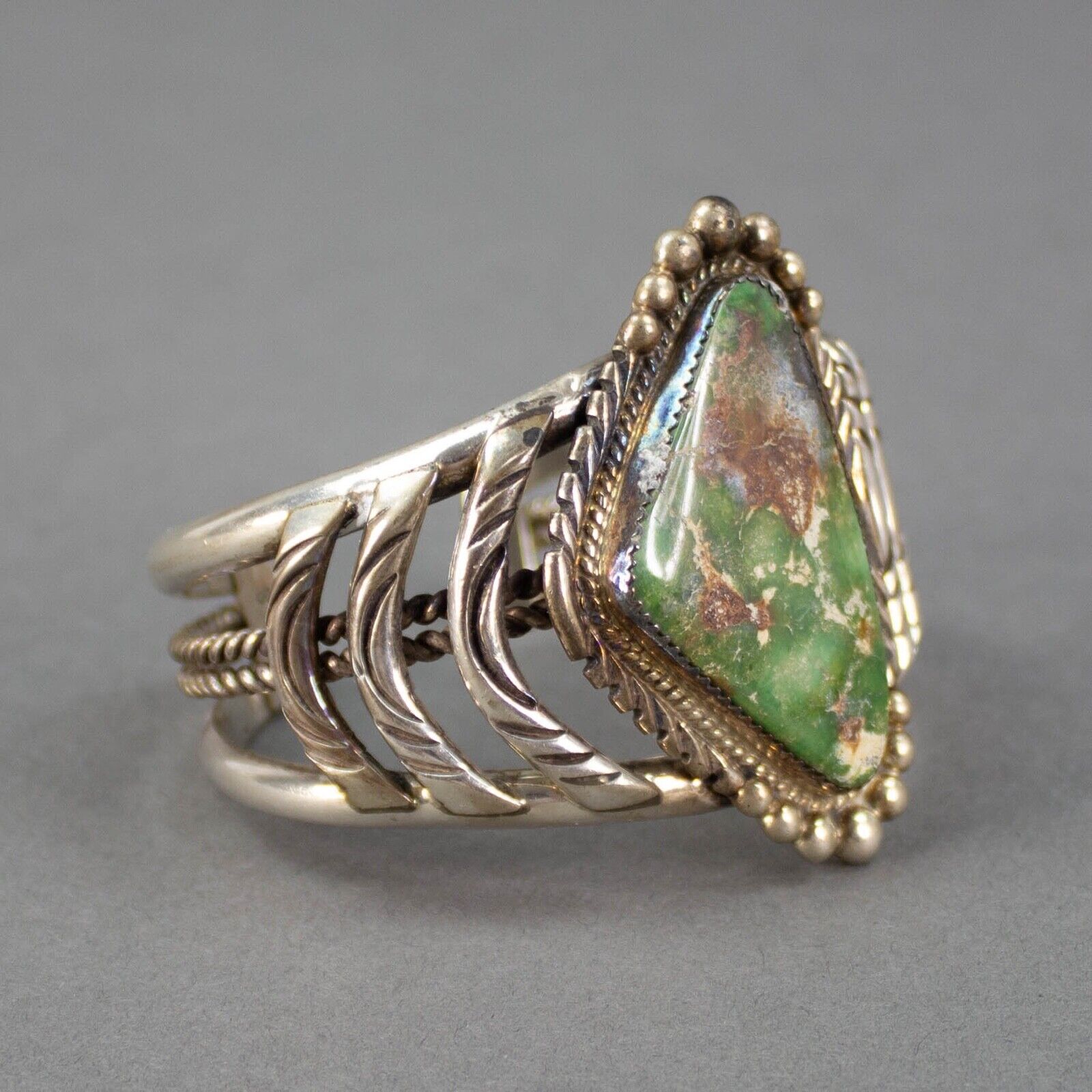 Native American Signed DS Sterling Navajo Green Royston Turquoise Cuff