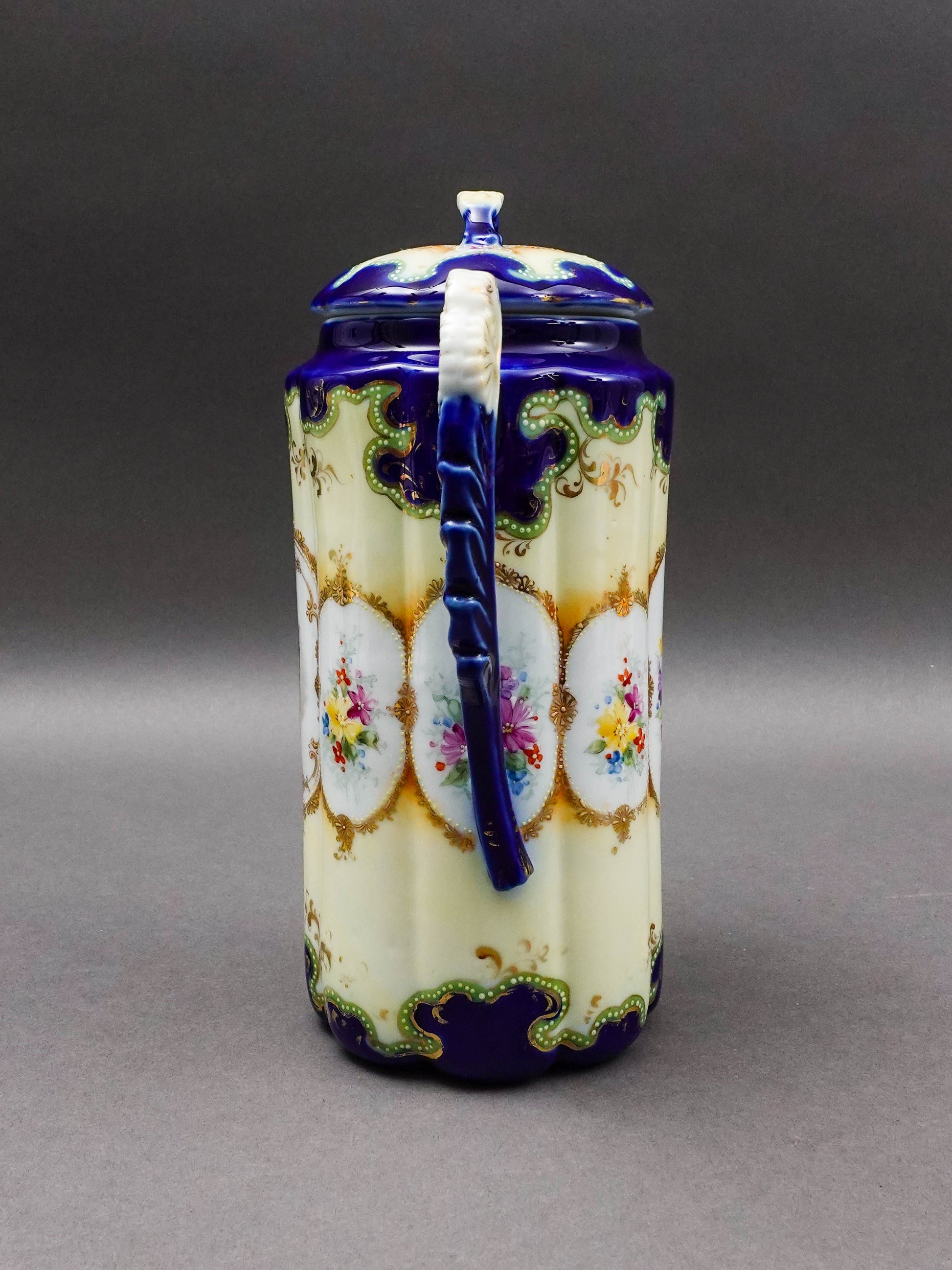 Nippon Antique Hand Painted Josephine Portrait Floral Porcelain Chocolate Pot