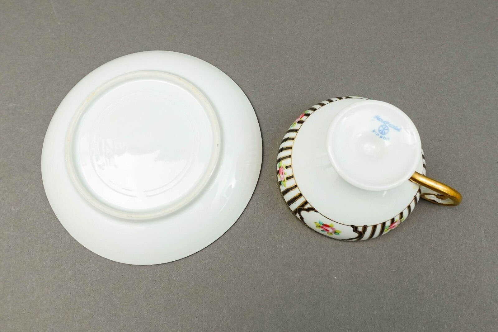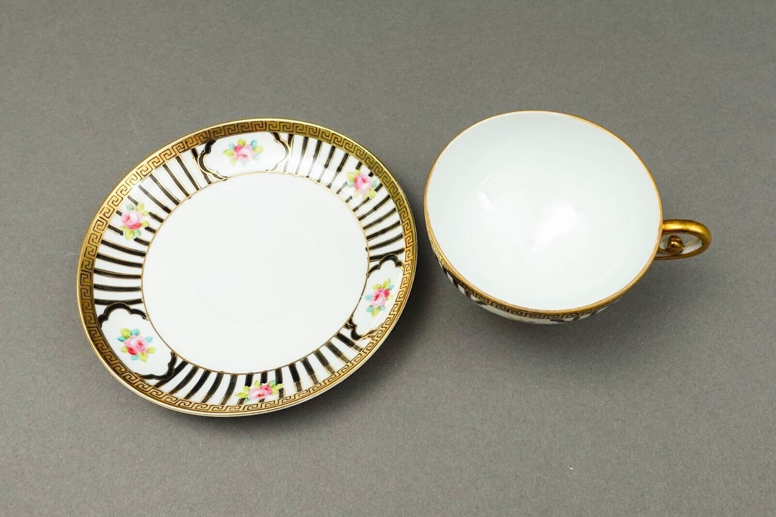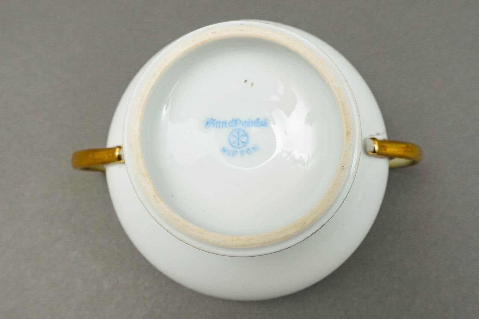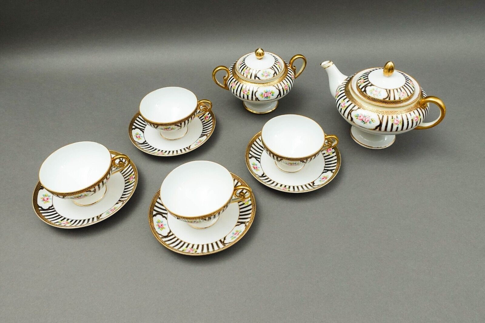 Nippon Japan Hand Painted Pink Roses Gold Gilded Tea Set - No Creamer