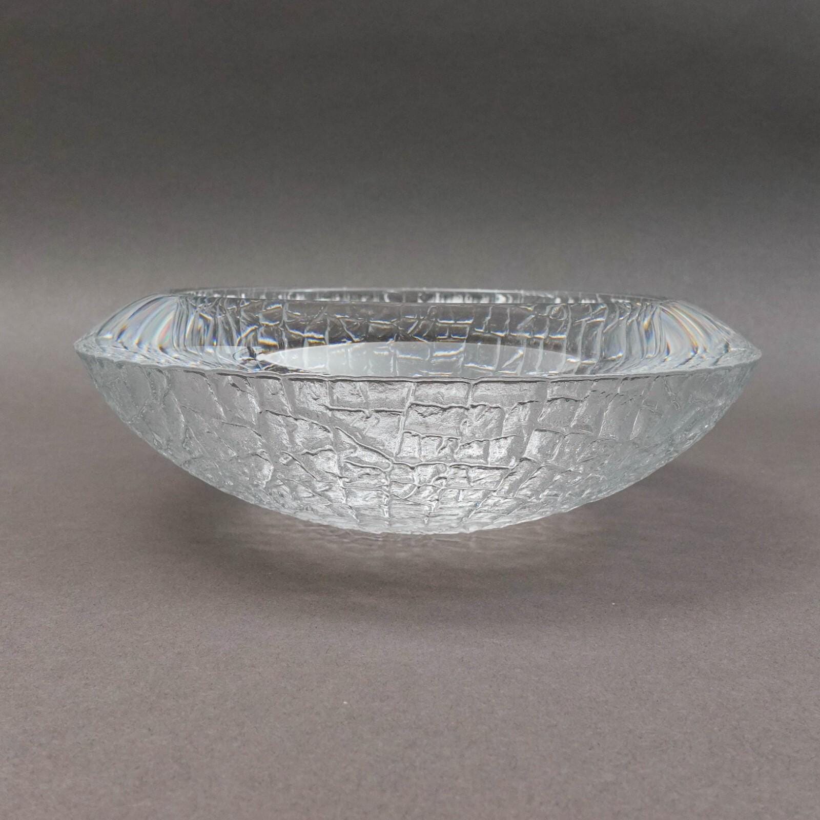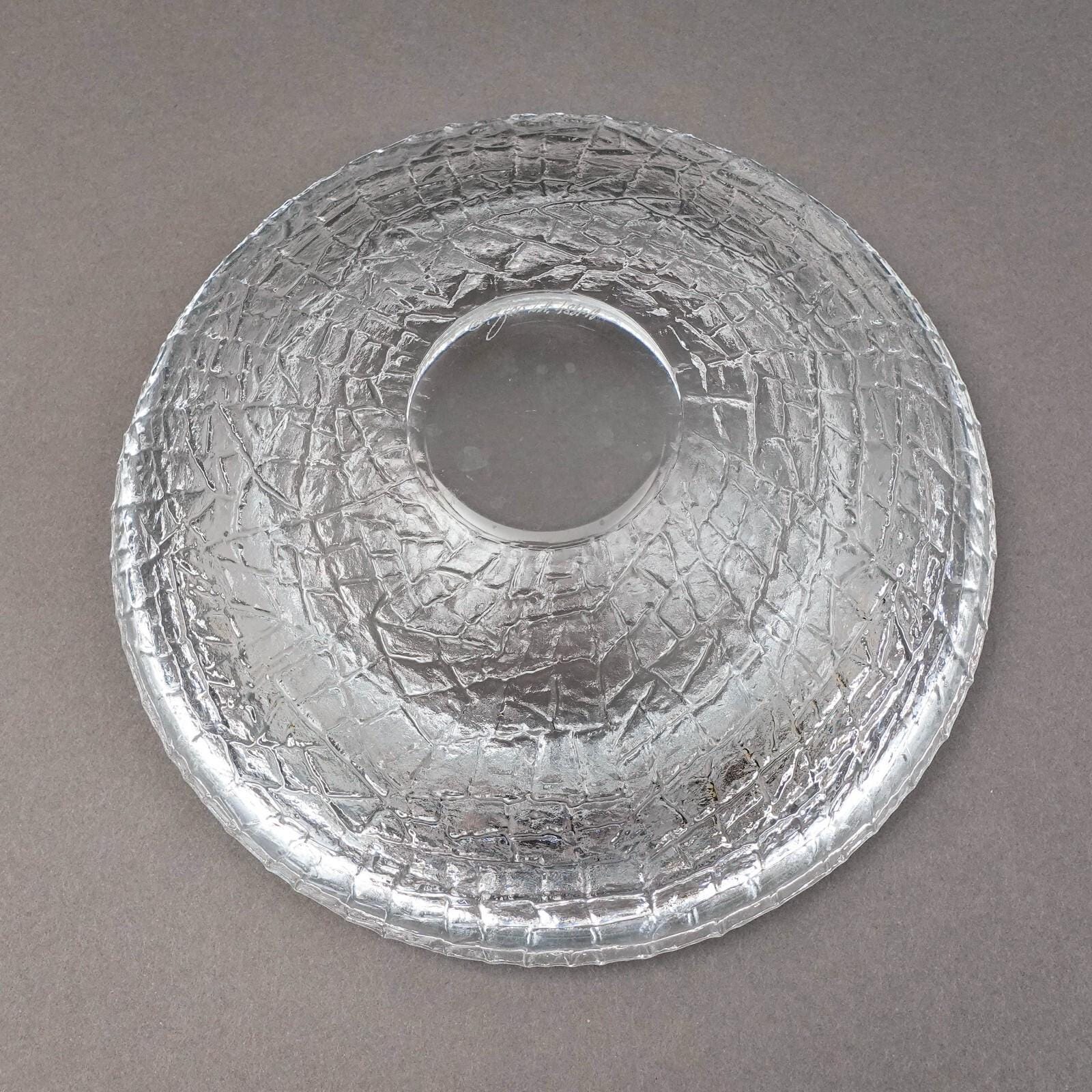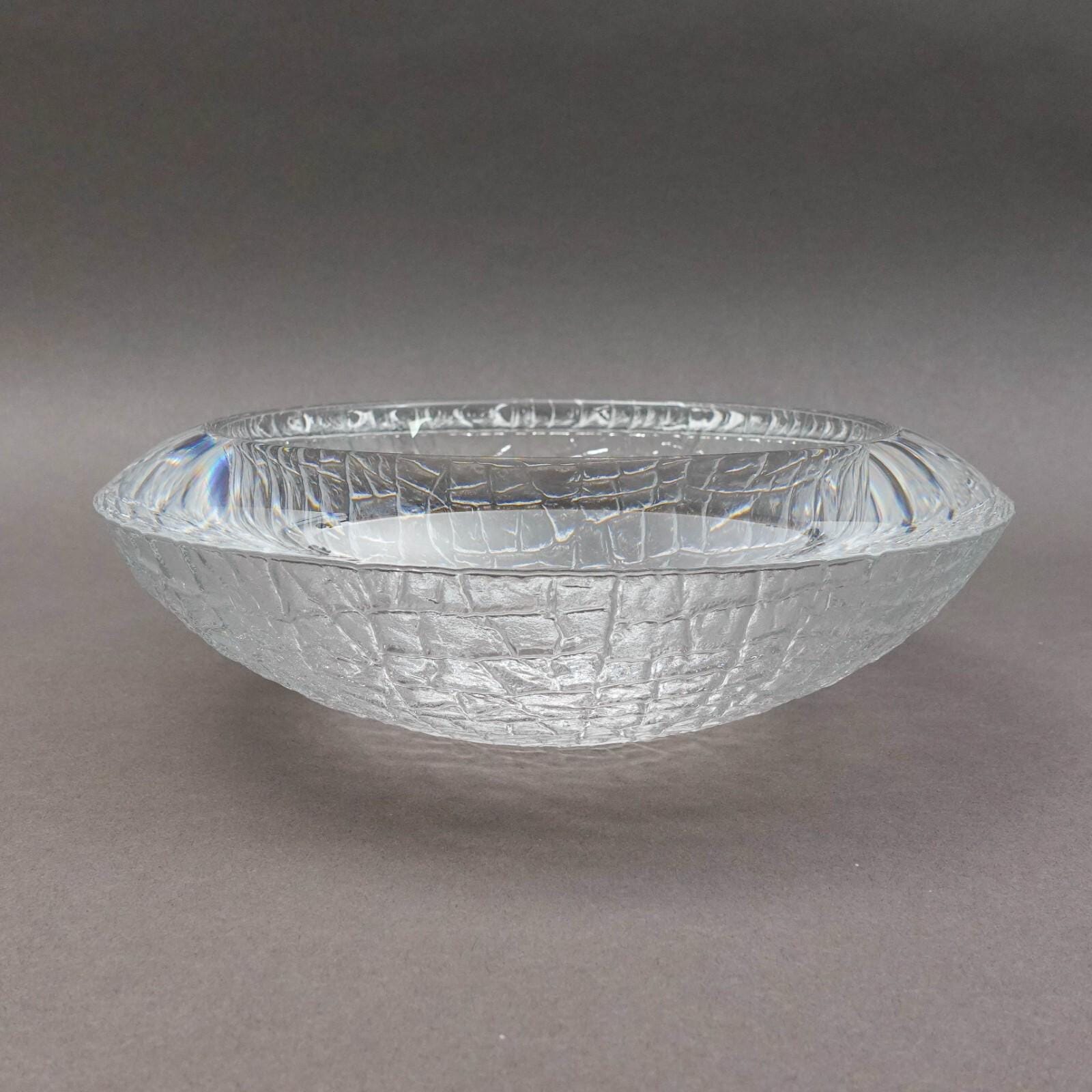 Orrefors Sweden Lars Hellsten Discus Textured Crystal Art Glass Bowl Dish