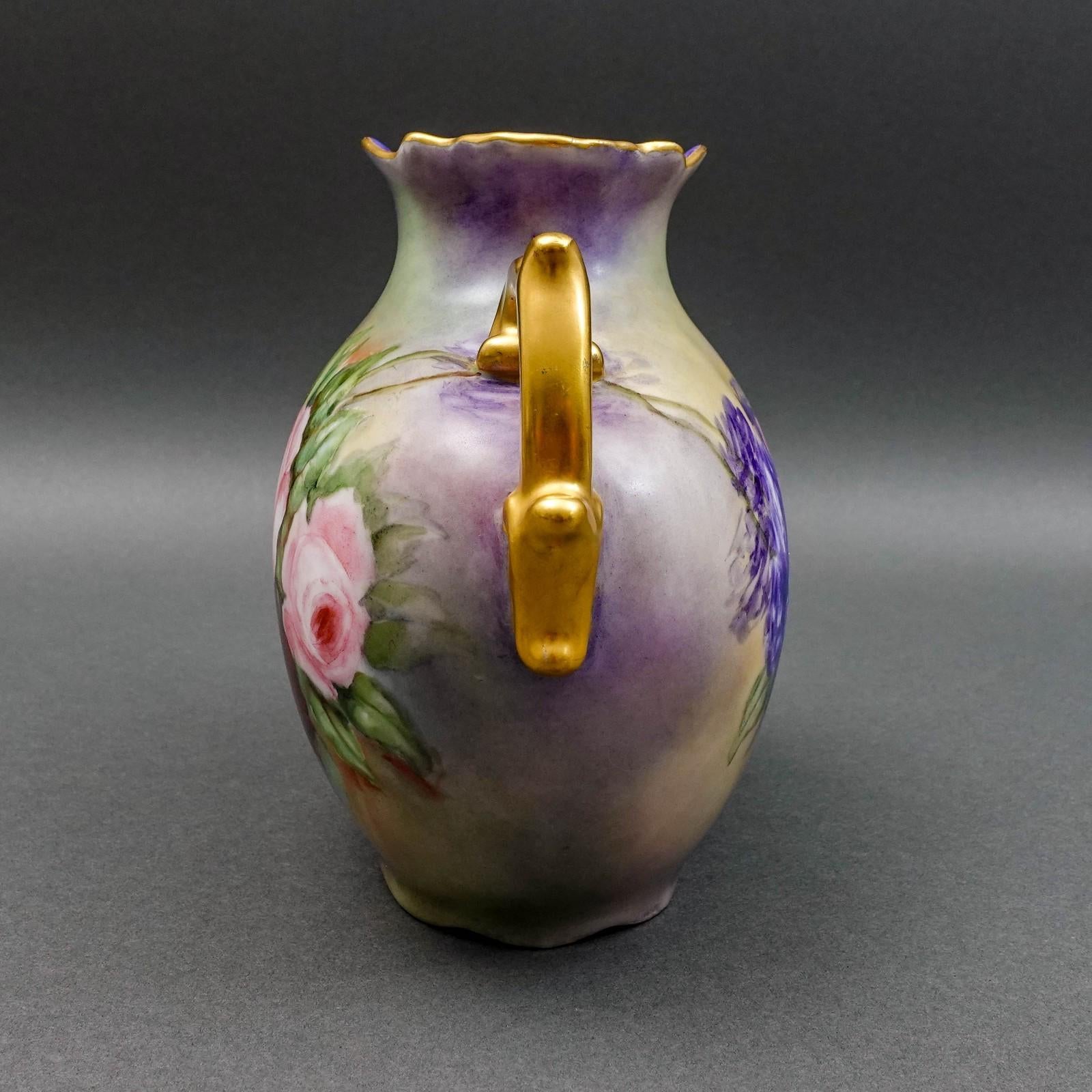 P.H. Leonard Vienna Austria Antique 1909 Hand Painted Floral Handled Pillow Vase