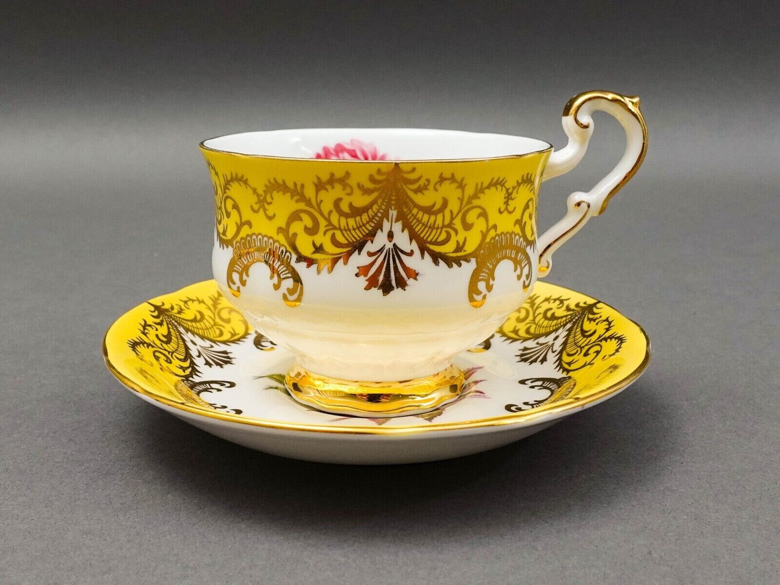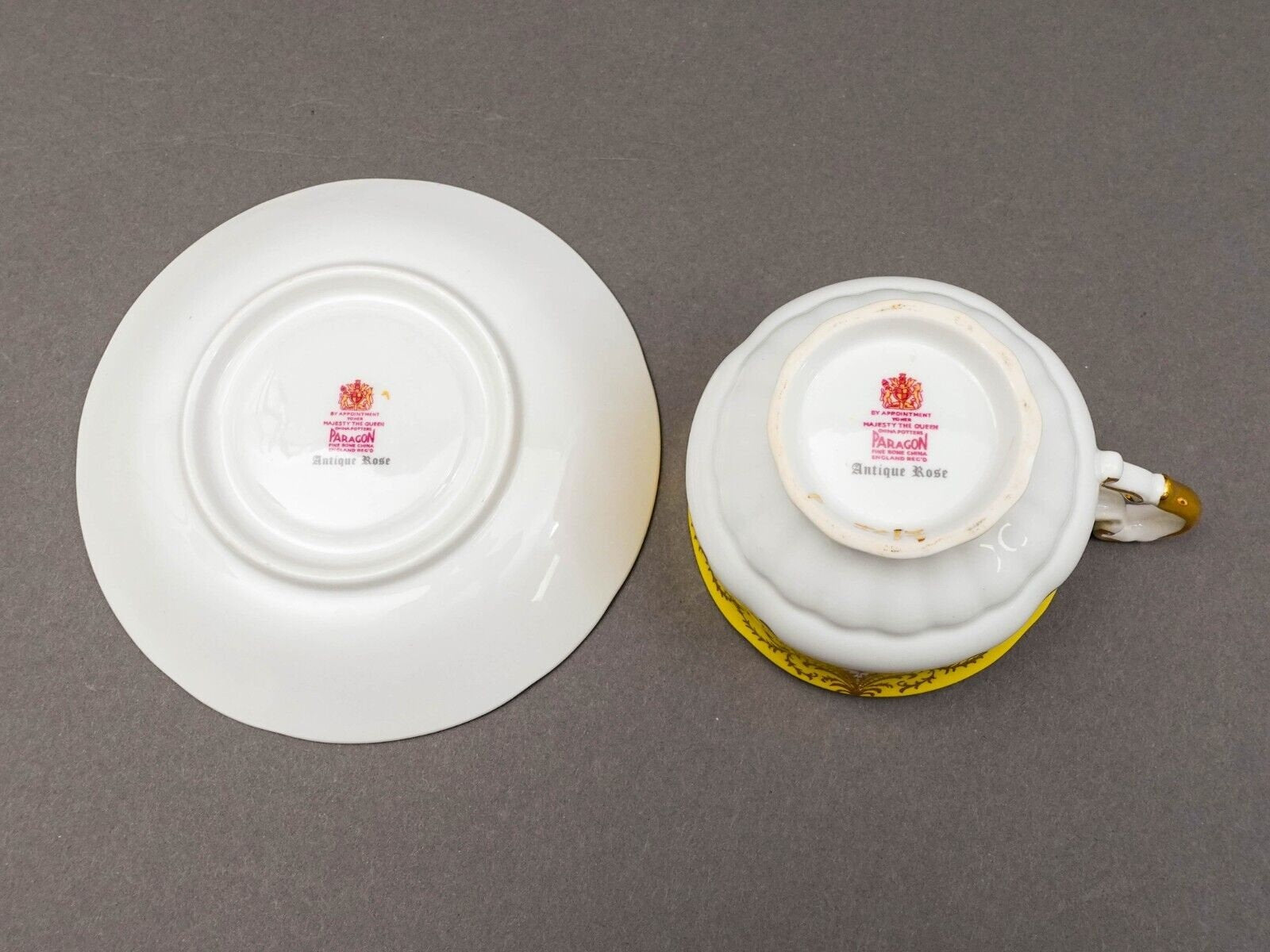 Paragon England Antique Rose Vintage Yellow Tea Cup & Saucer Signed Reg Johnson