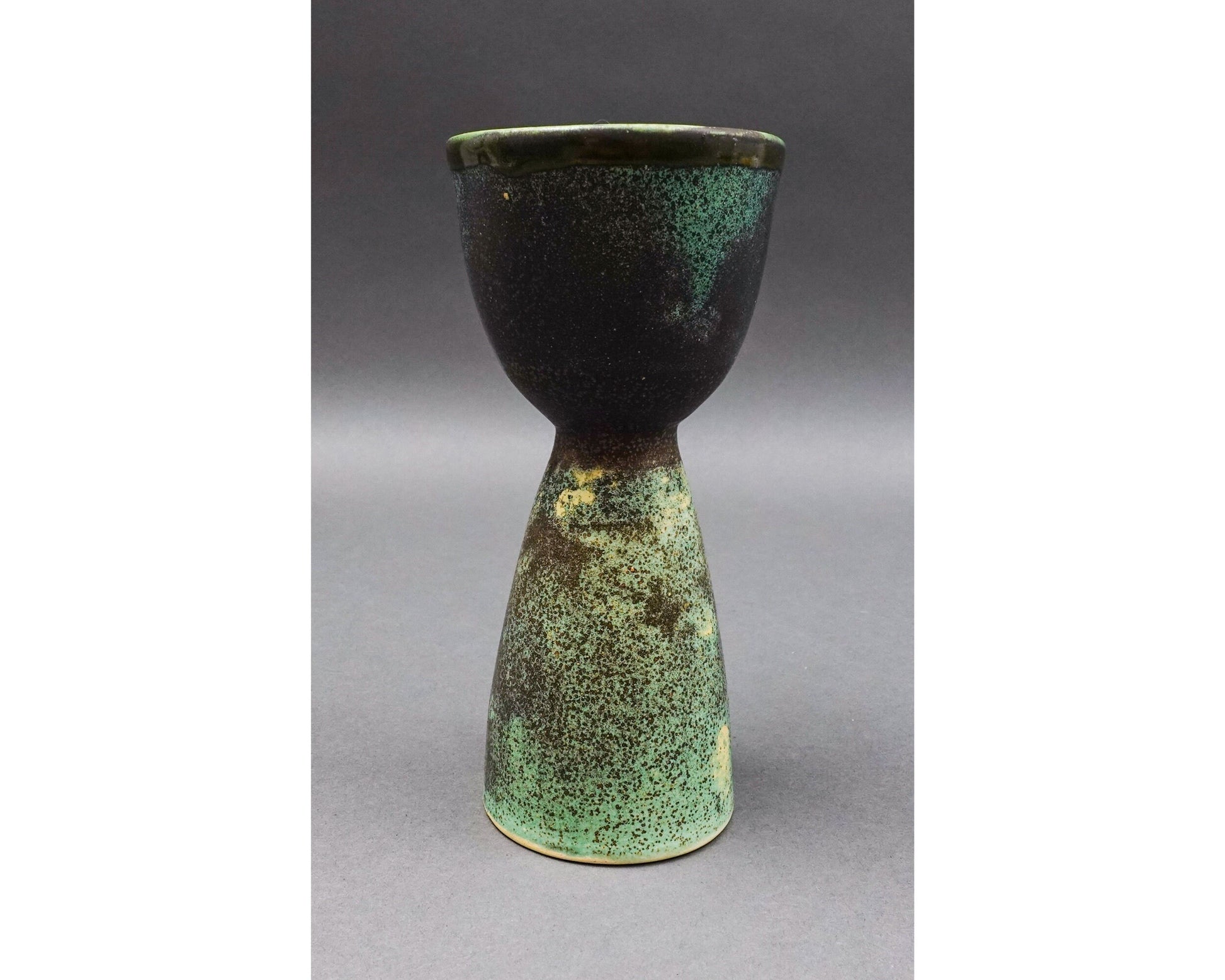 Pirjo Nylander Finland Signed Green Figural King Studio Pottery Chalice Goblet