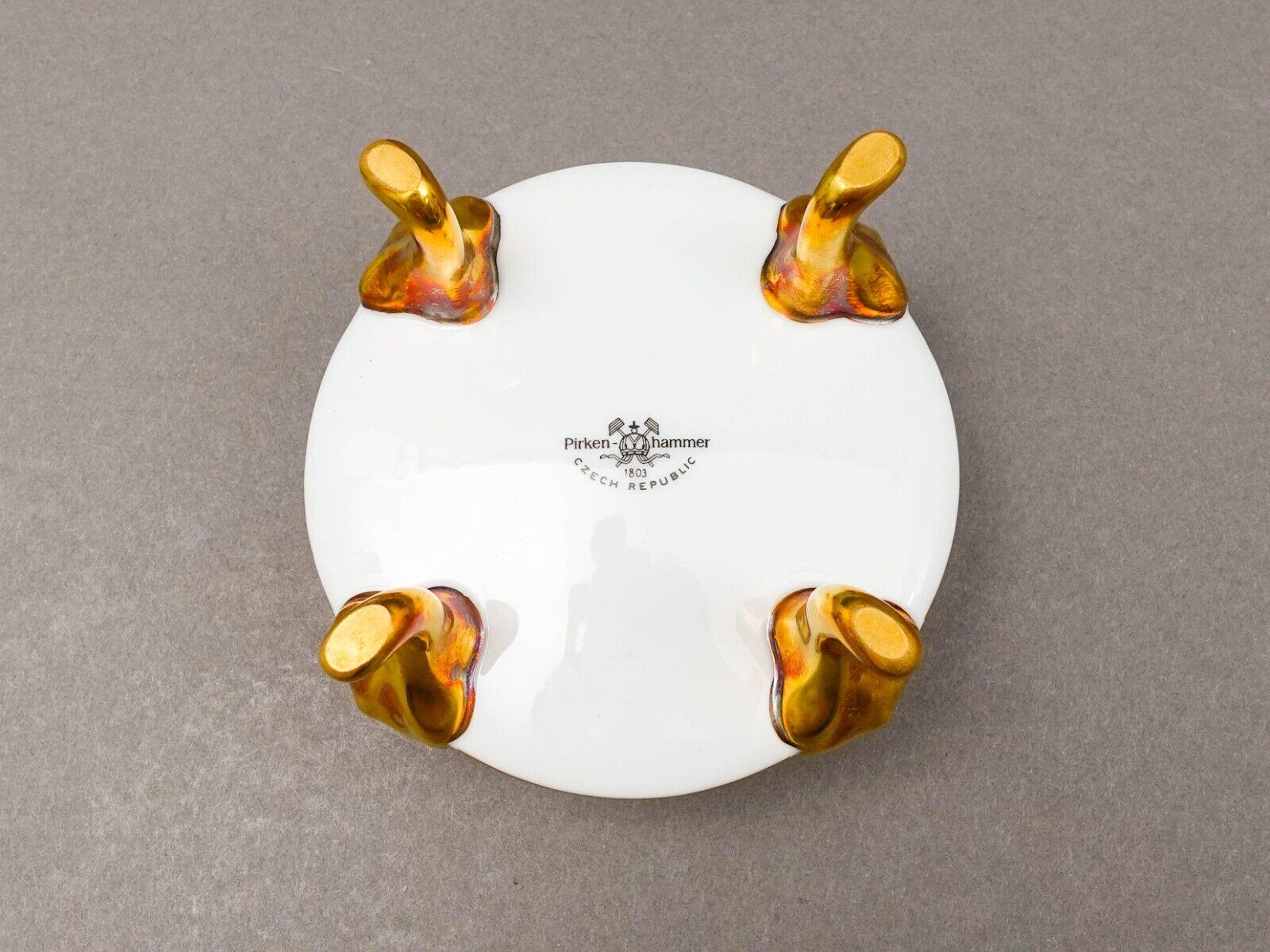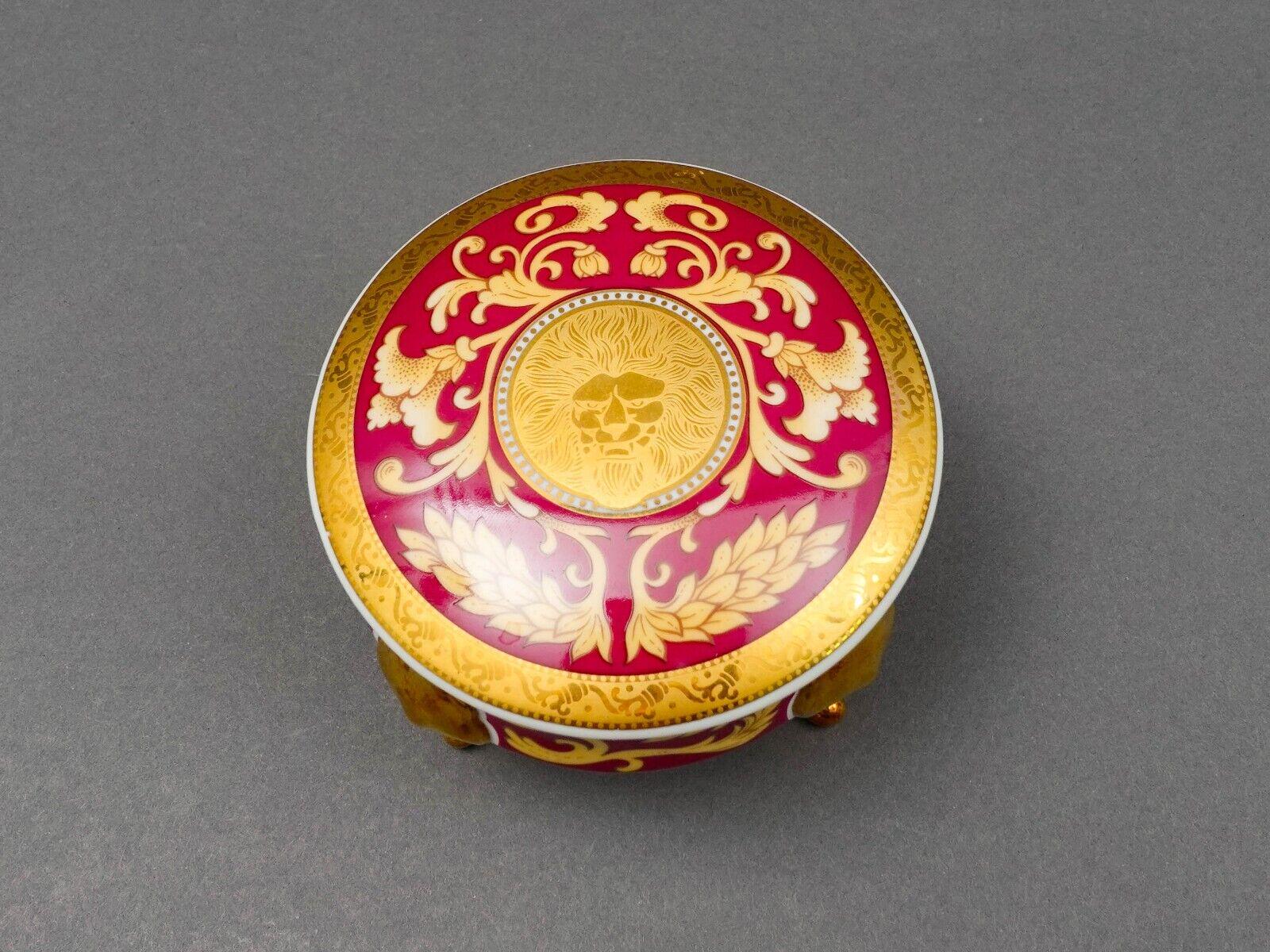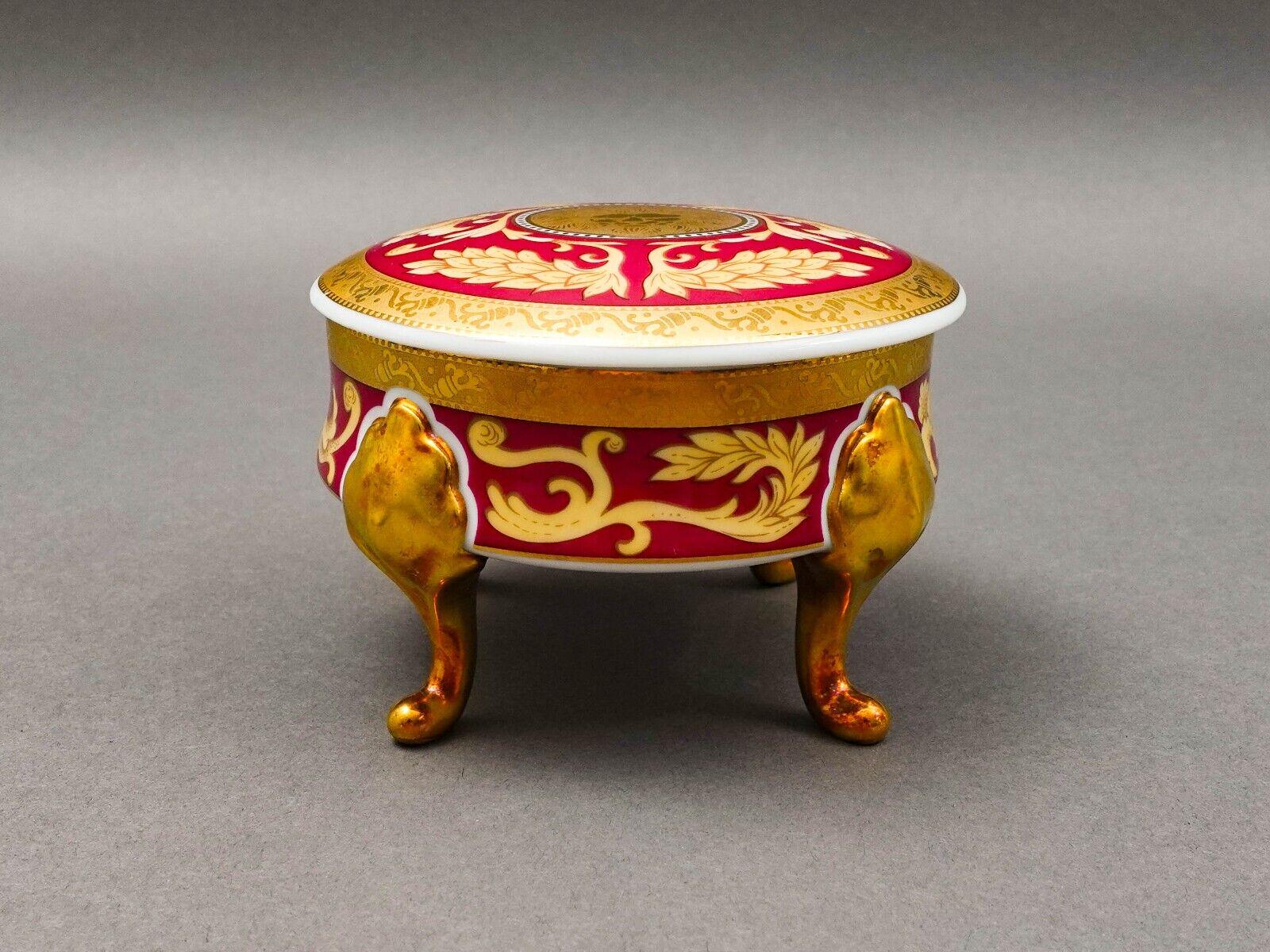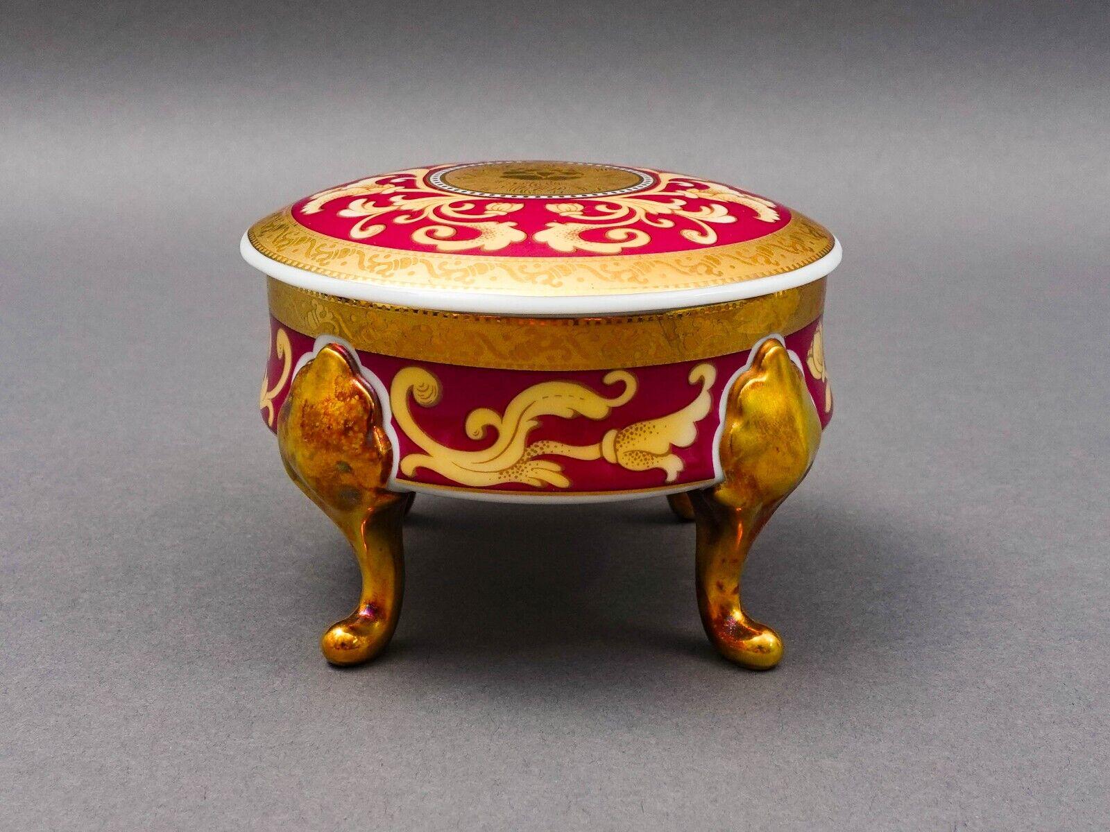 Pirken Hammer Czechoslovakia Red & Gold Porcelain Footed Lidded Dresser Trinket