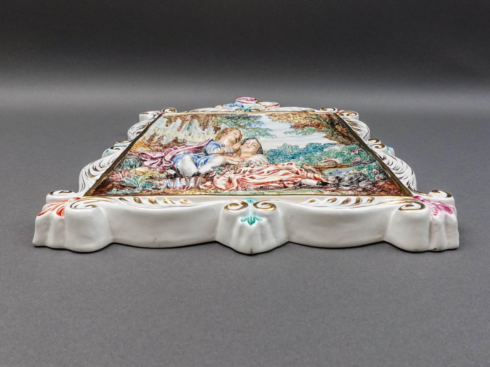 R. Capodimonte Italy Vintage Romantic Couple Relief Porcelain Wall Plaque