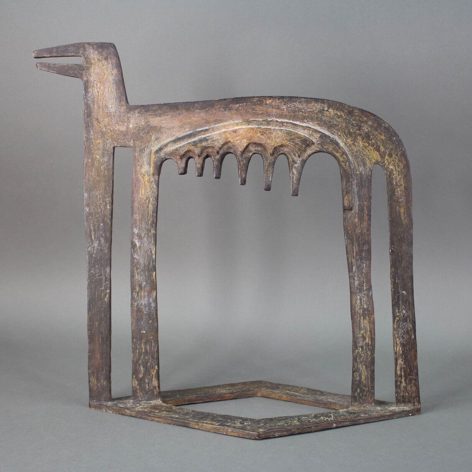 Rare Large Signed 1990 Modernist Abstract Bronze She Wolf Art Sculpture