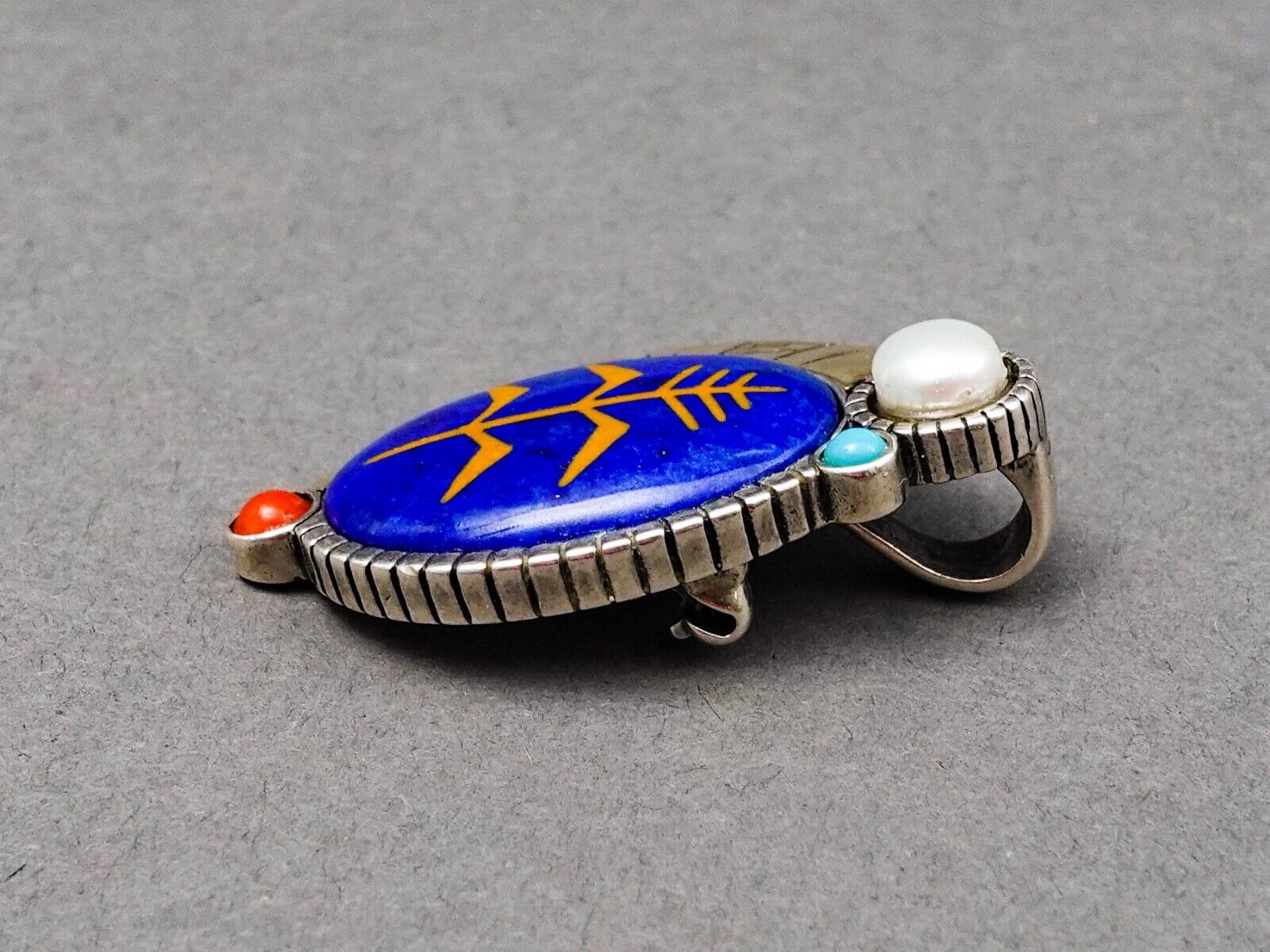 RMT Roderick Tenorio Navajo Sterling 14K Gold Multistone Pendant Brooch Pin