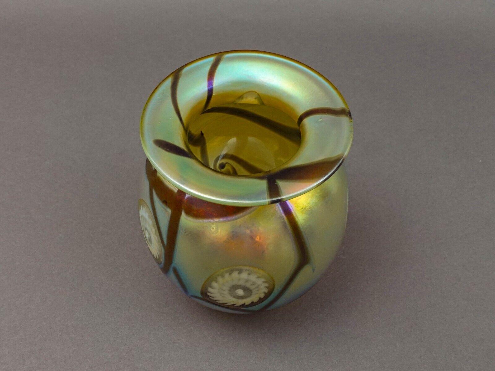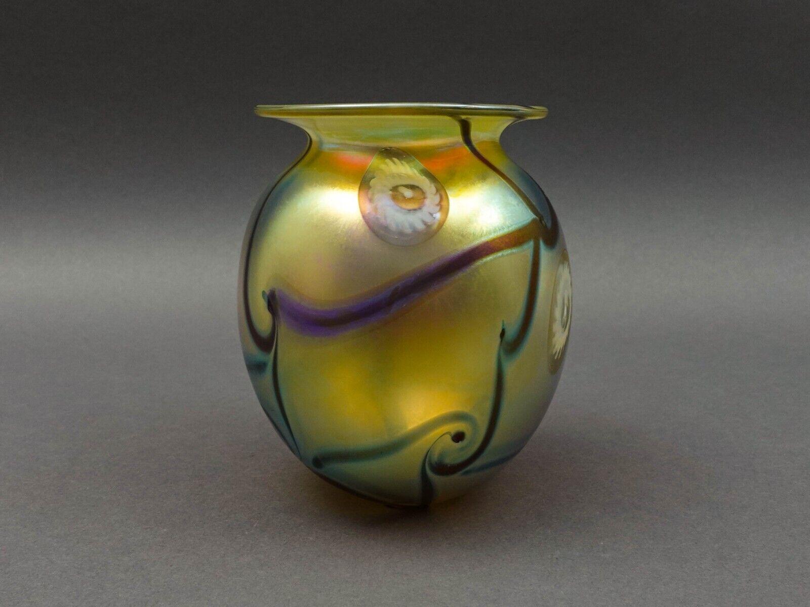 Robert Eickholt 1995 Iridescent Gold Aurene Art Glass Sea Anemone Flower Vase 5"