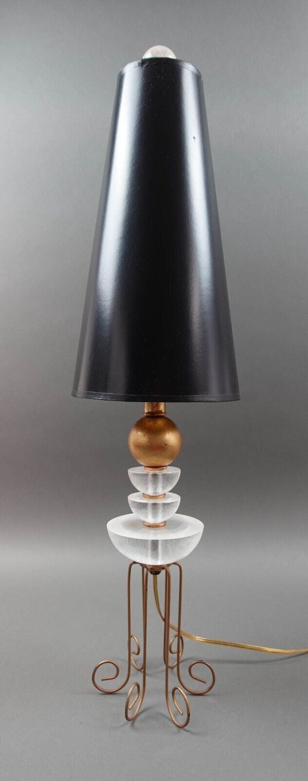 Roche Bobois Gold Orb Table Lamp With Crackled Lucite Accents Wire Metal Legs.