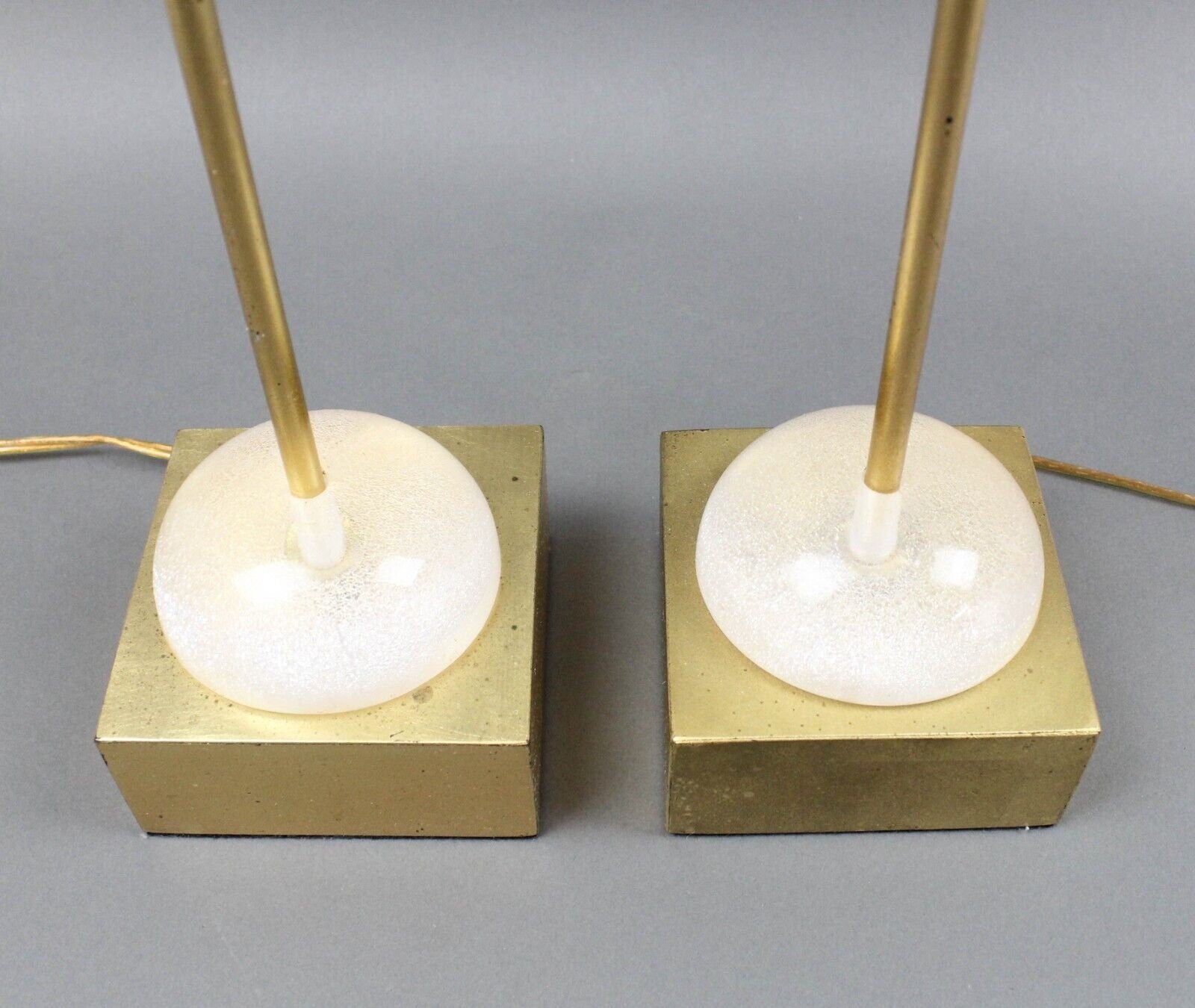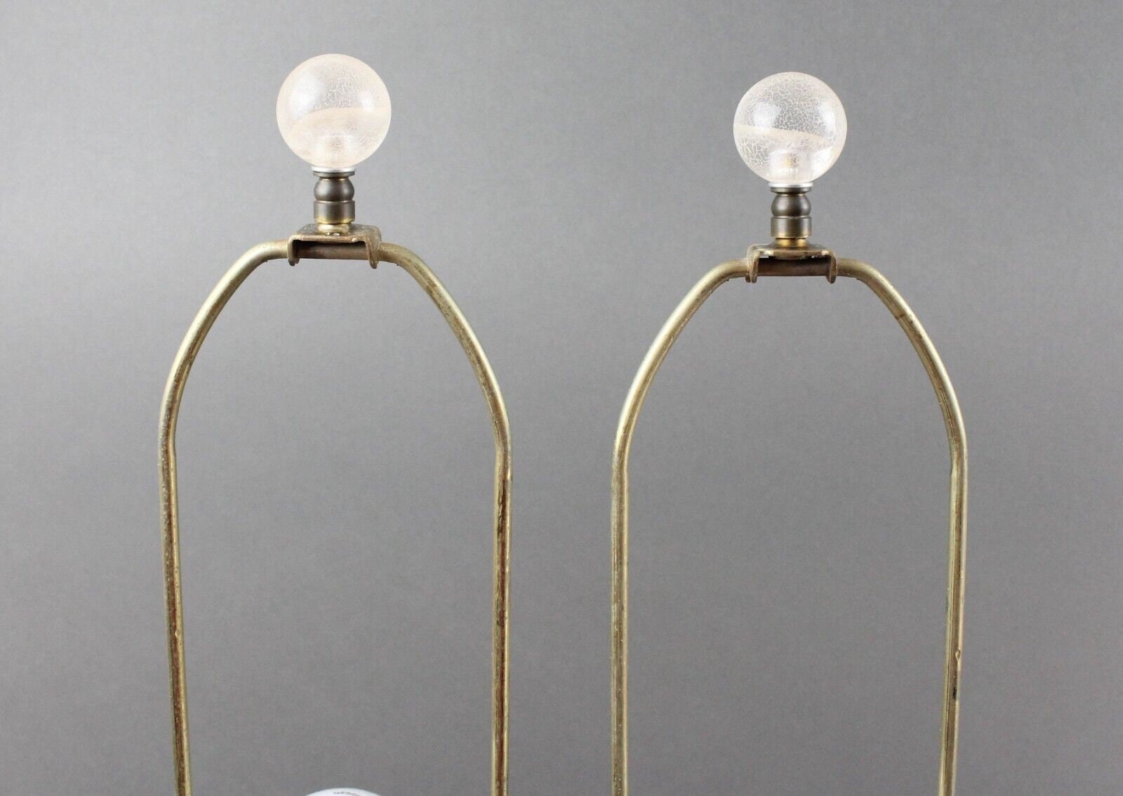 Roche Bobois Pair Of Gold Orb Table Lamps With Crackled Lucite Accents