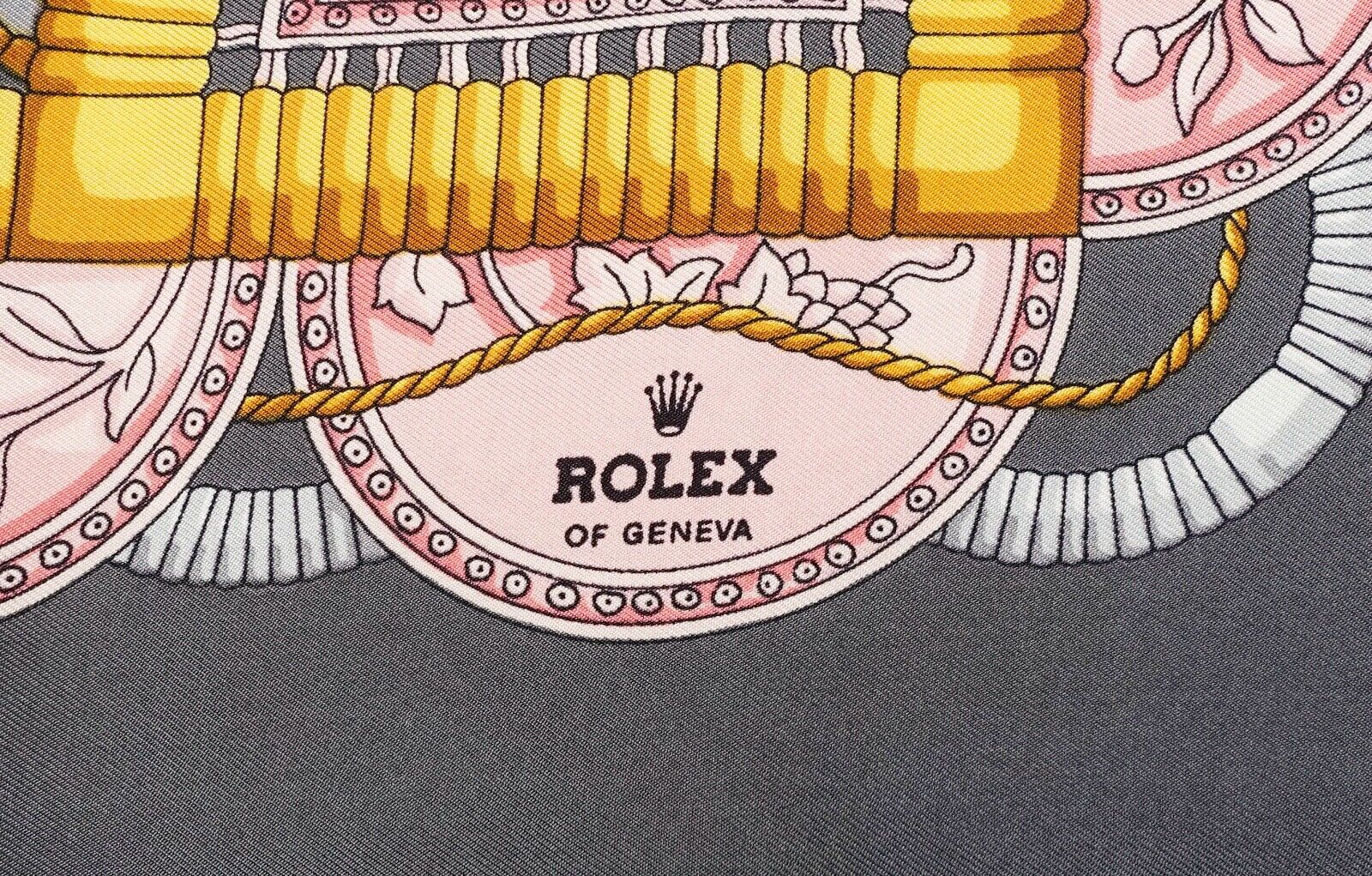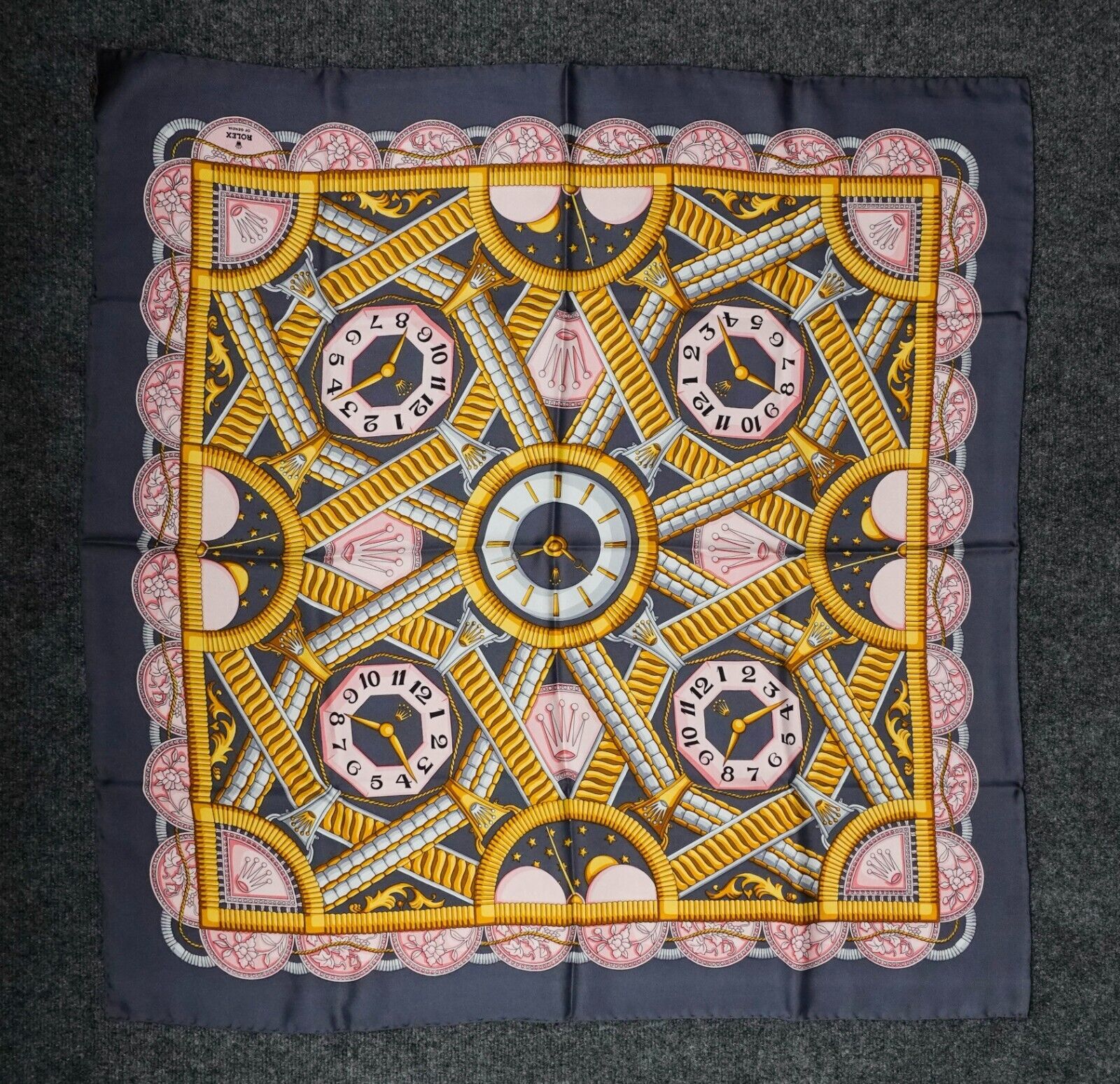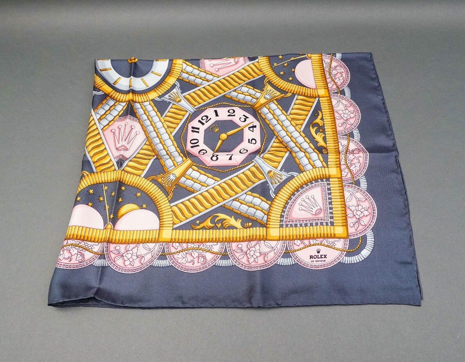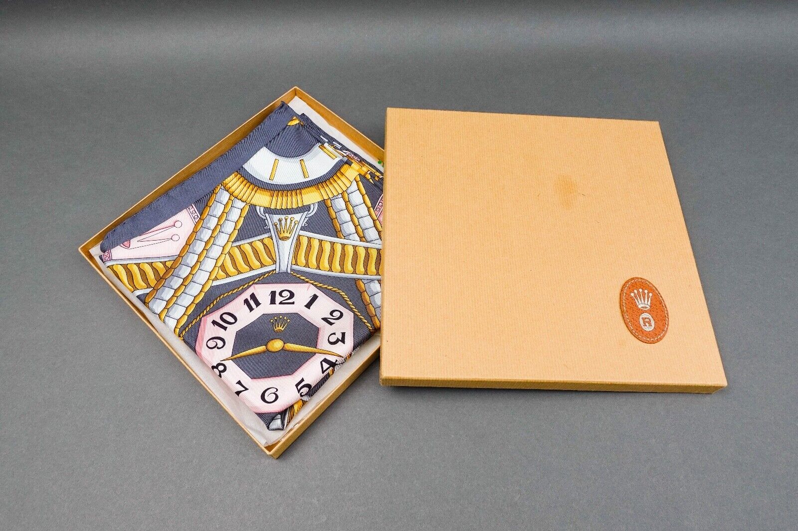 Rolex Of Geneva Italian Vintage Blue & Gold Silk Scarf In Box.