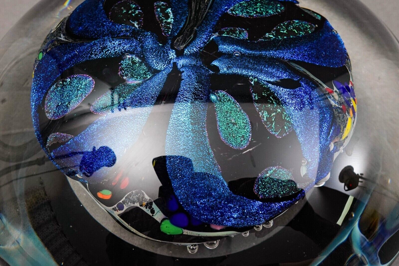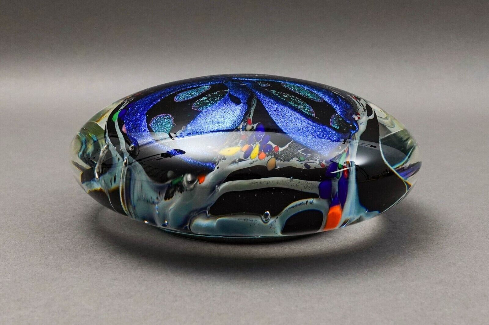 Rollin Karg 2001 Vintage Dichroic Hand Blown Art Glass Disc Sculpture.
