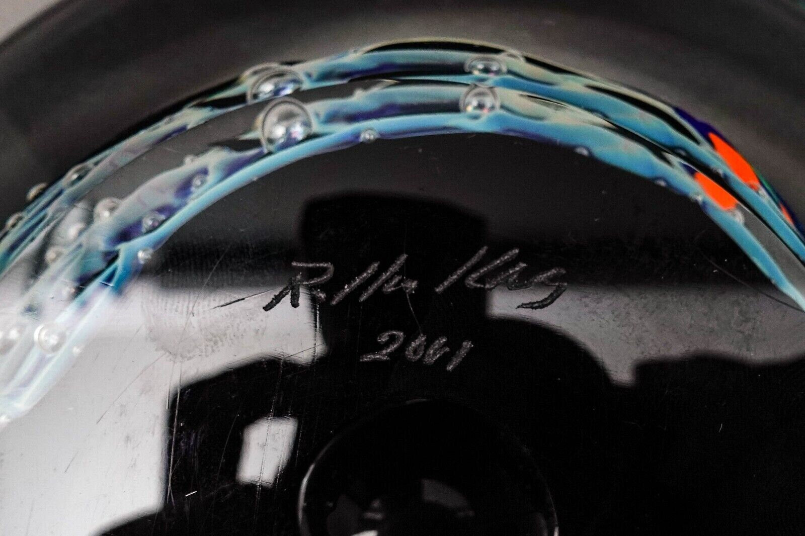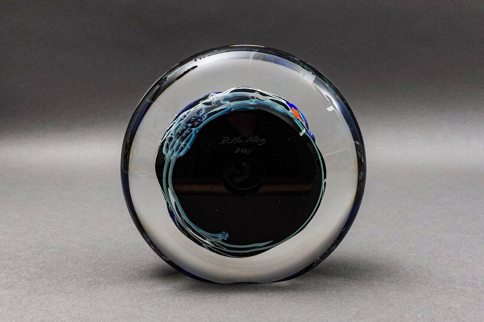 Rollin Karg 2001 Vintage Dichroic Hand Blown Art Glass Disc Sculpture 6"
