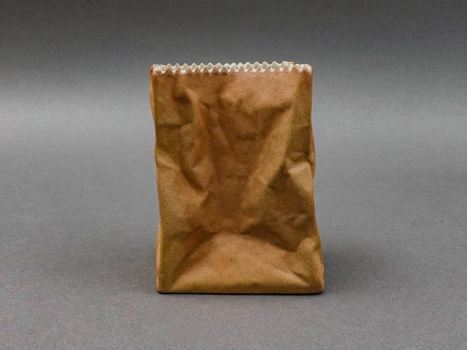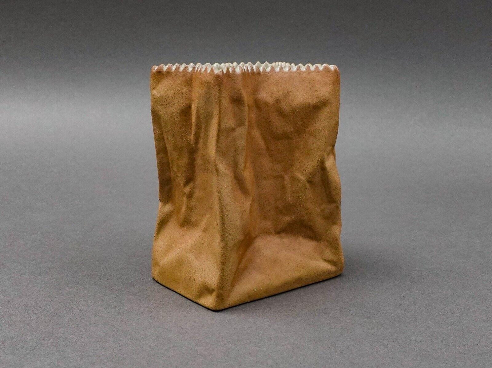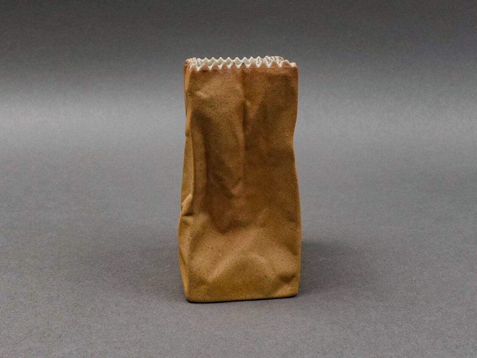 Rosenthal Germany Tapio Wirkkala Pop Art Crinkle Brown Paper Bag Vase 4 1/2"