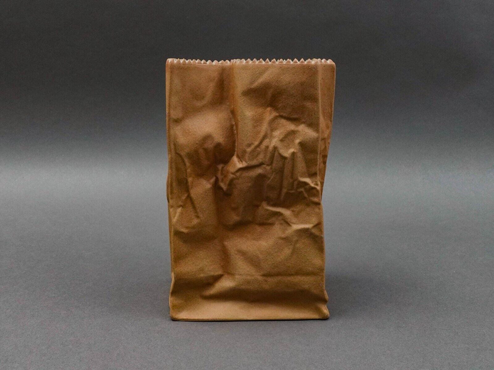 Rosenthal Germany Tapio Wirkkala Pop Art Crinkle Brown Paper Bag Vase 7 3/4"