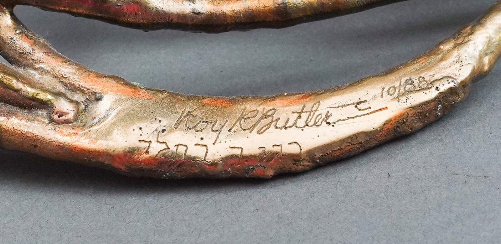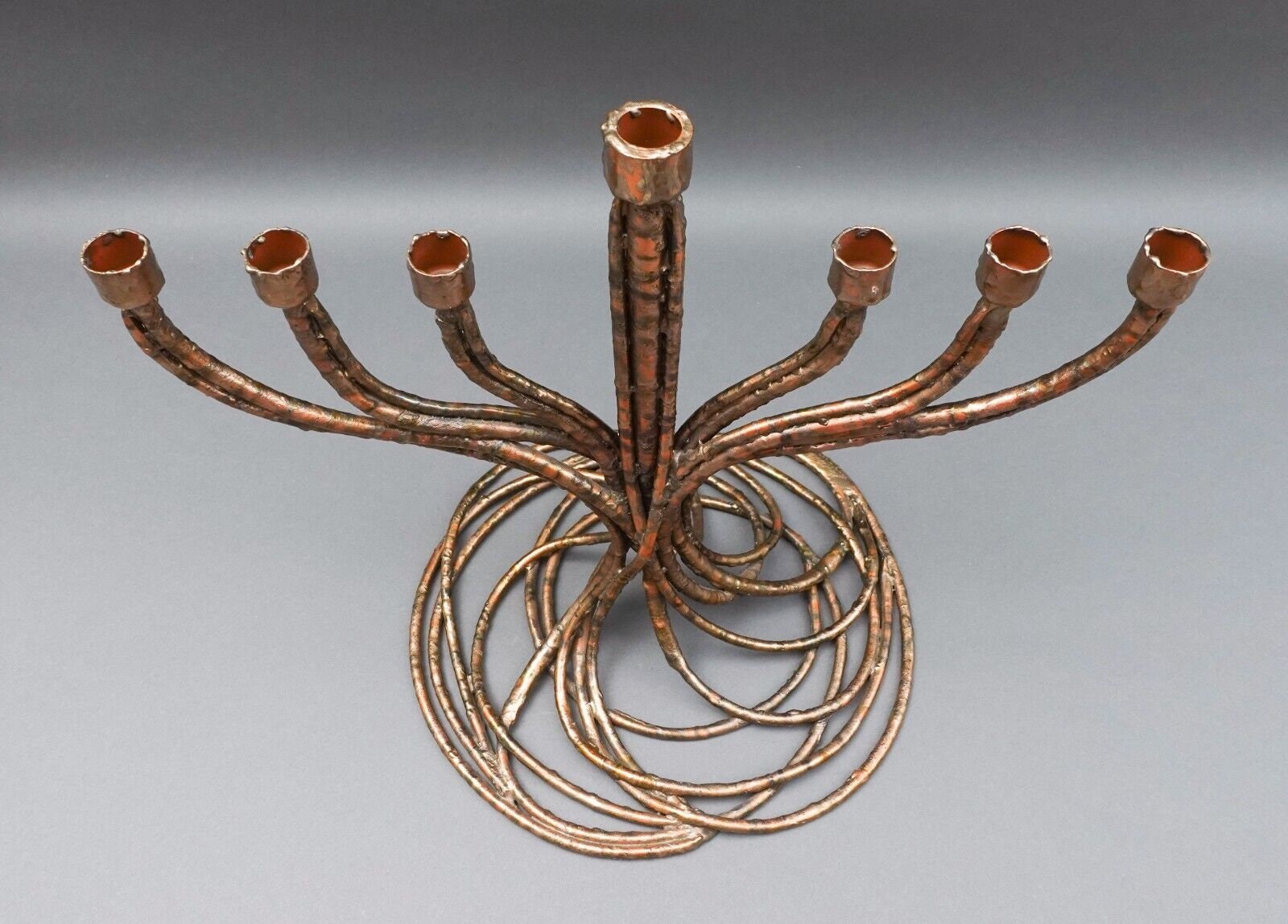 Roy R Butler Signed 1988 Brutalist Copper Judaica Hanukkah Menorah Sculpture Limited Edition 10/88.