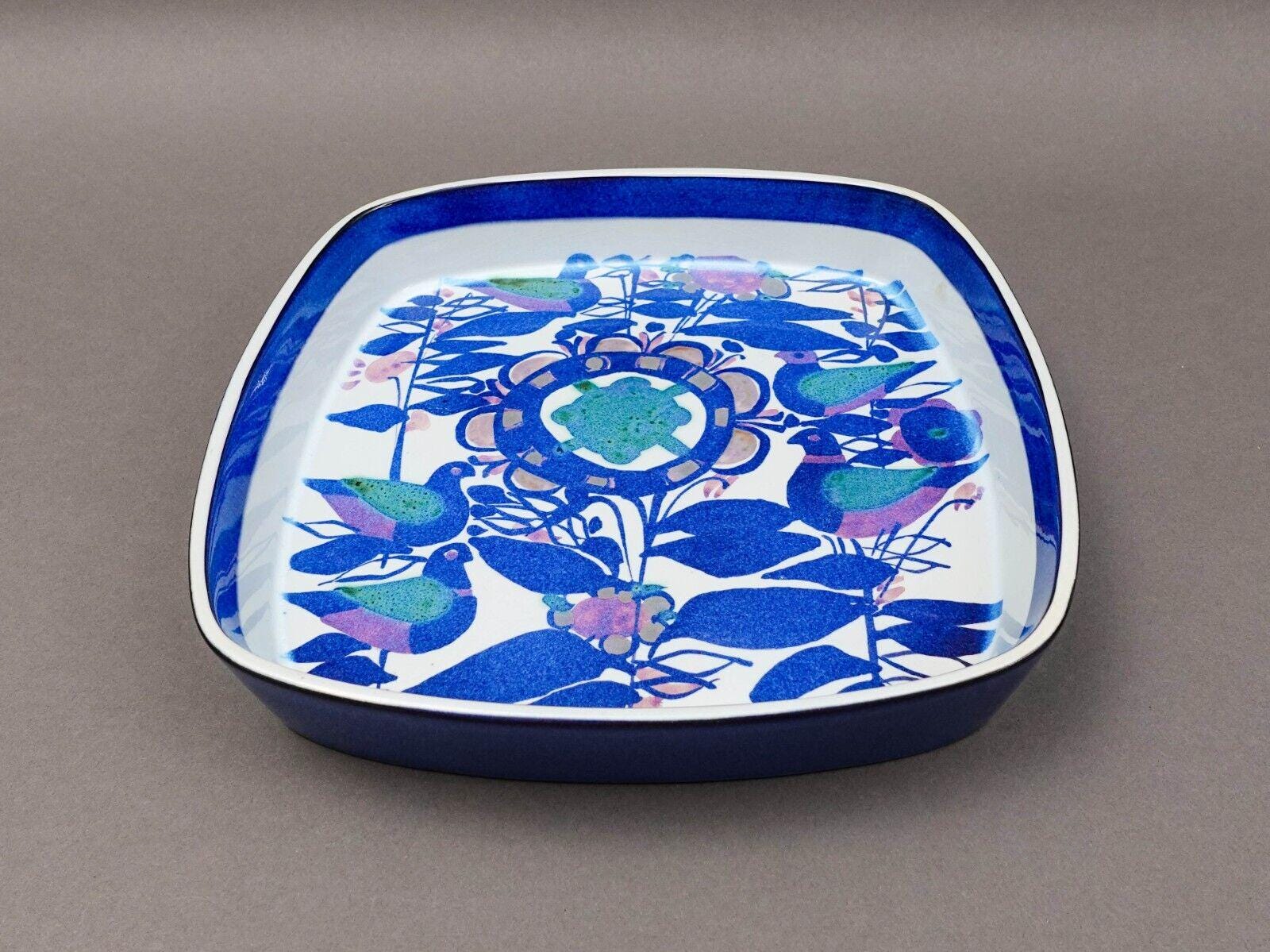 Royal Copenhagen Denmark Kari Christensen Fajance Pottery Birds Square Dish