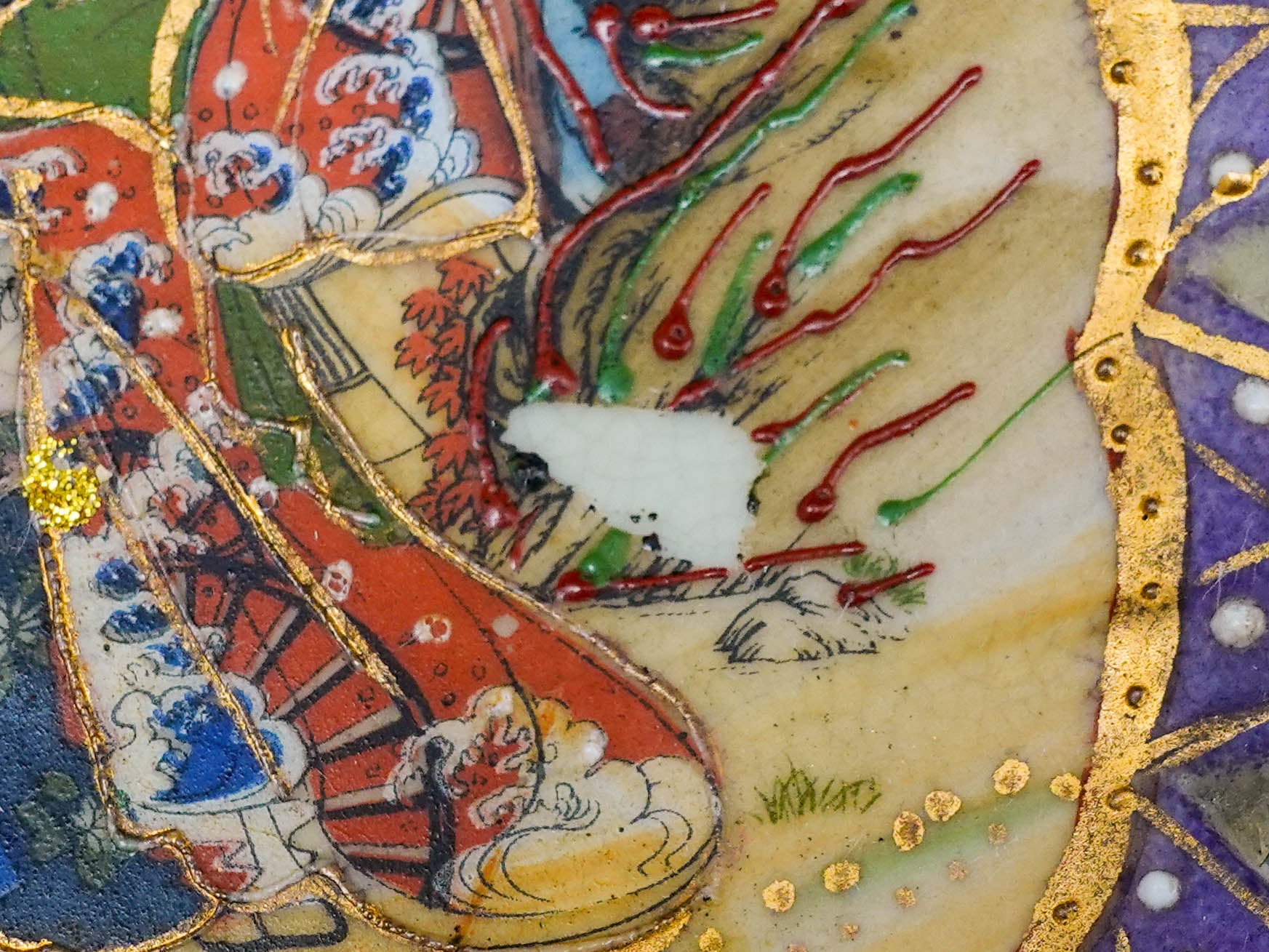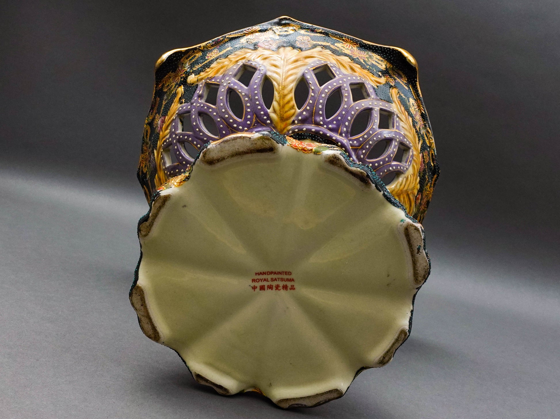 Royal Satsuma Handpainted Moriage Reticulated Pedestal Centerpiece Bowl Compote