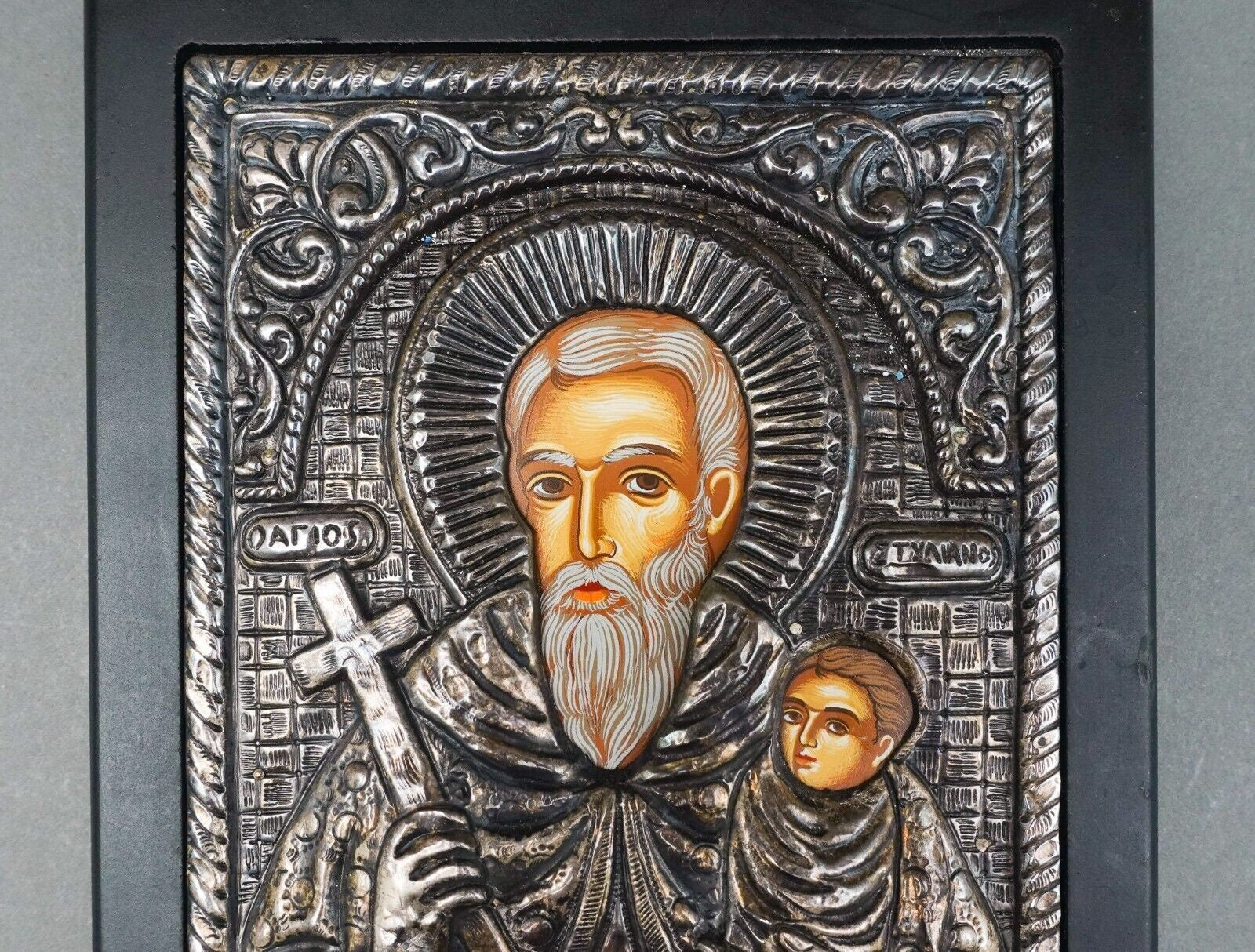 Saint Agios Stylianos Of Paphlagonia 950 Silver Religious Orthodox Greek Byzantine Icon Plaque.