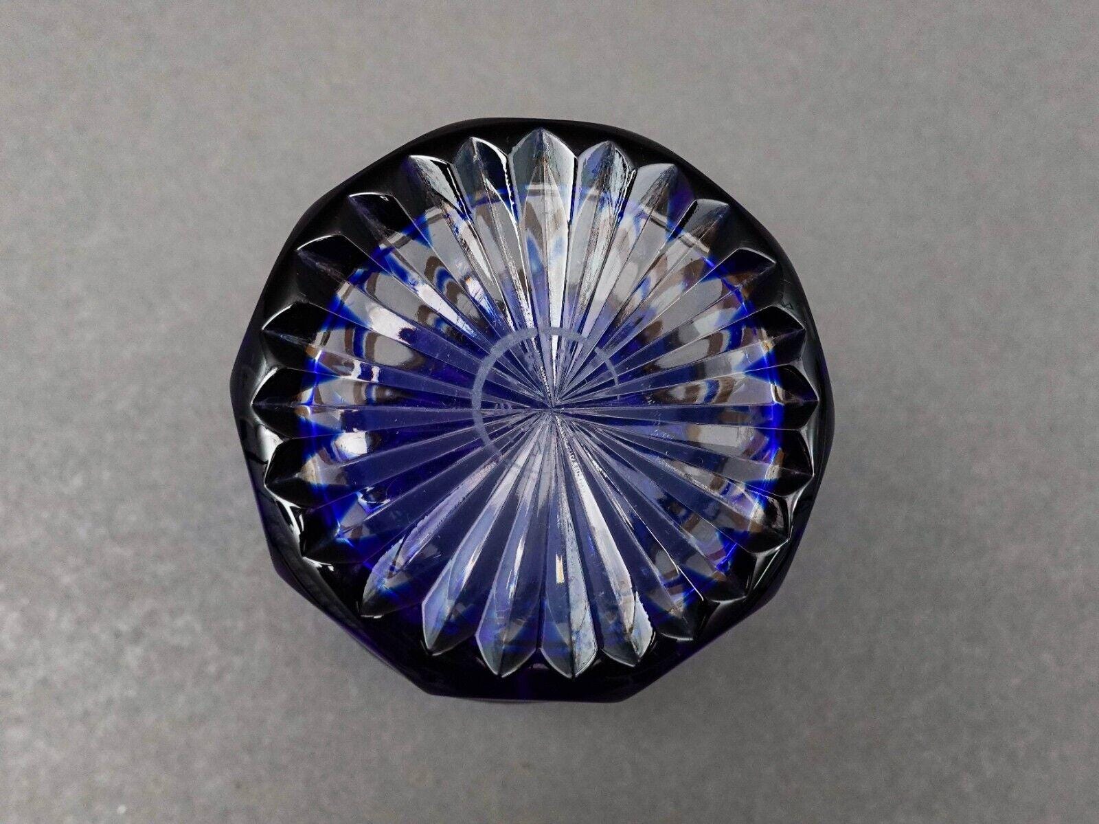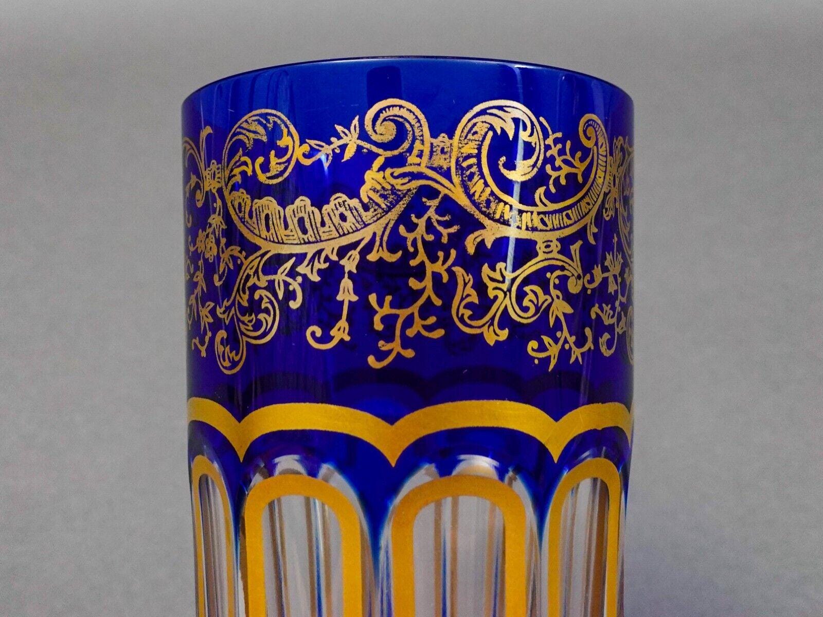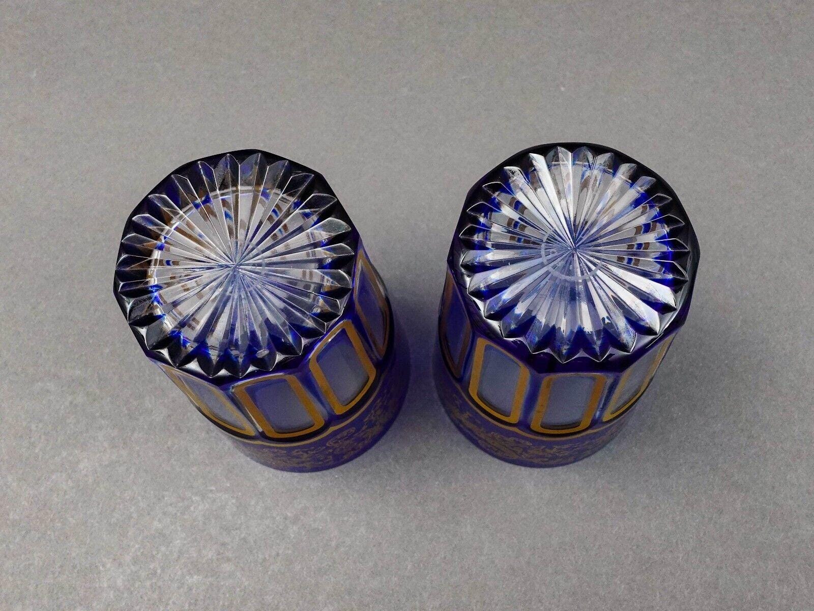 Saint St Louis Crystal France Rabat Blue Gold Gilded Tea Tumbles Glass Set Of 2