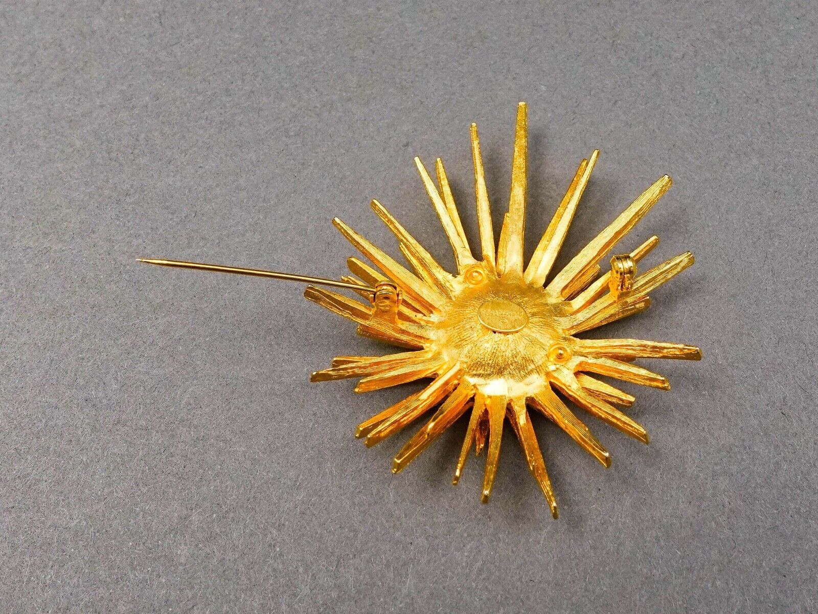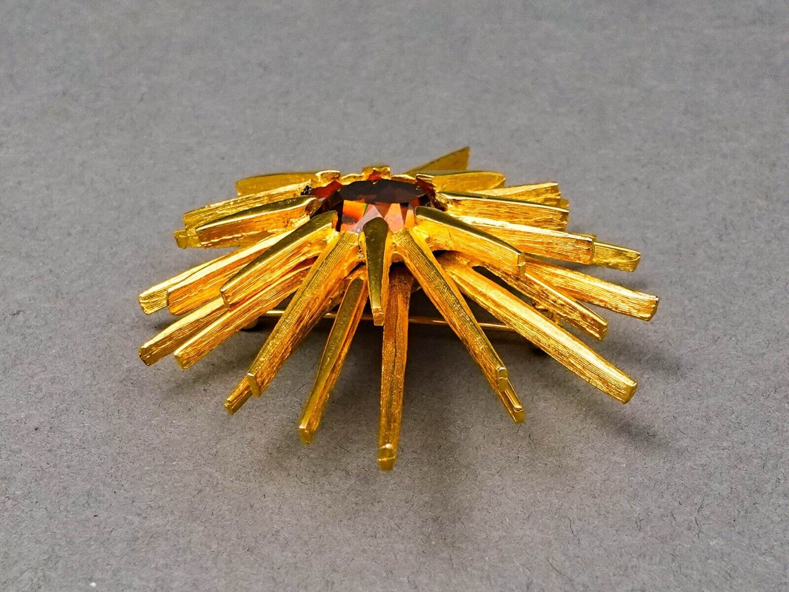 Schaperelli Signed Vintage Starburst Star Gold Tone Amber Brooch Pin