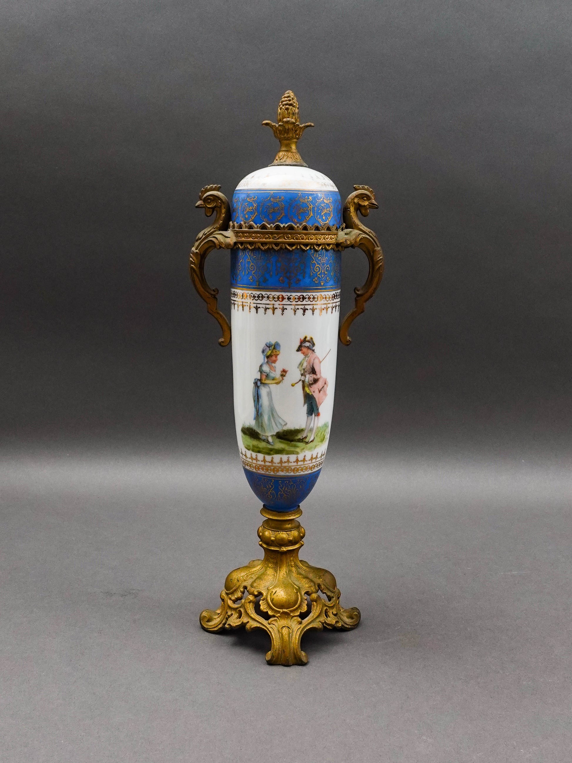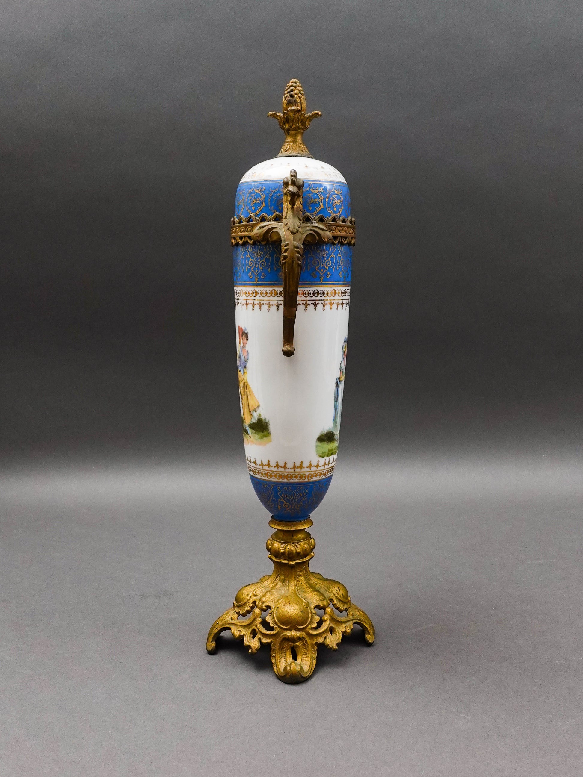 Sevres Style Antique French Hand Painted Porcelain Bronze Ormolu Mounts Urn Vase
