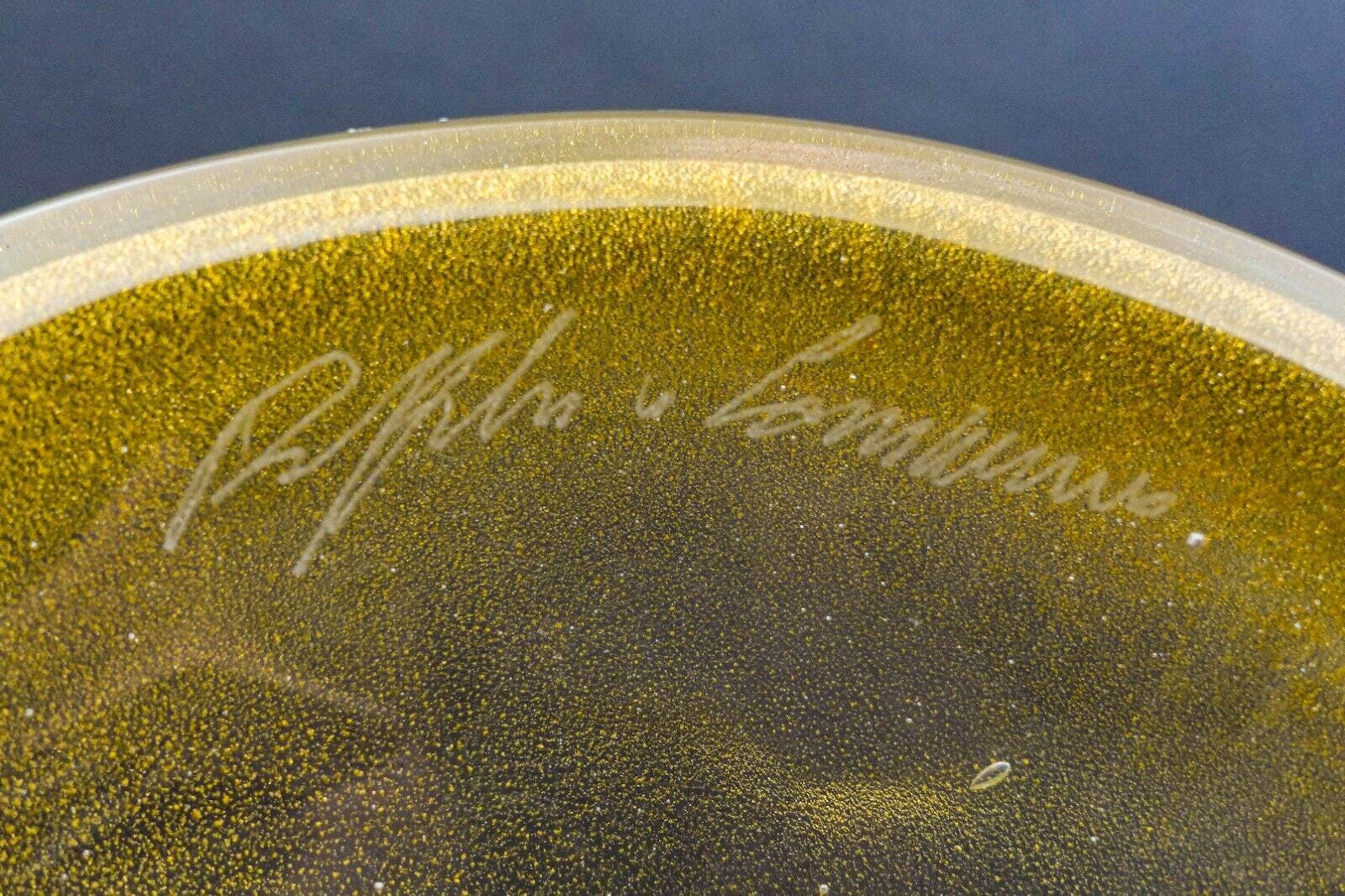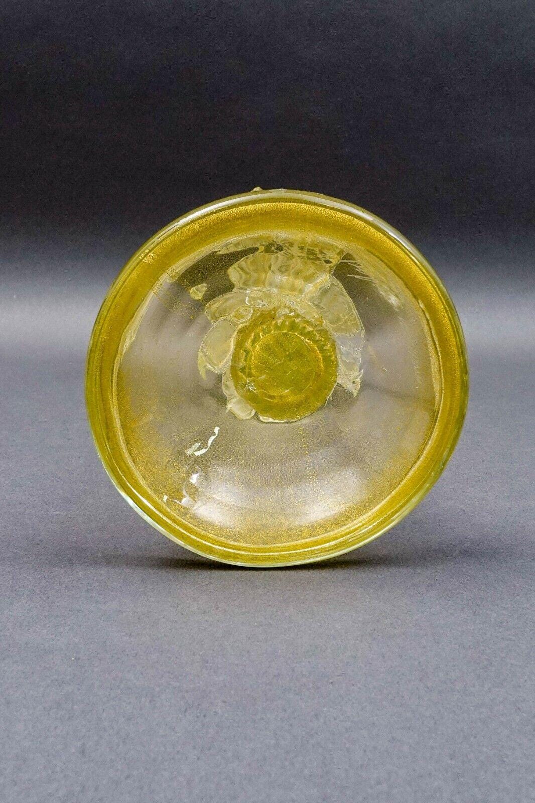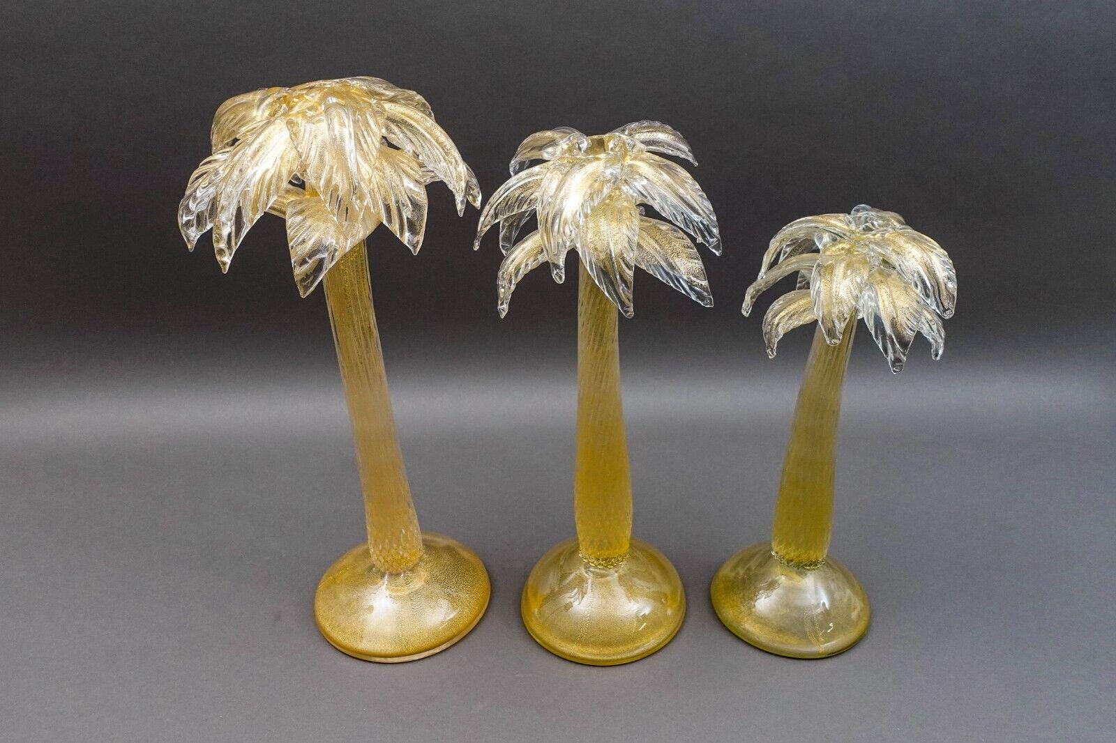 Signed Murano Italy Gold Fleck Glass Palm Tree Candlestick Candleholder Set Of 3