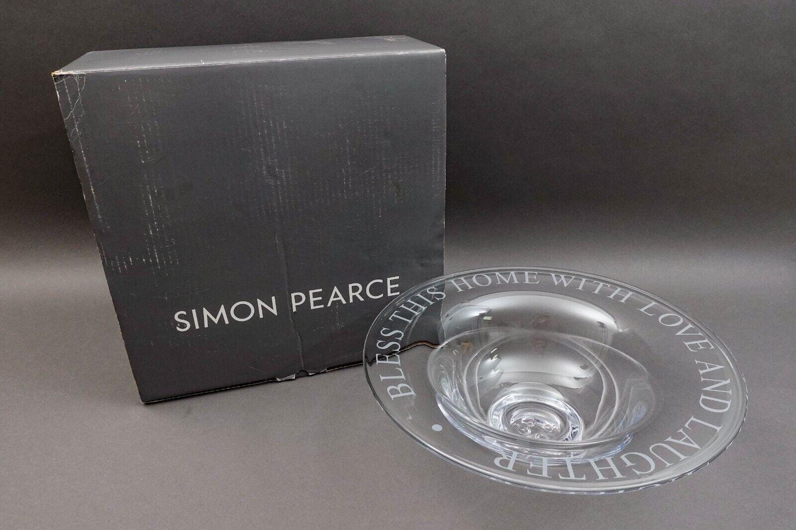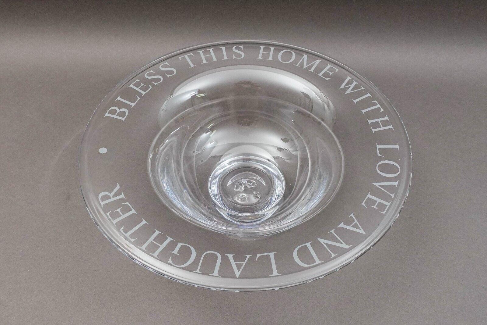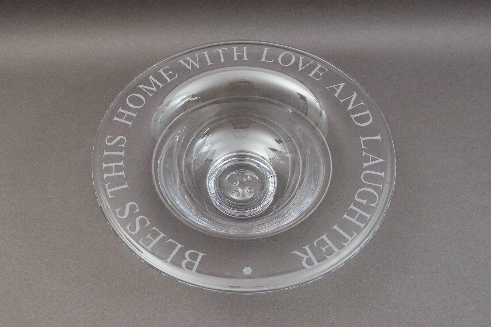 Simon Pearce Bless This Home With Love And Laughter Crystal Centerpiece Bowl.